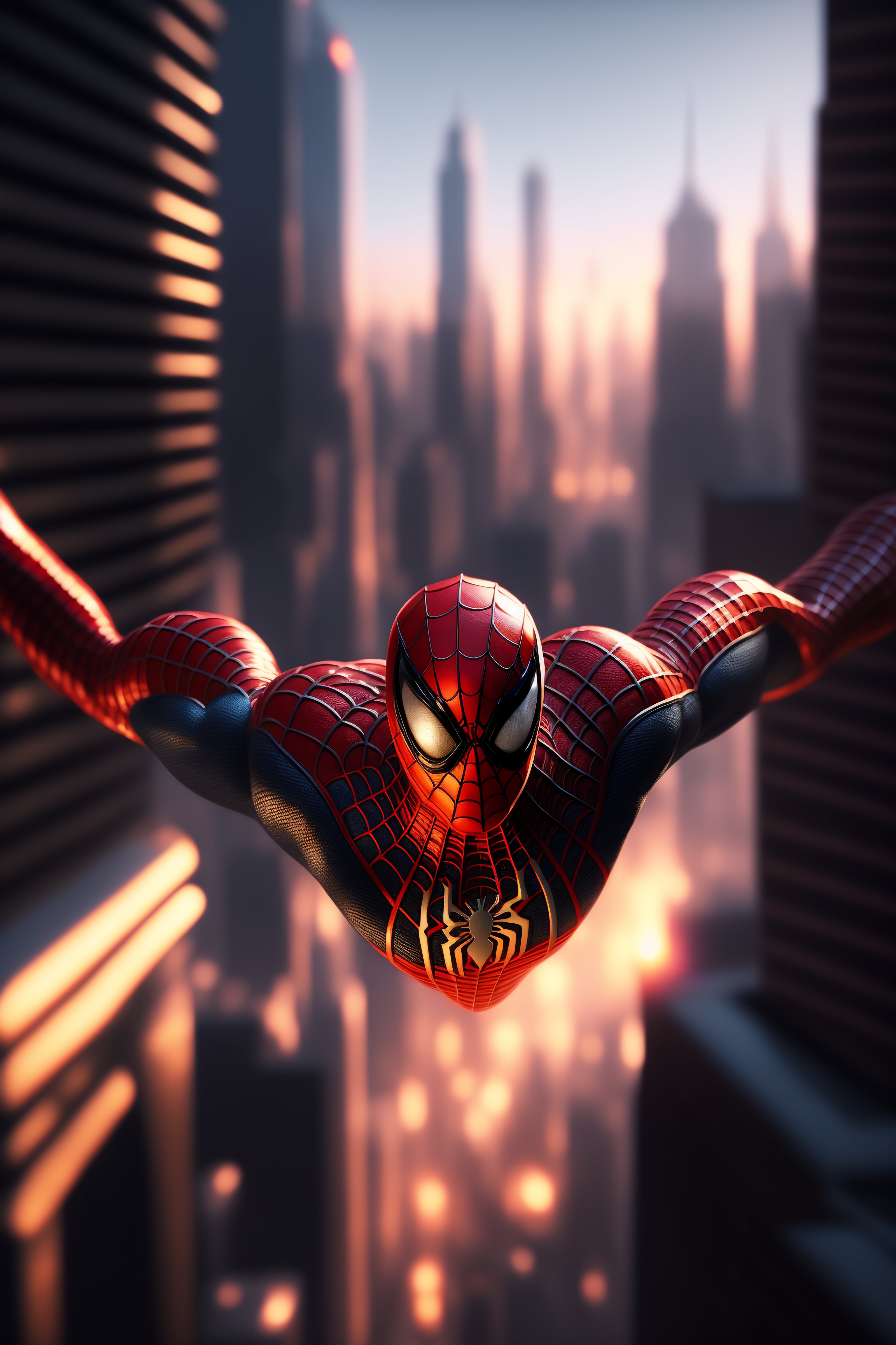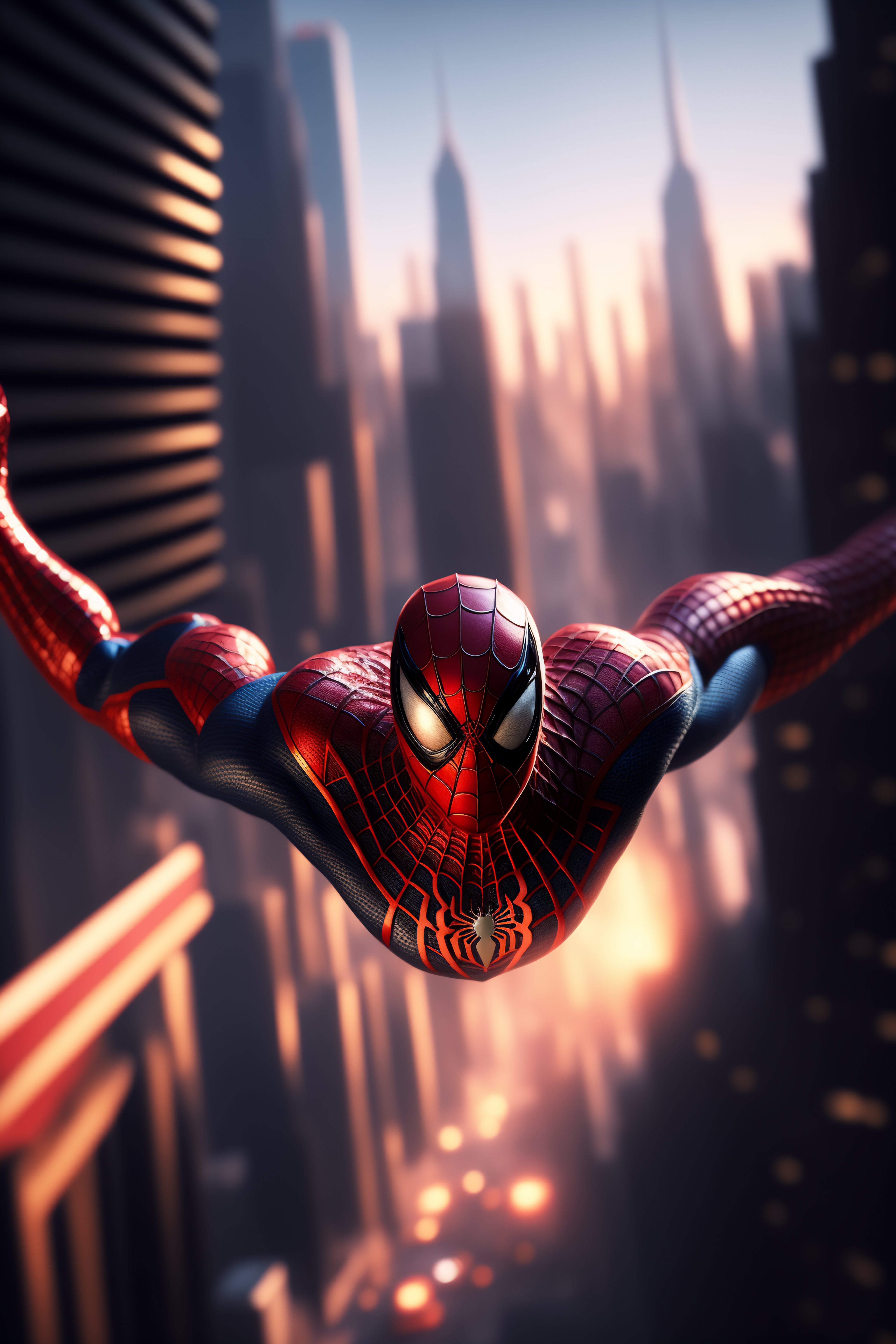 Spiderman, carnage, venom, pov city, cinematic, wide angle establishing shot, fantasy, hyperrealism, volumetric light, octane render, photorealistic concept art, highly detailed, very intricate, 9:16