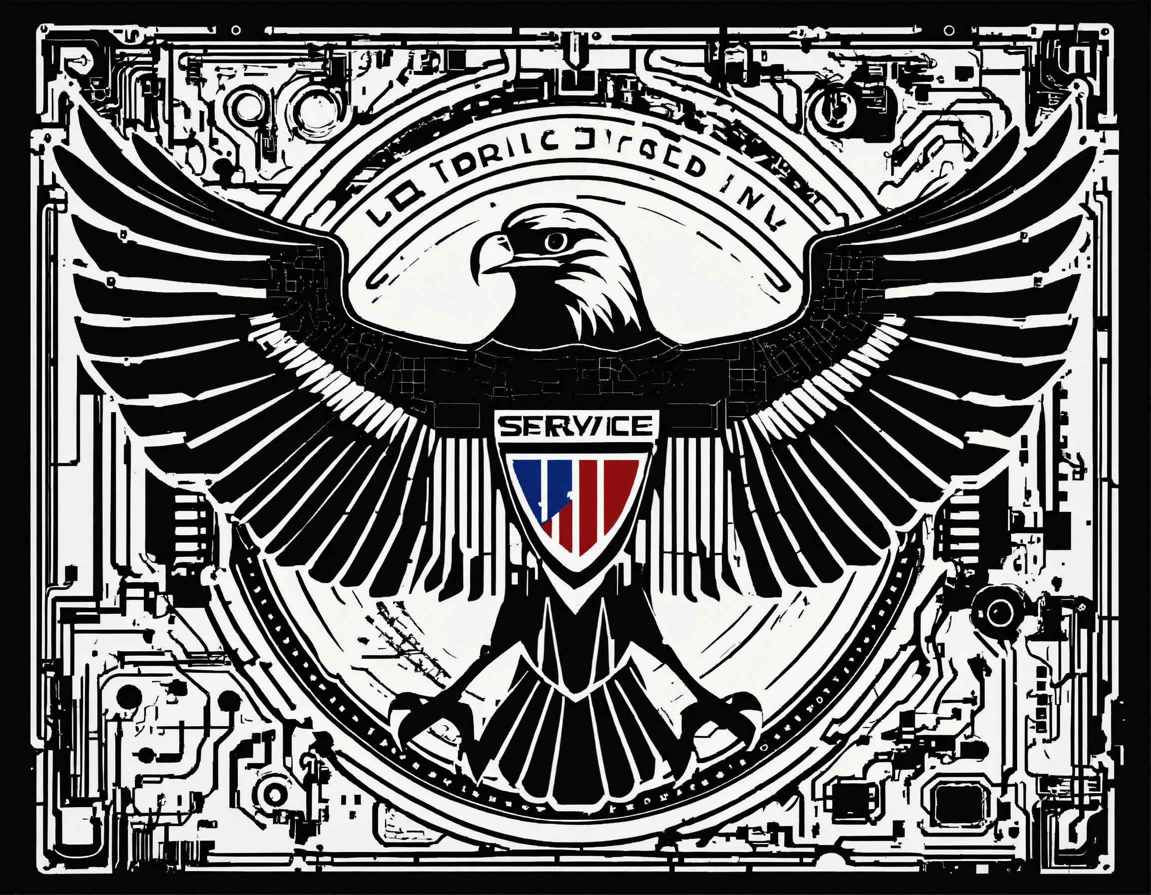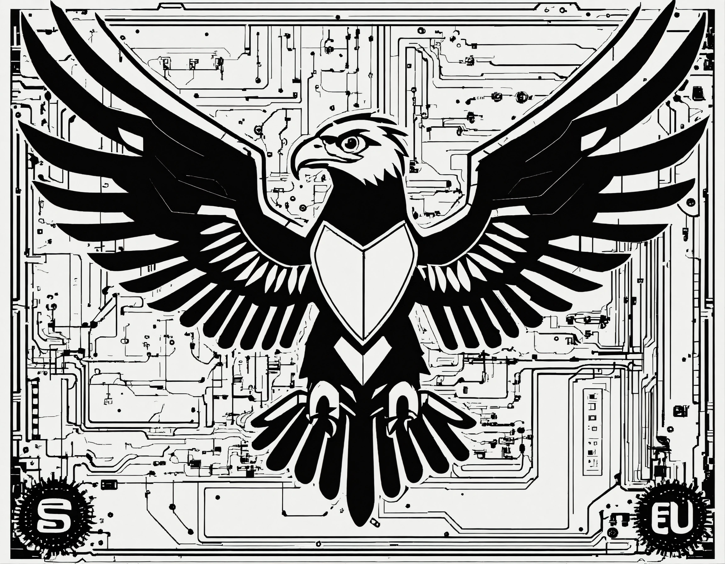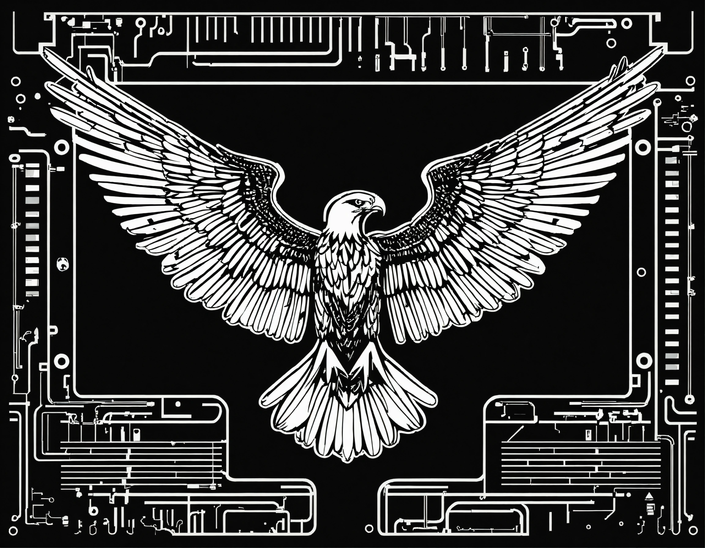 Simple black and white icon robot ai version of united states postal service eagle logo, electronic circuitry, simple icon, basic icon