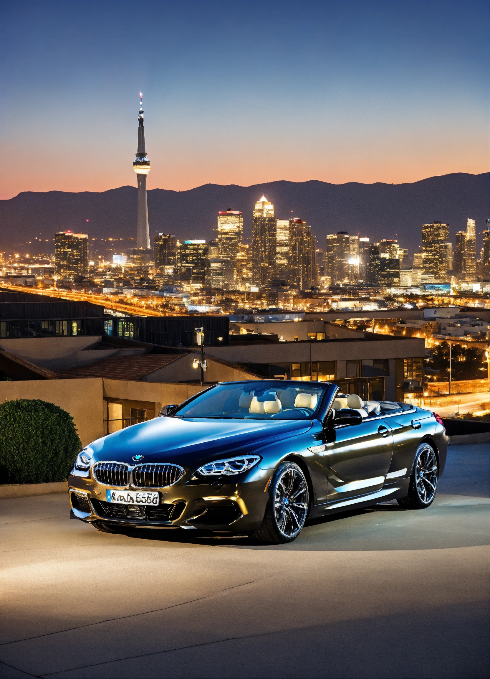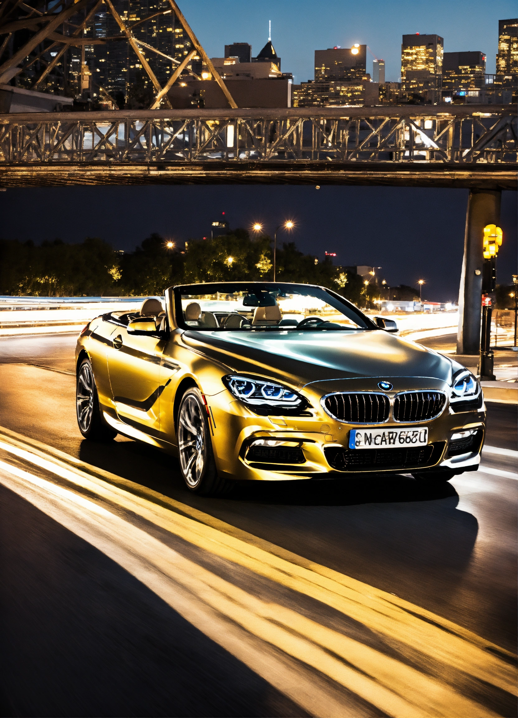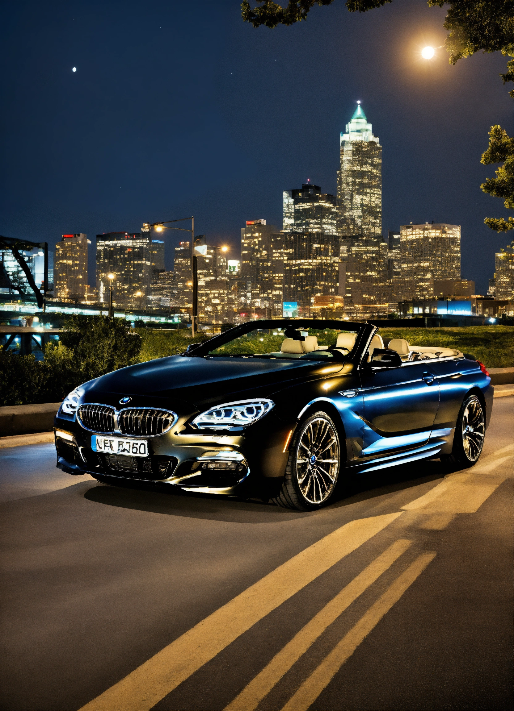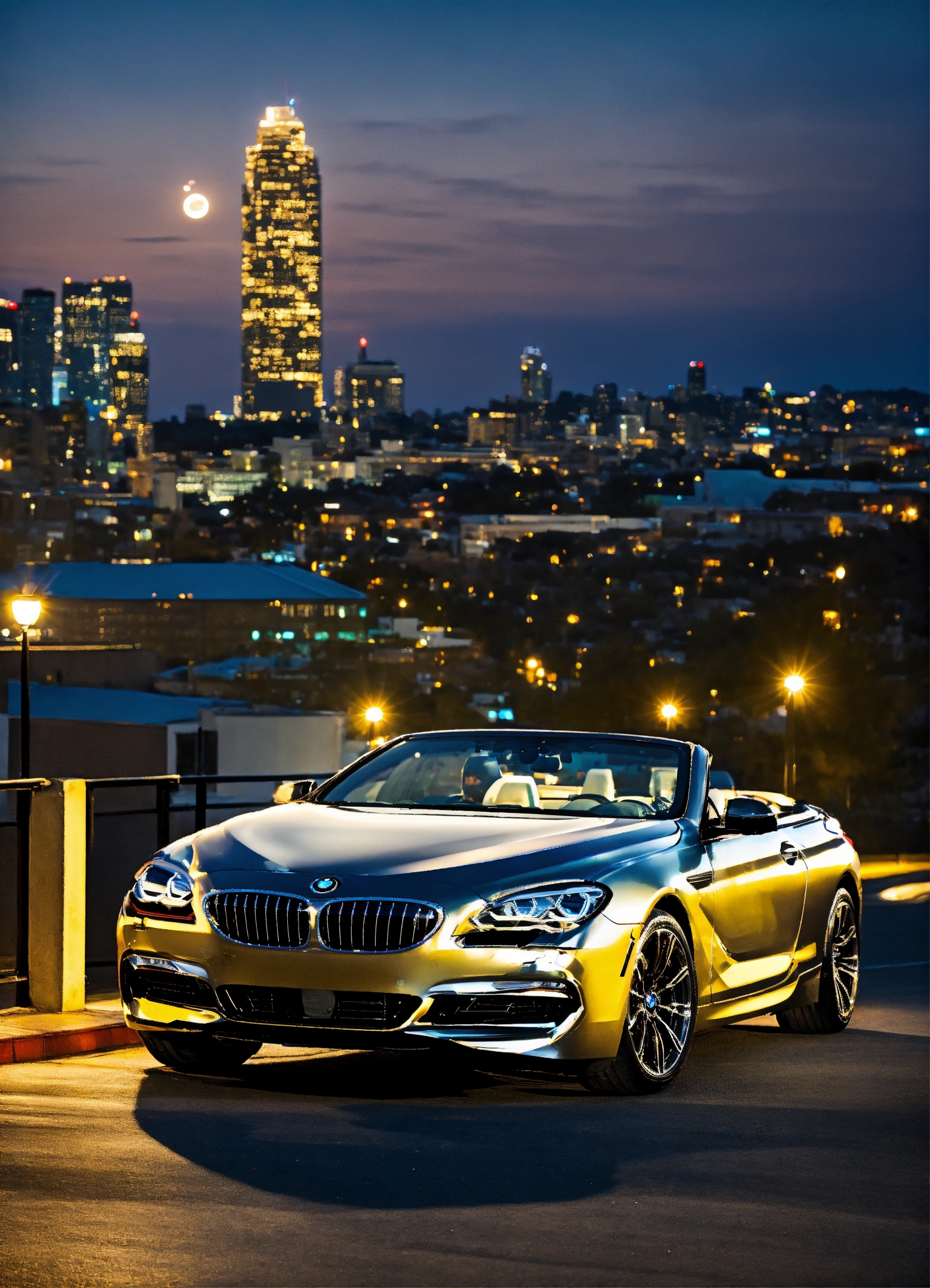 2019 bmw 650i convertible black and gold with downtown landscape and moonlight landscape