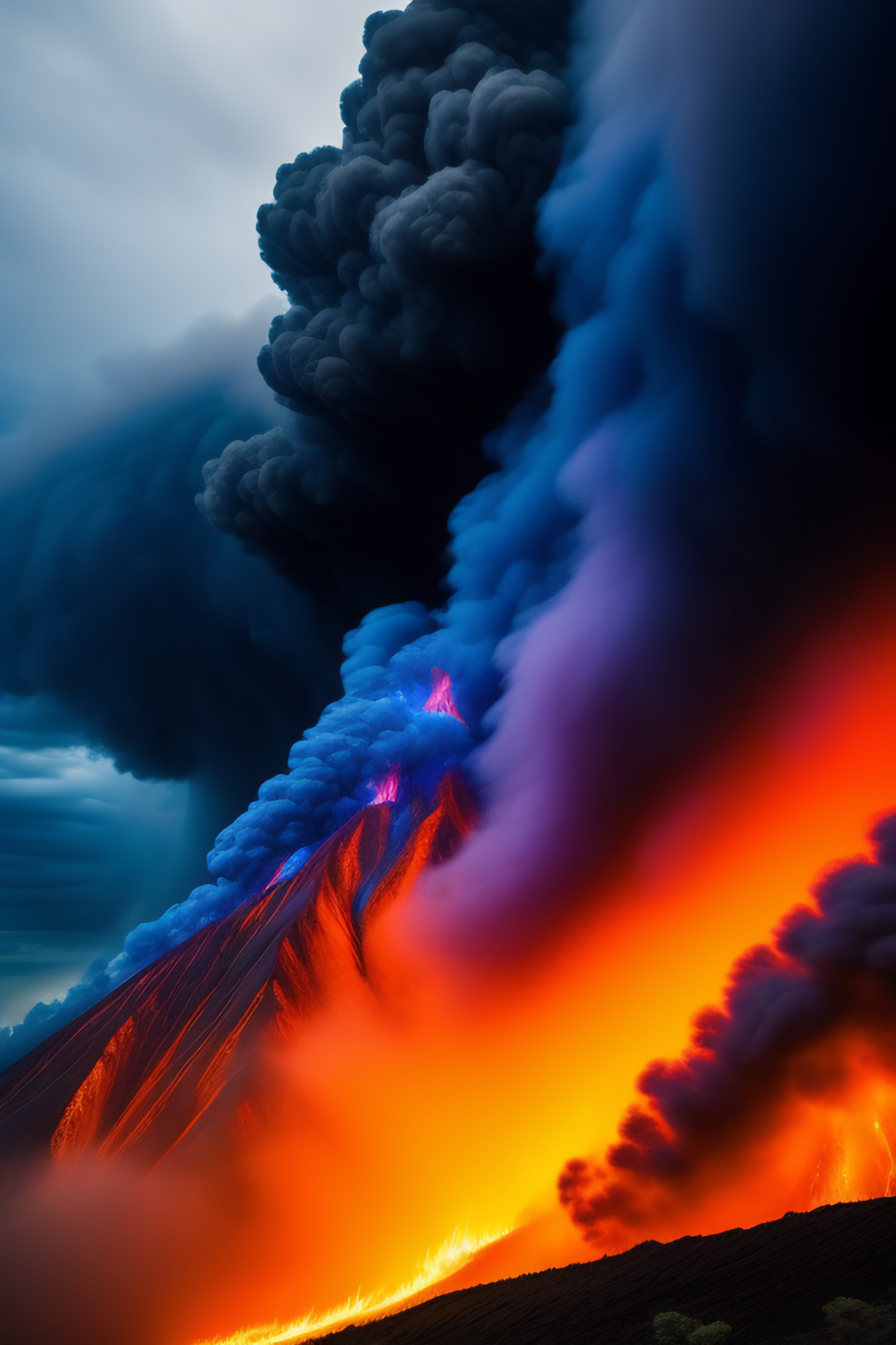 Blue thunder in the colima's fire volcano captured in an exceptional dirty storm of extraordinary and enigmatic beauty, intricated details