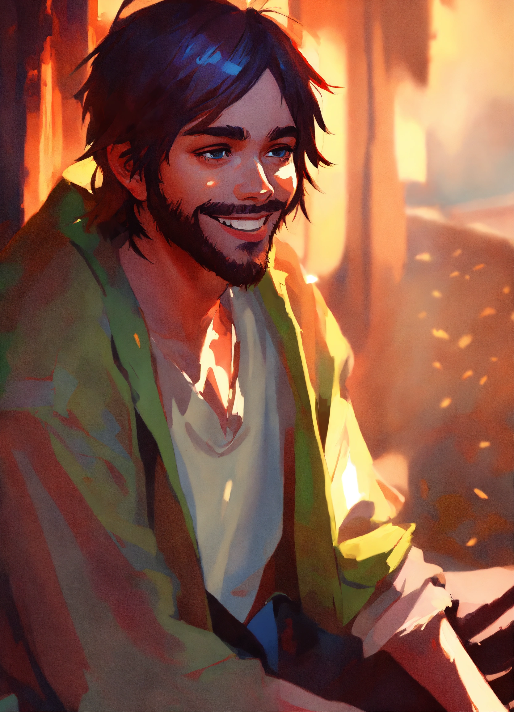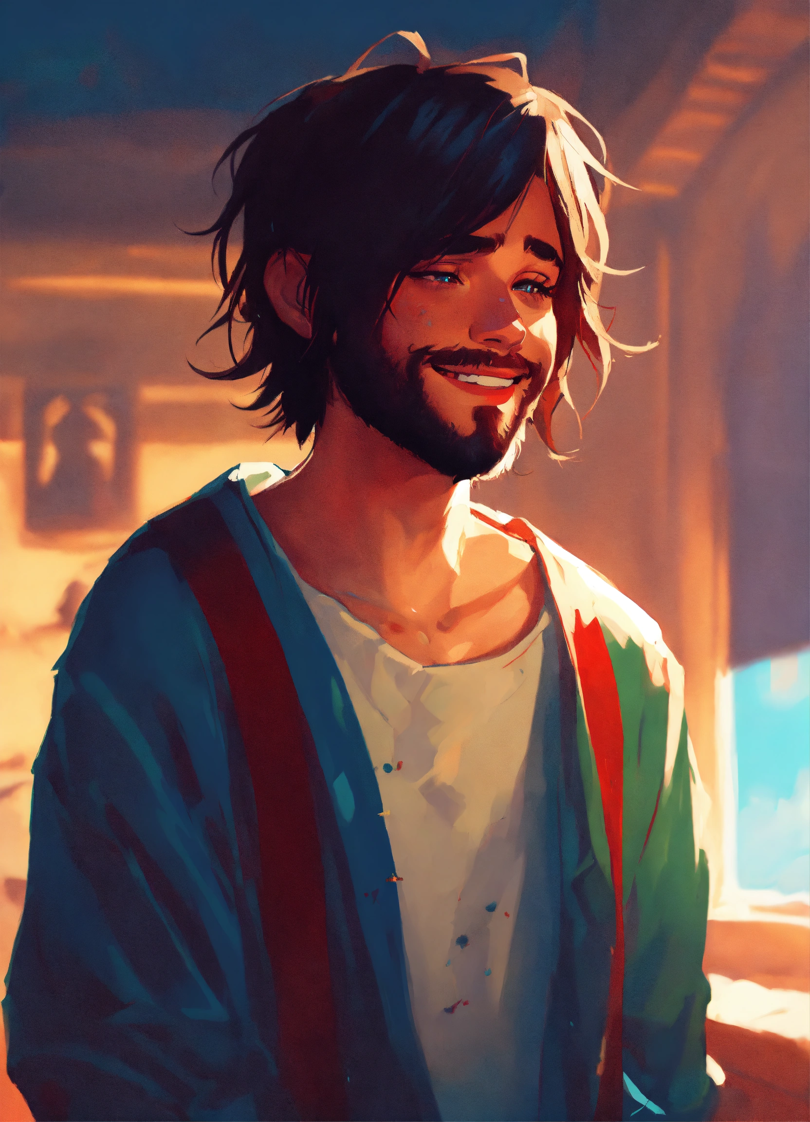 Jesus in tattered clothes fanart, gorillaz digital art, cute smile, digital painting, fan art, by ilya kuvshinov, by studio ghibli