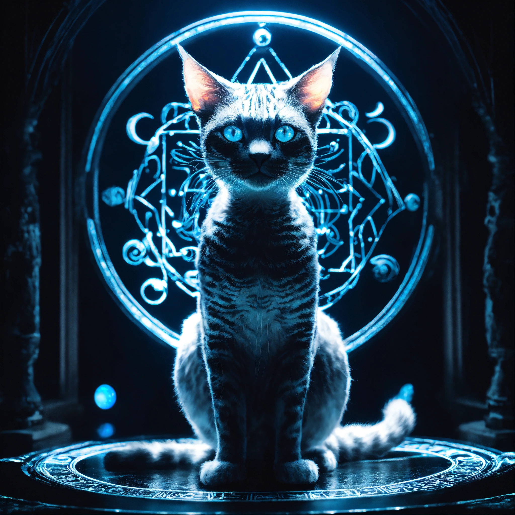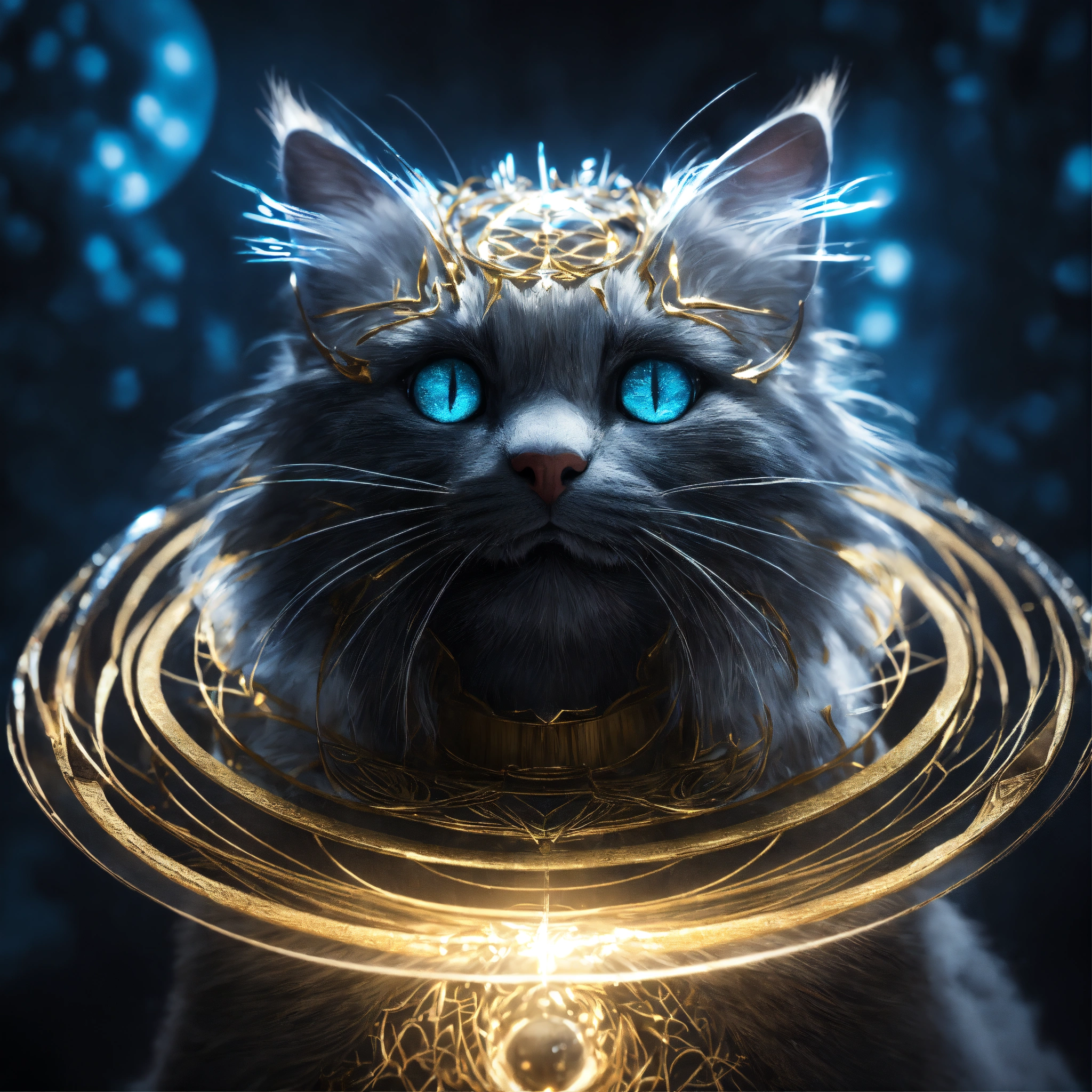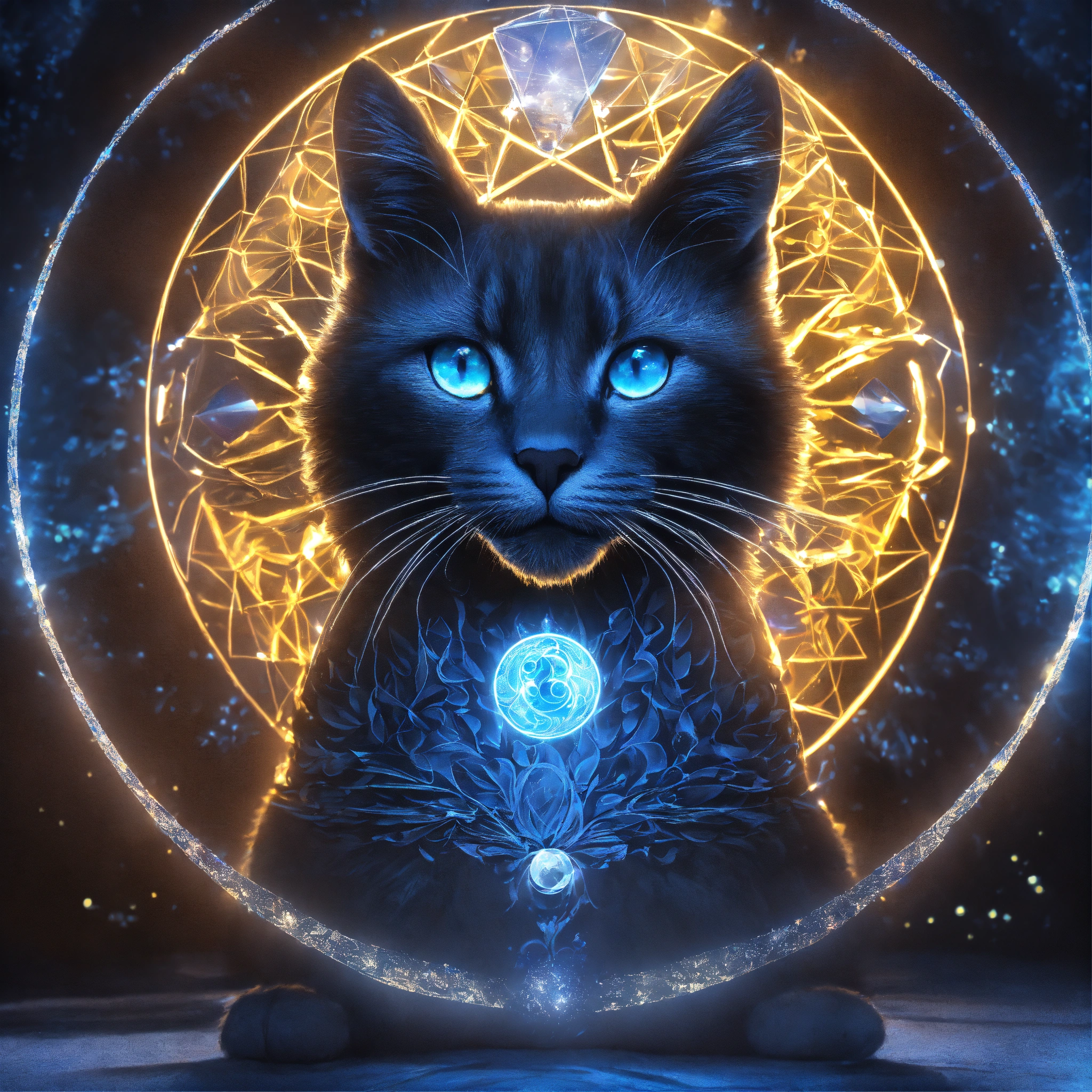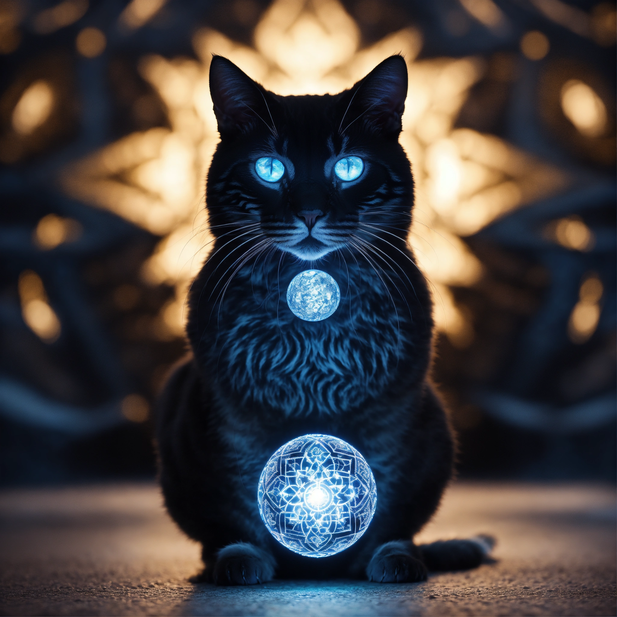 Long exposure underwater photography, illustrates an athletic black and white cosmic cartoon cat in the style of tim burton, chronicles of narnia, and beauty and the beast. blue eyes. front view. front portrait. facing front, no angle. with black and white sacred geometry yin-yang patterns. enchanting. backlit, glowing orb, enchanted aura. backlit lighting, fractal, volumetric lighting, power of the god. white background, no background, zero background, 0 background.