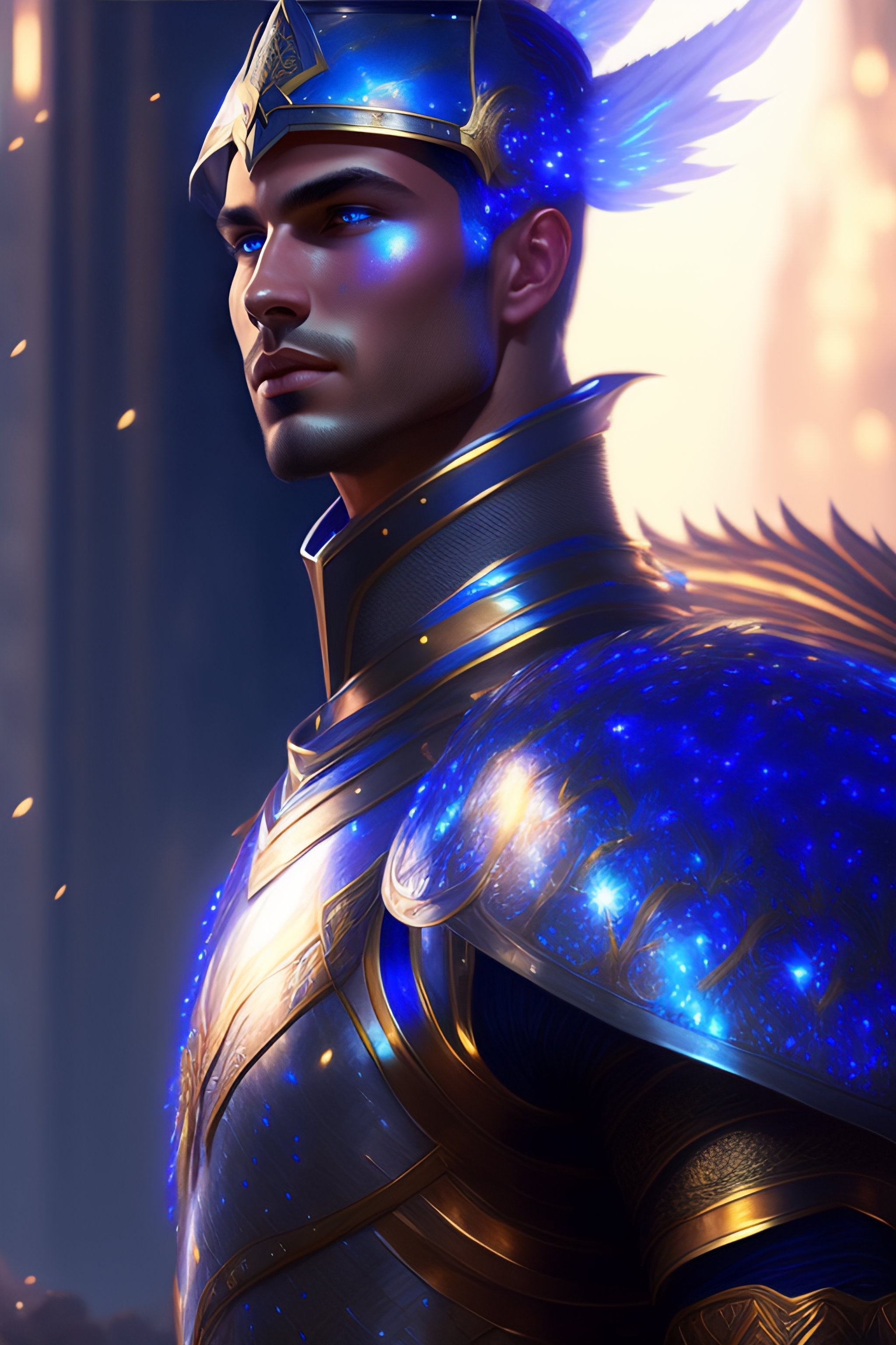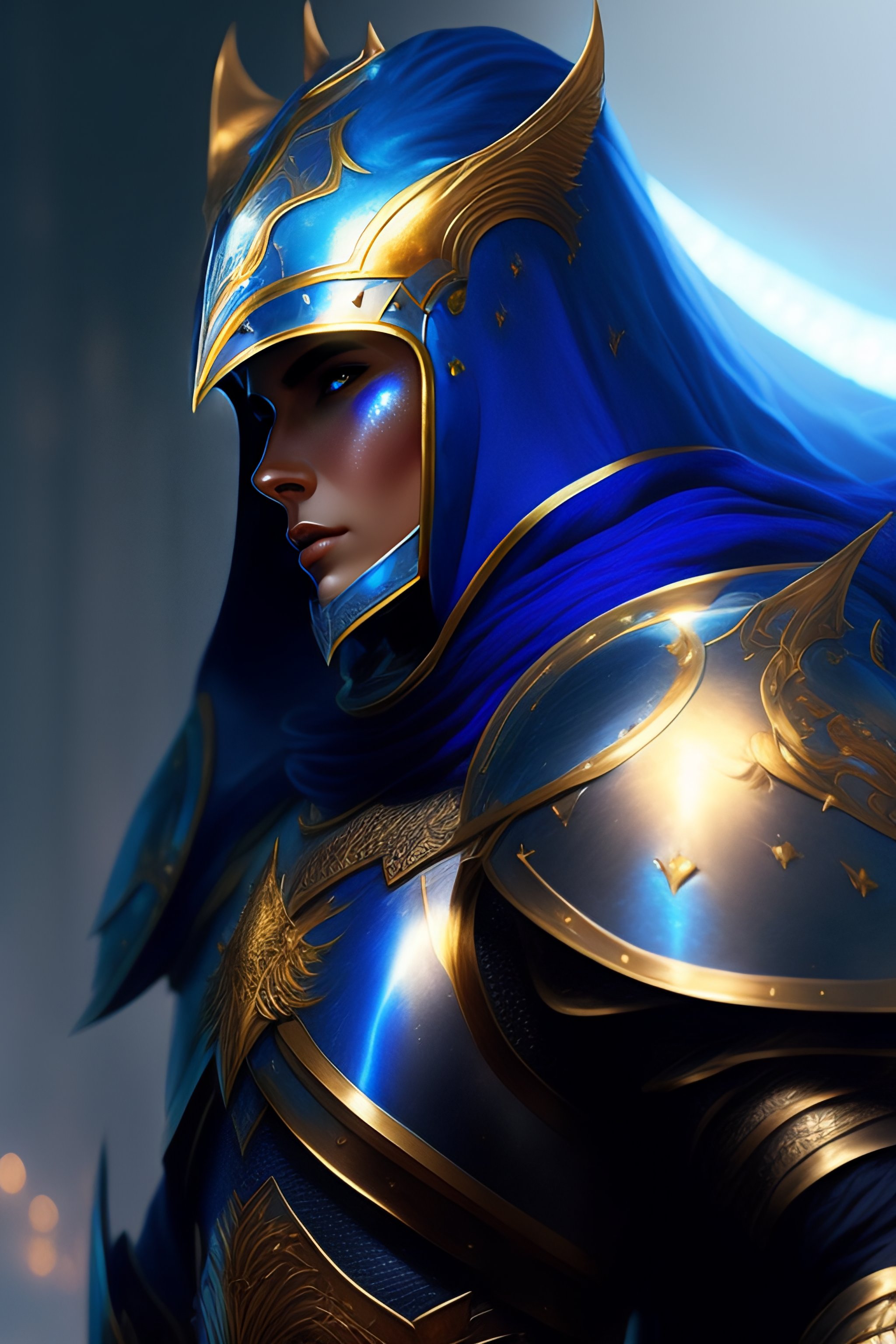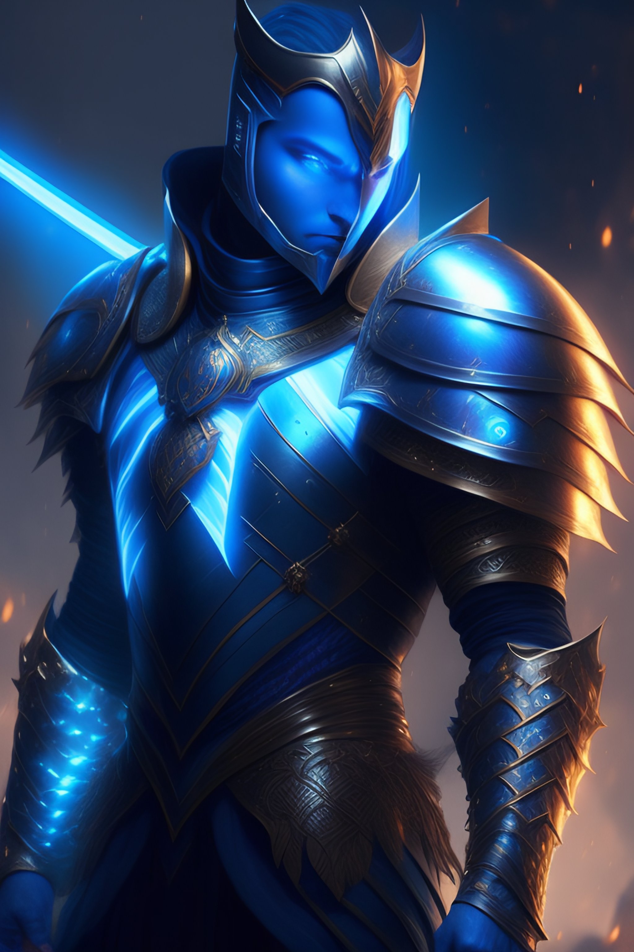 A knight in amazing fantasy armor that glows, bursting with blue light, sleek, lightweight but imposing, light glowing from the seams. shardplate. beautiful highly detailed fantasy painting by greg rutkowski