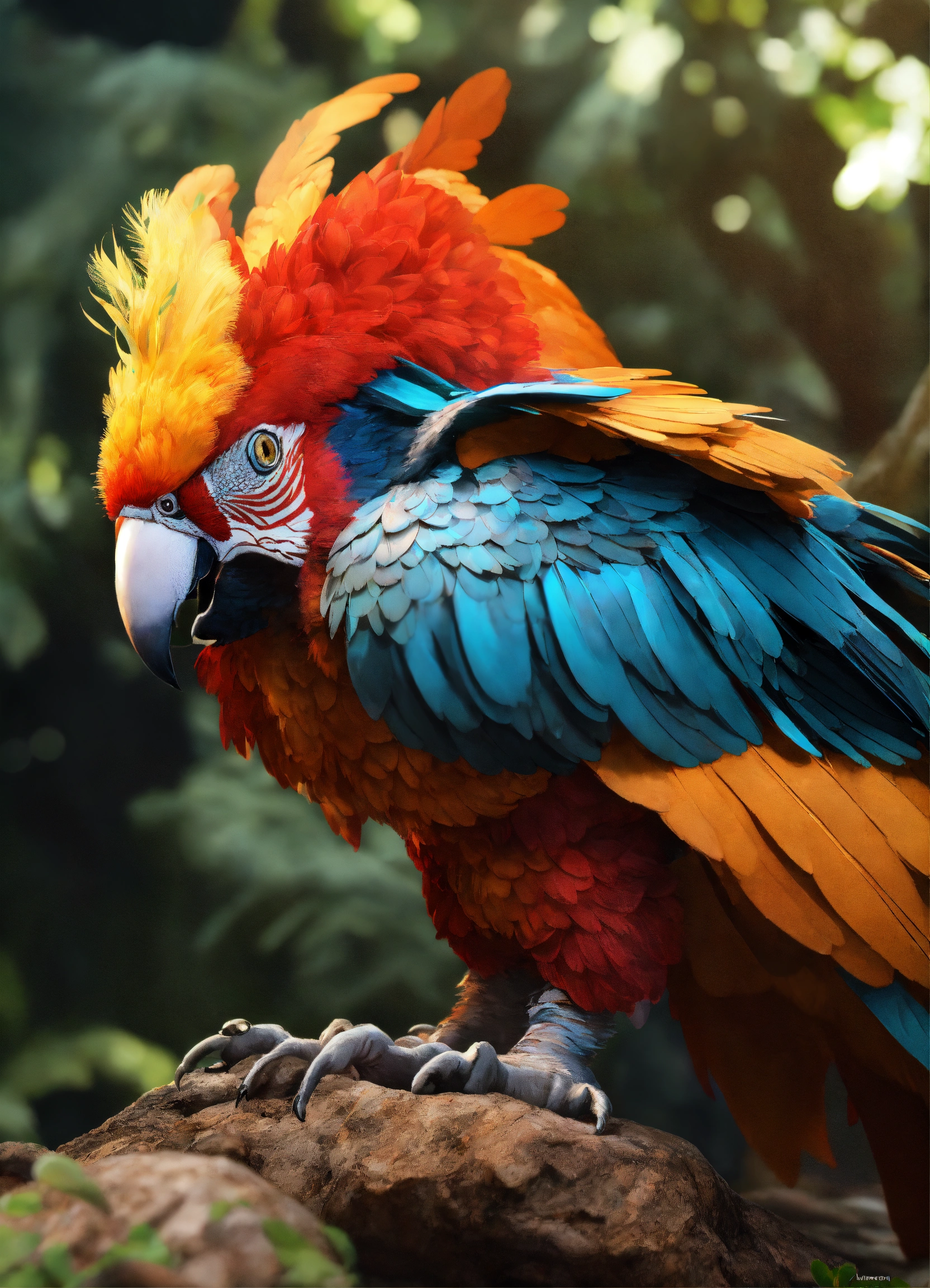 Pandora's parrot gryphon portrayed in exquisite 8k ultra 3d detail, this unique critter's feathers carry a myriad of mysteries, each one unveiling a new wonder.
