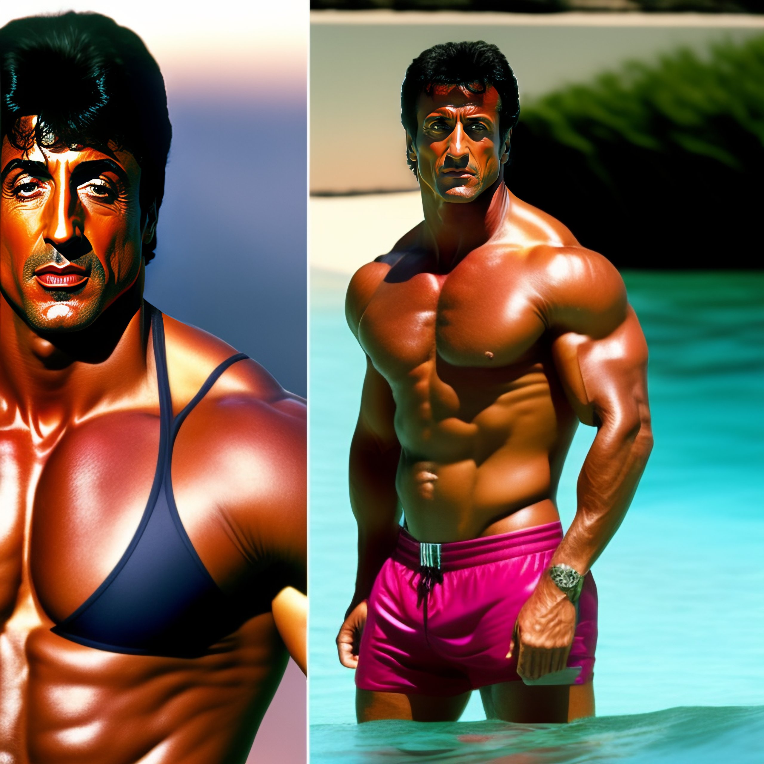 Sylvester stallone thin skinny without muscles in a bathing suit