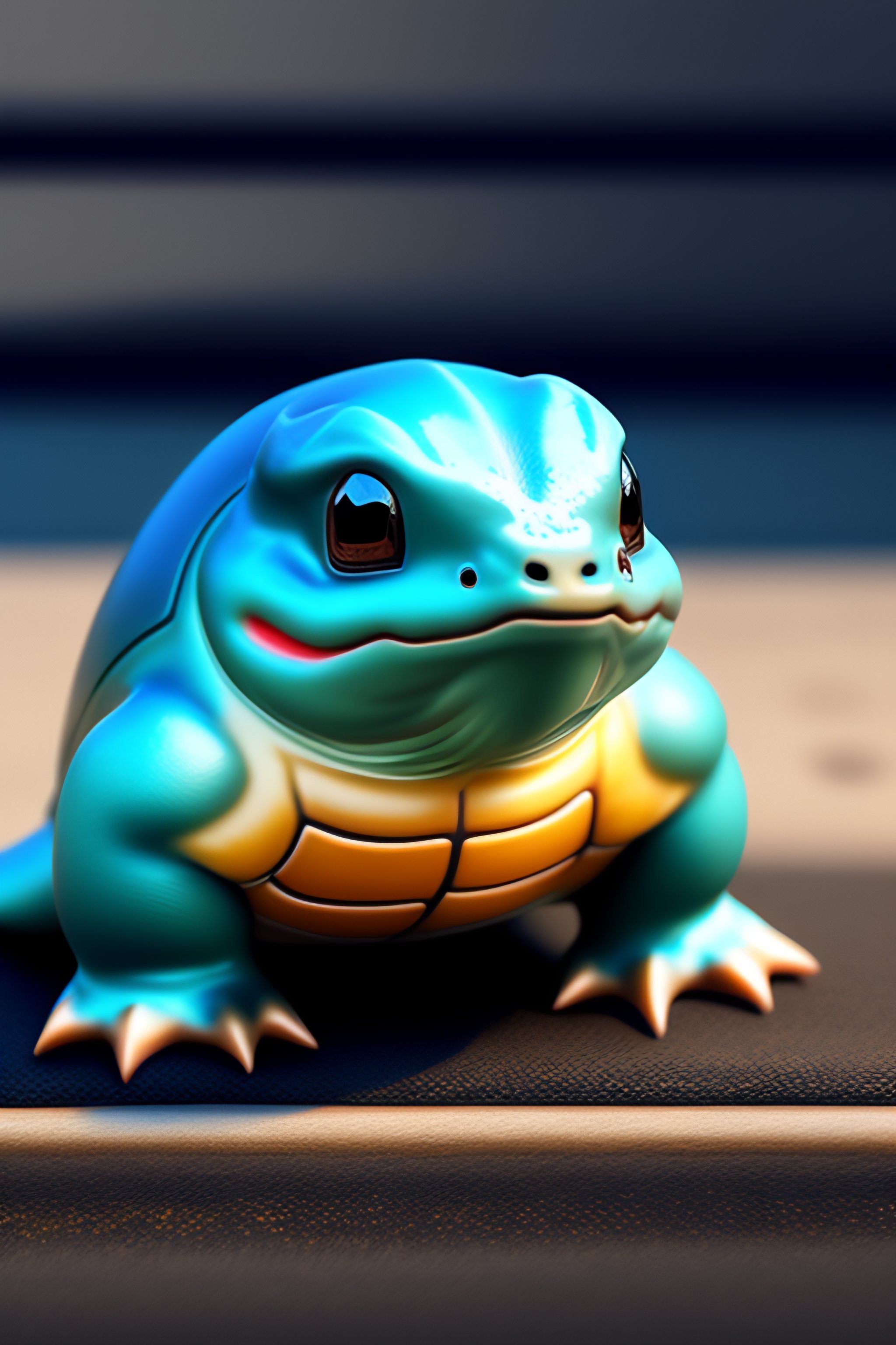 Realistic real life render of squirtle from pokemon on the sidewalk