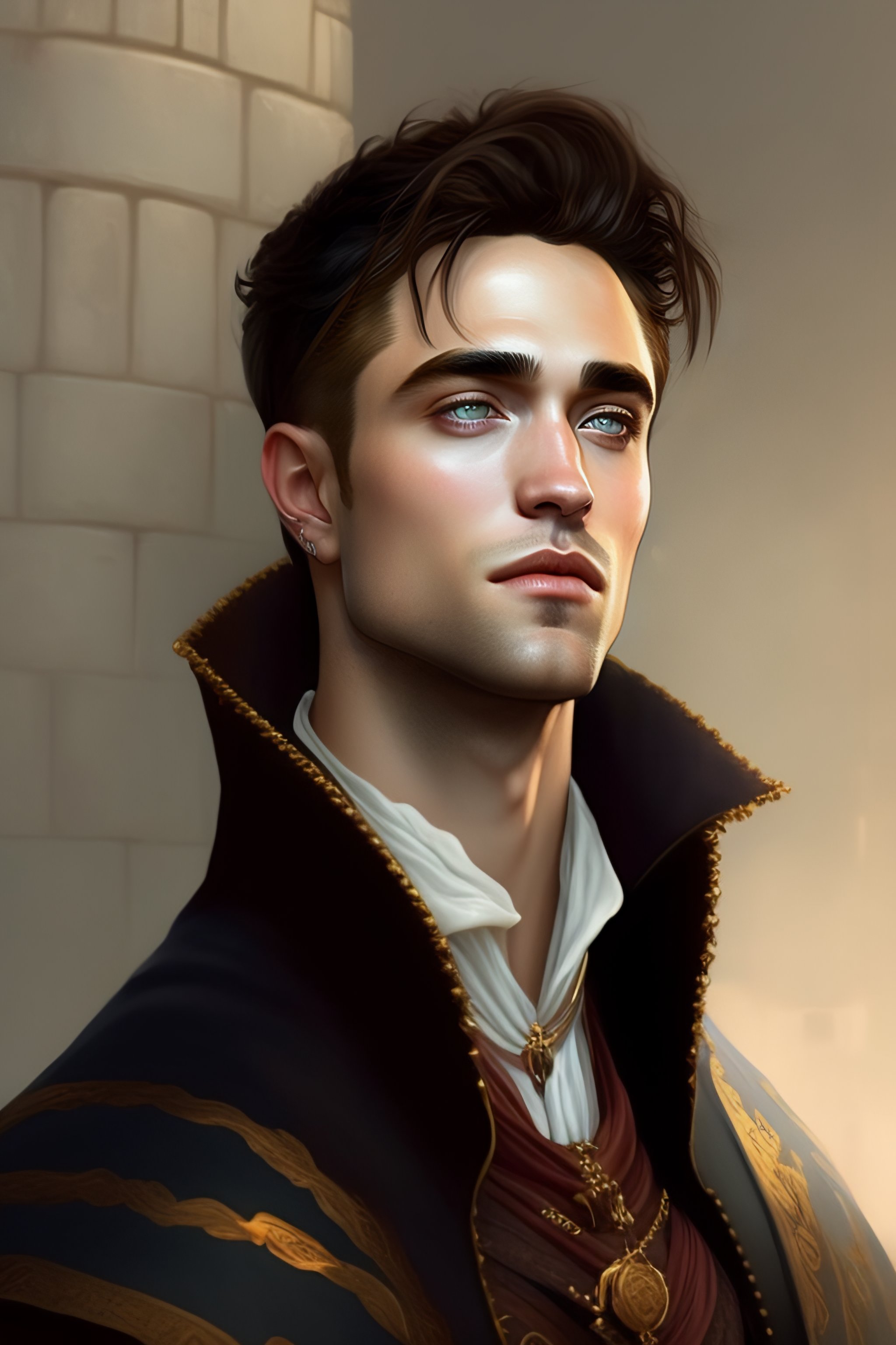 Robert pattinson with short hair in medieval style! pretty face! illustration, concept art, greg rutkowski style