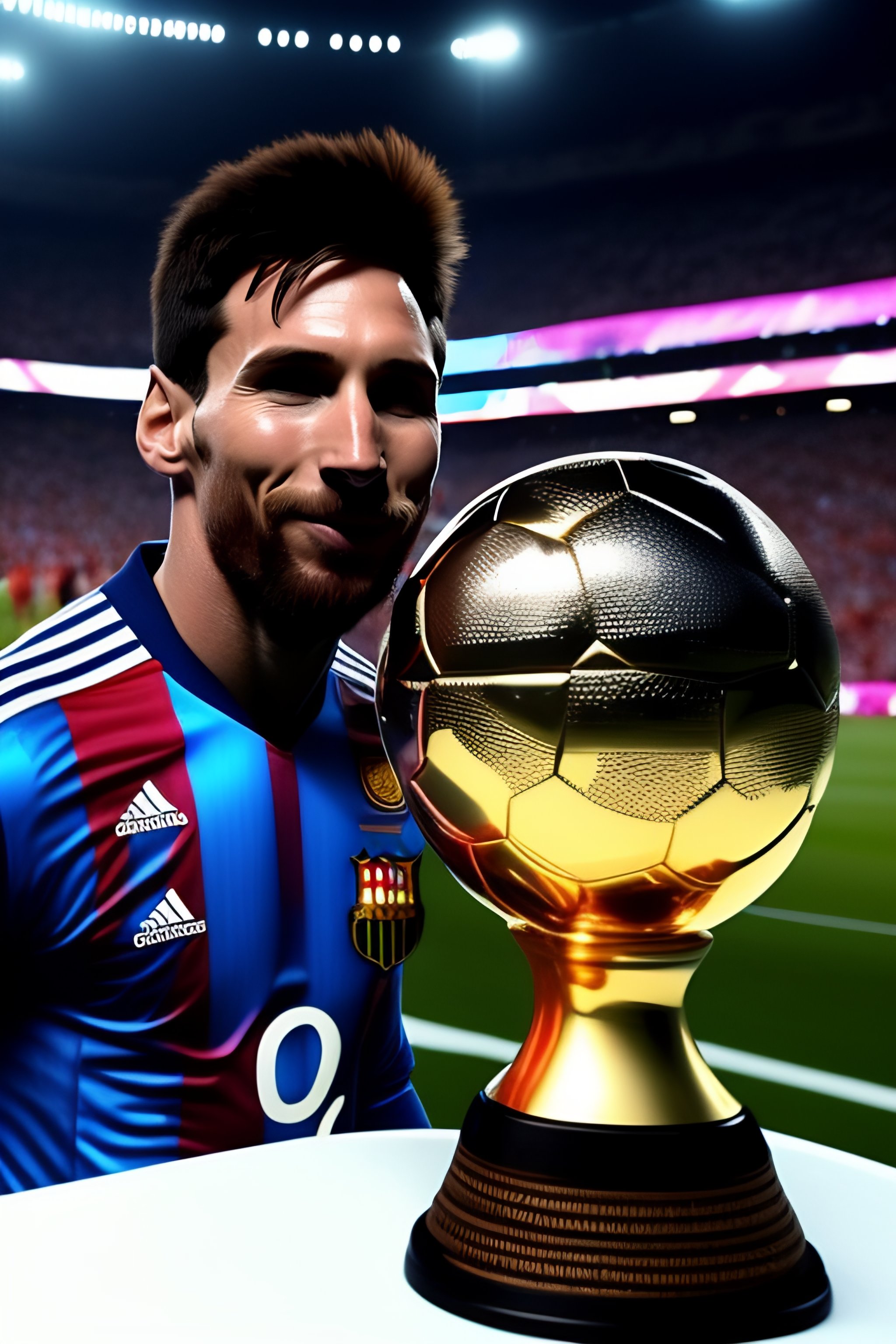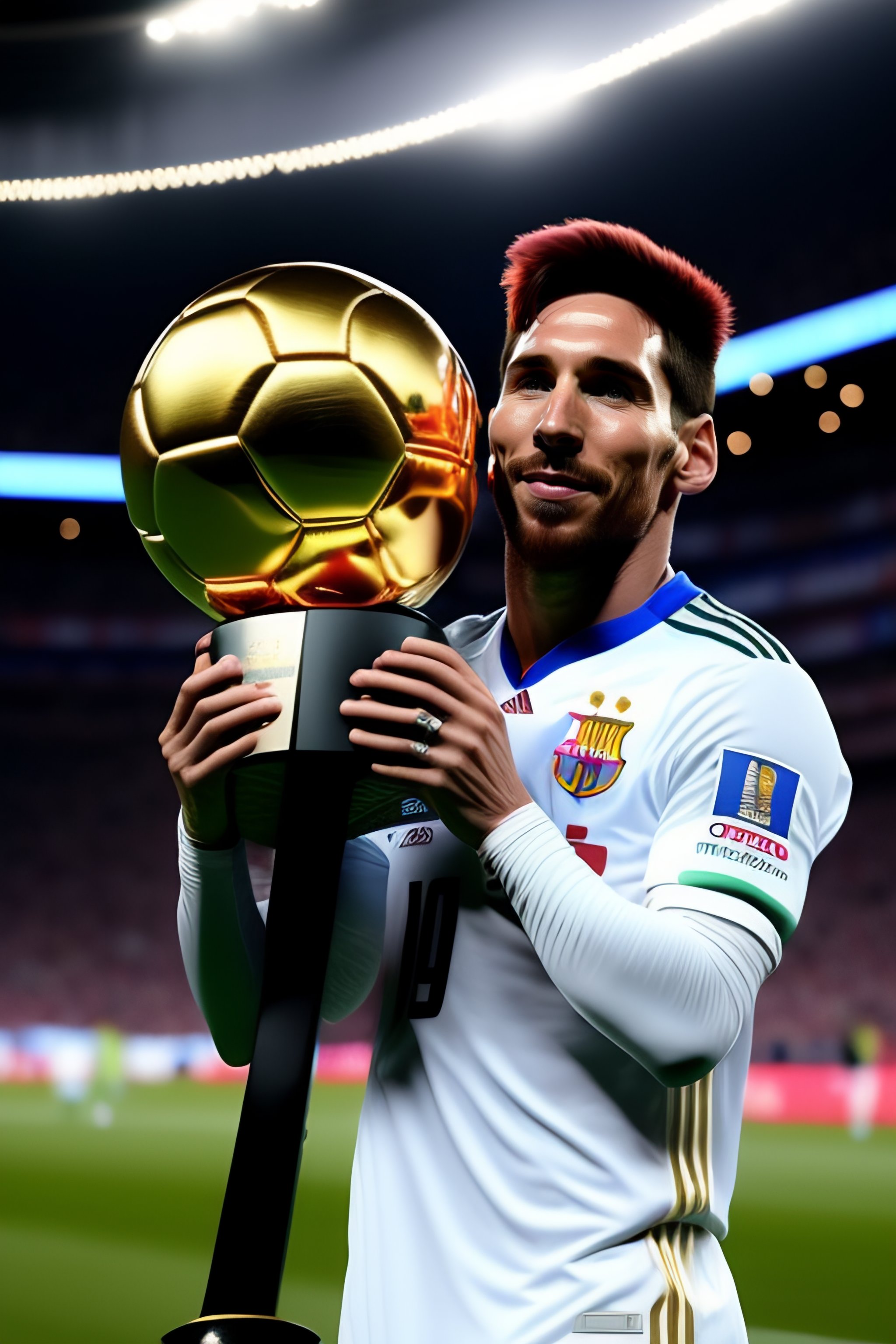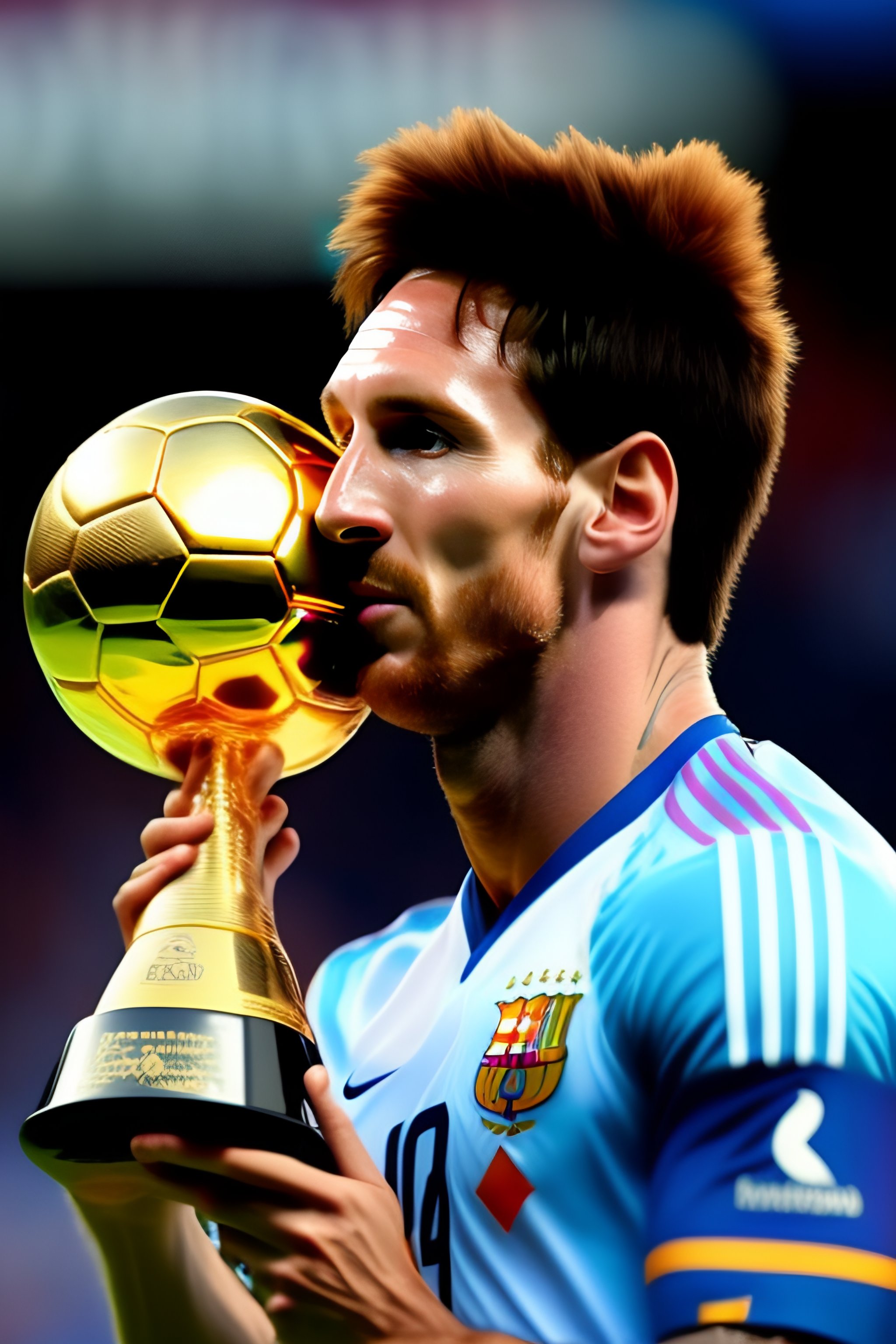 Messi con la copa del mundo saludando a unos extraterrestres que estan fumando un cigarrete sobre un unicornio