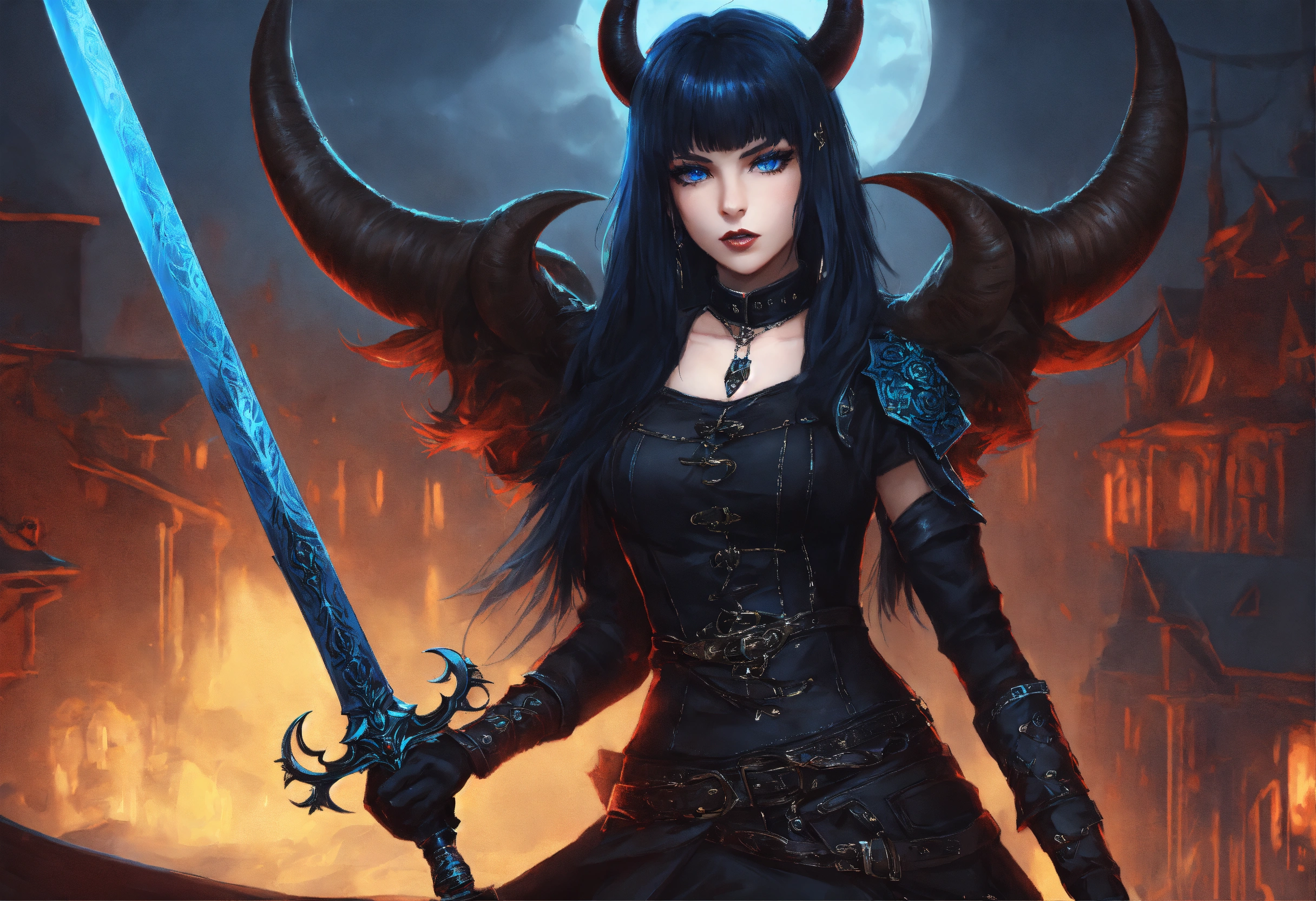 bangs with sword