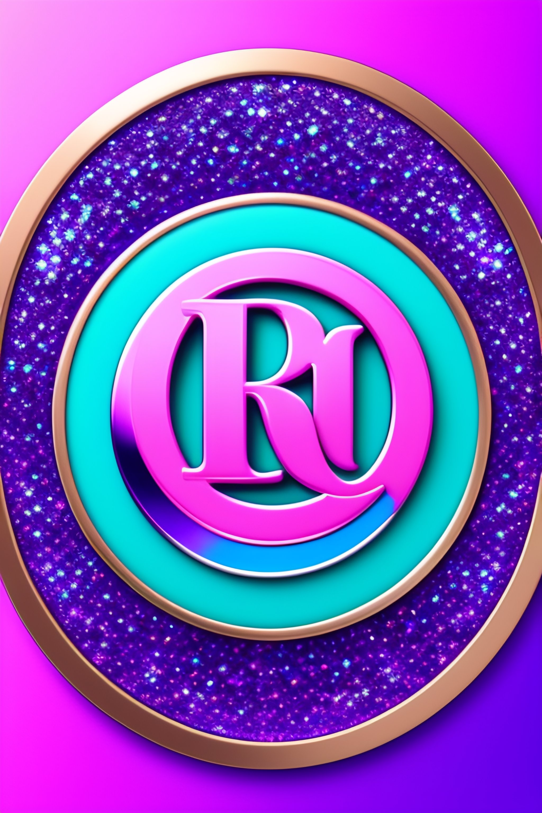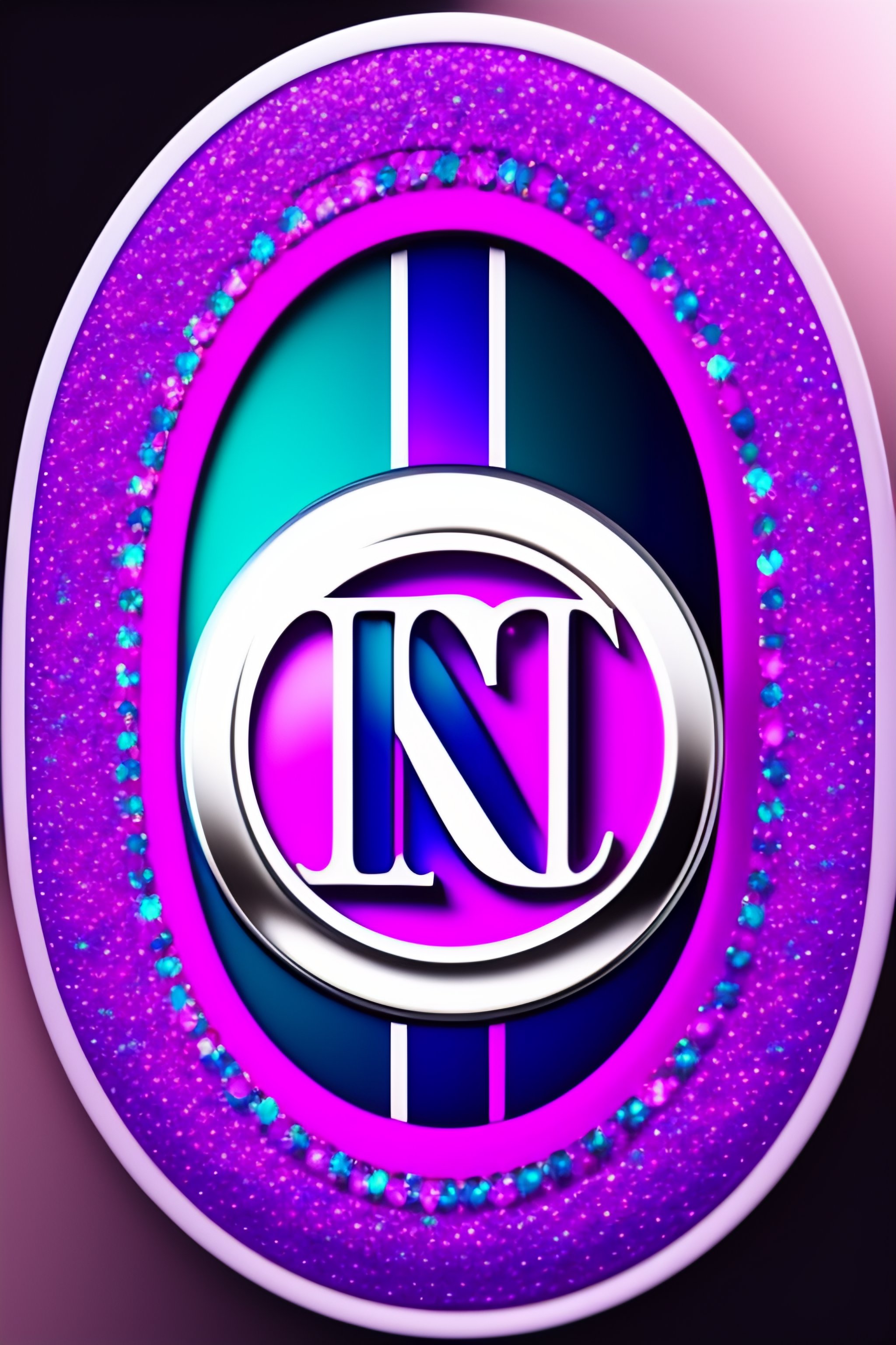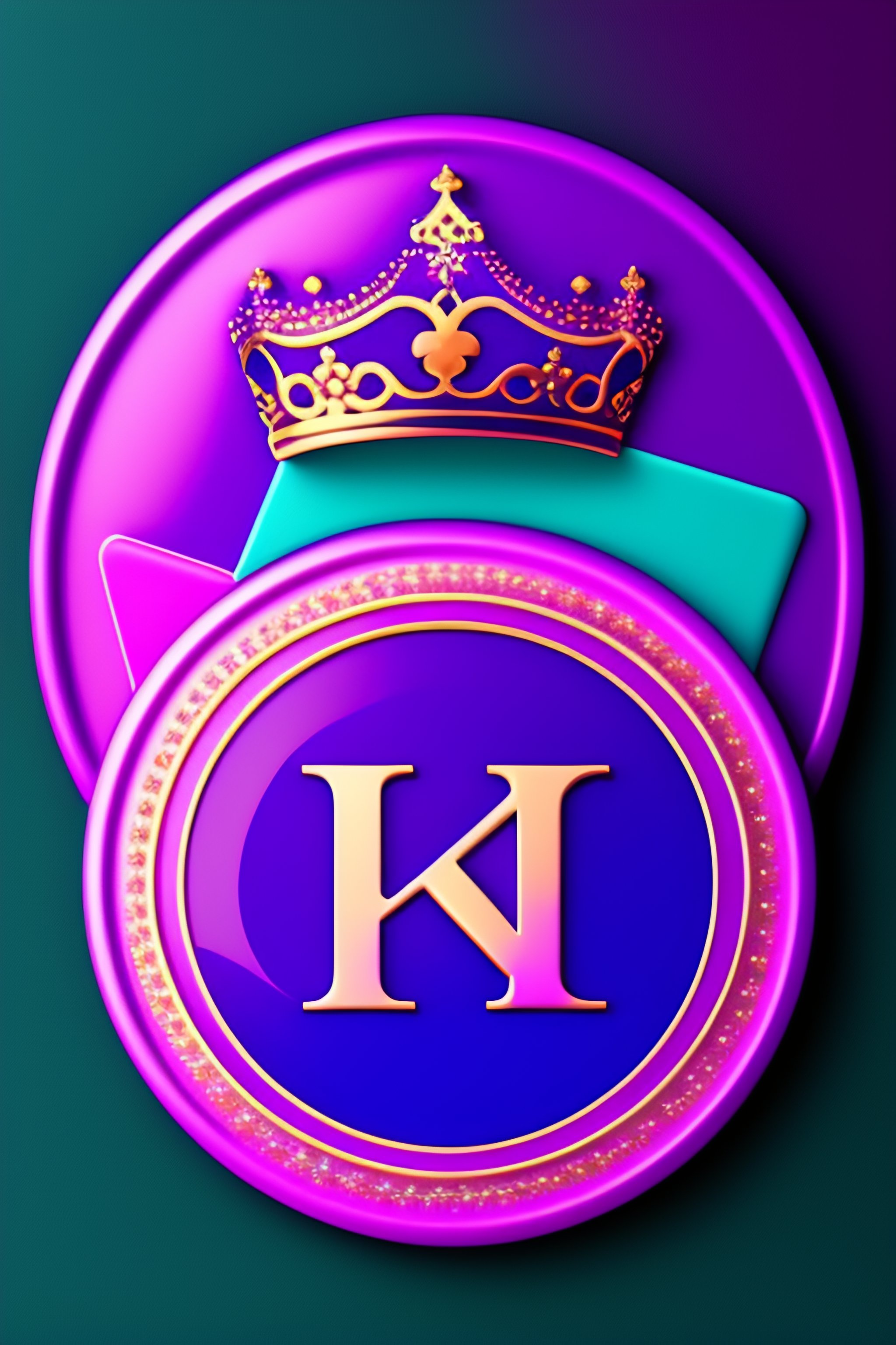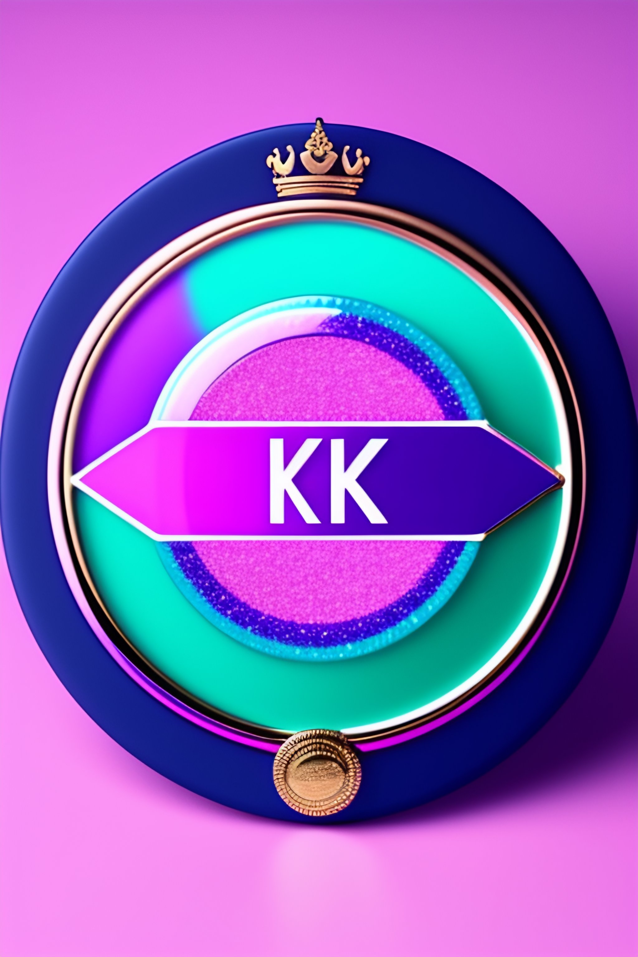 Business logo with a round monogram circle shaped badge with a crown on top. rhinestones sequins shine glitter, sparkle, made with colors of pink purple and turquoise, classy, modern, feminine 8k, hd, intricate
