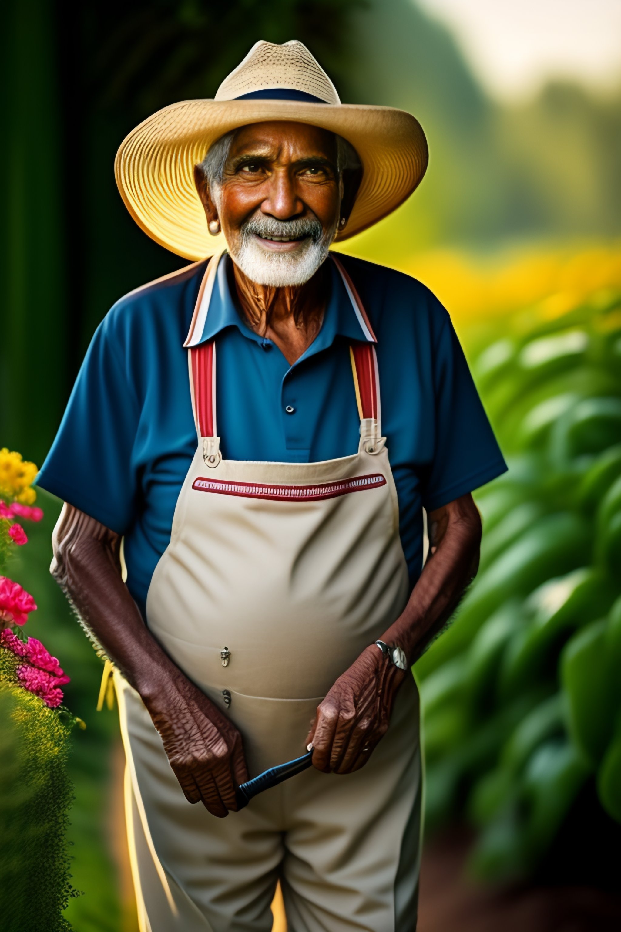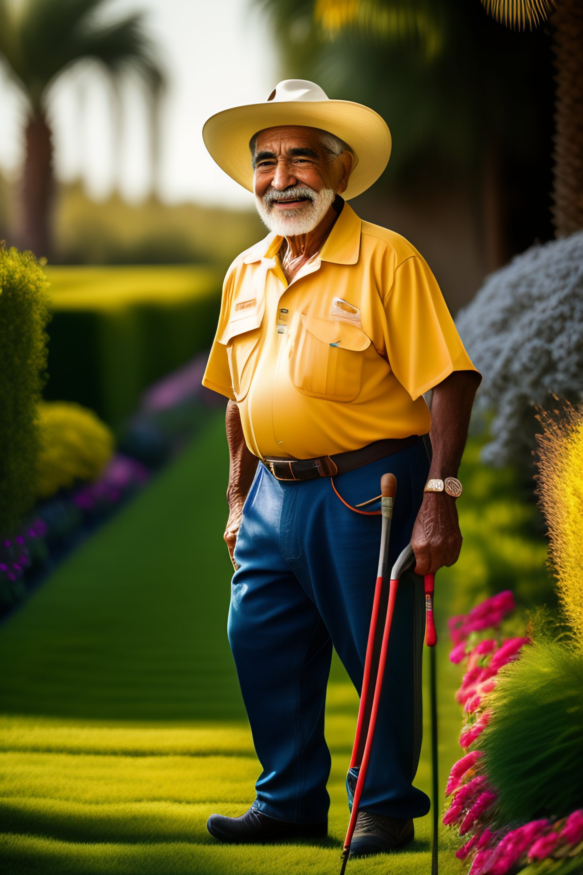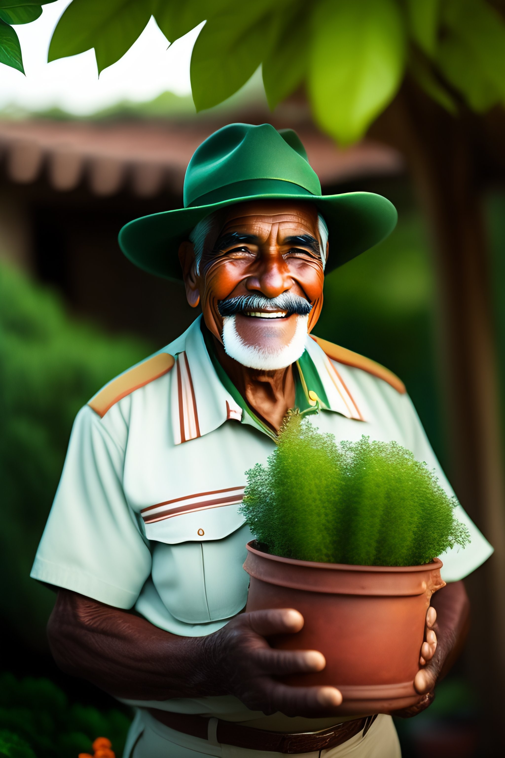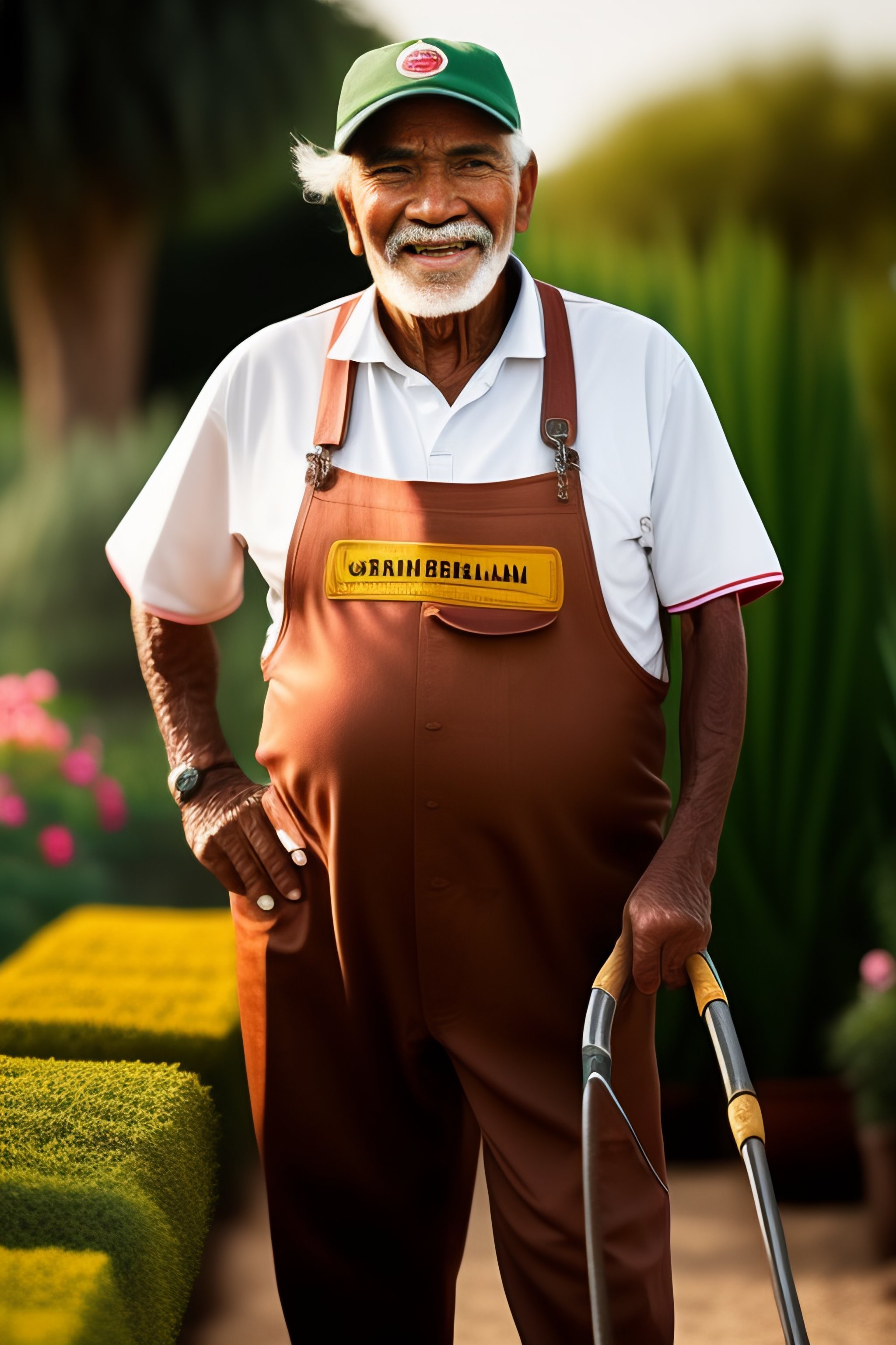 Smiling elderly mexican gardener