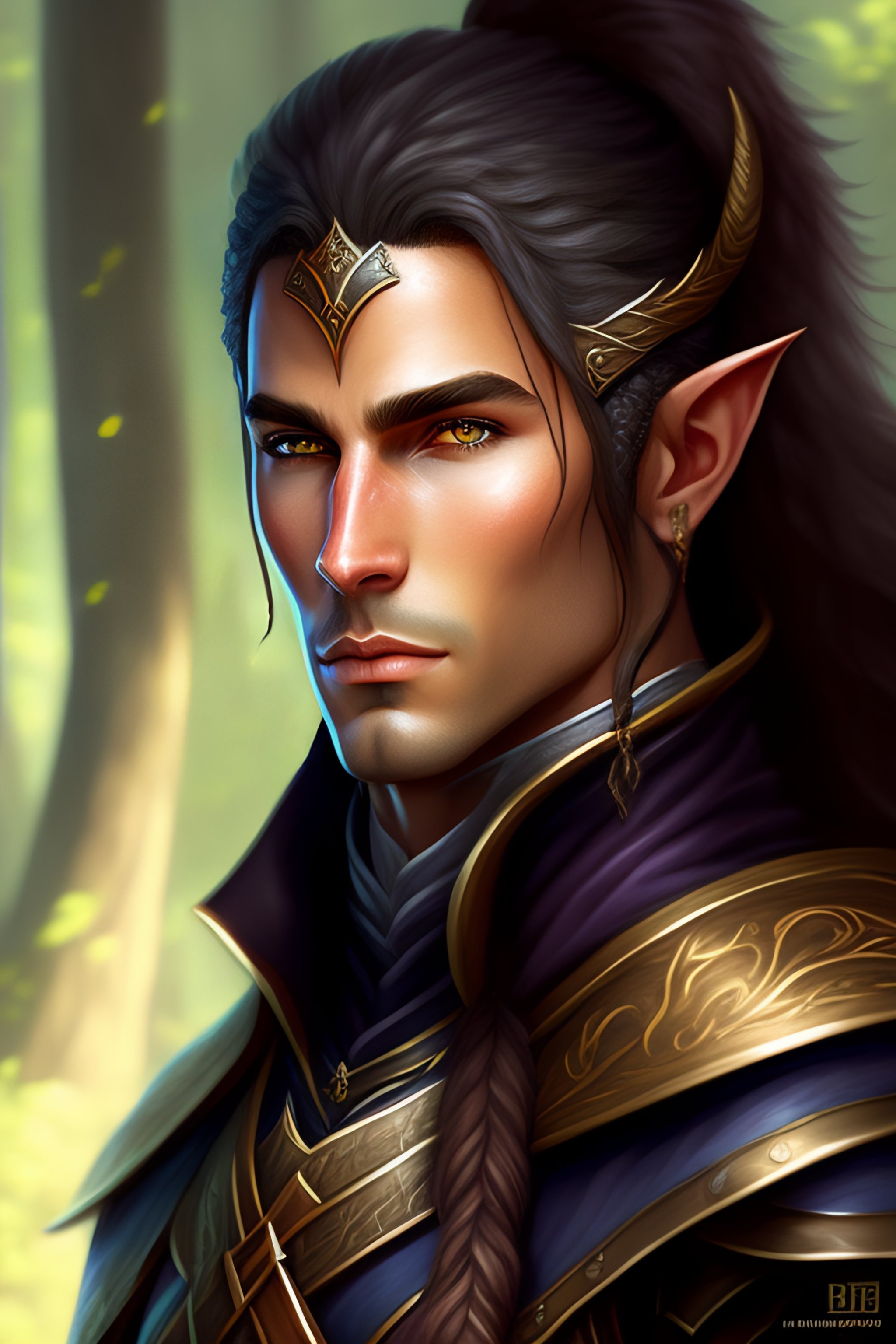 Fantasy portrait of a male elf ranger, custom character art, dnd illustration, dnd art, digital drawing, character drawing