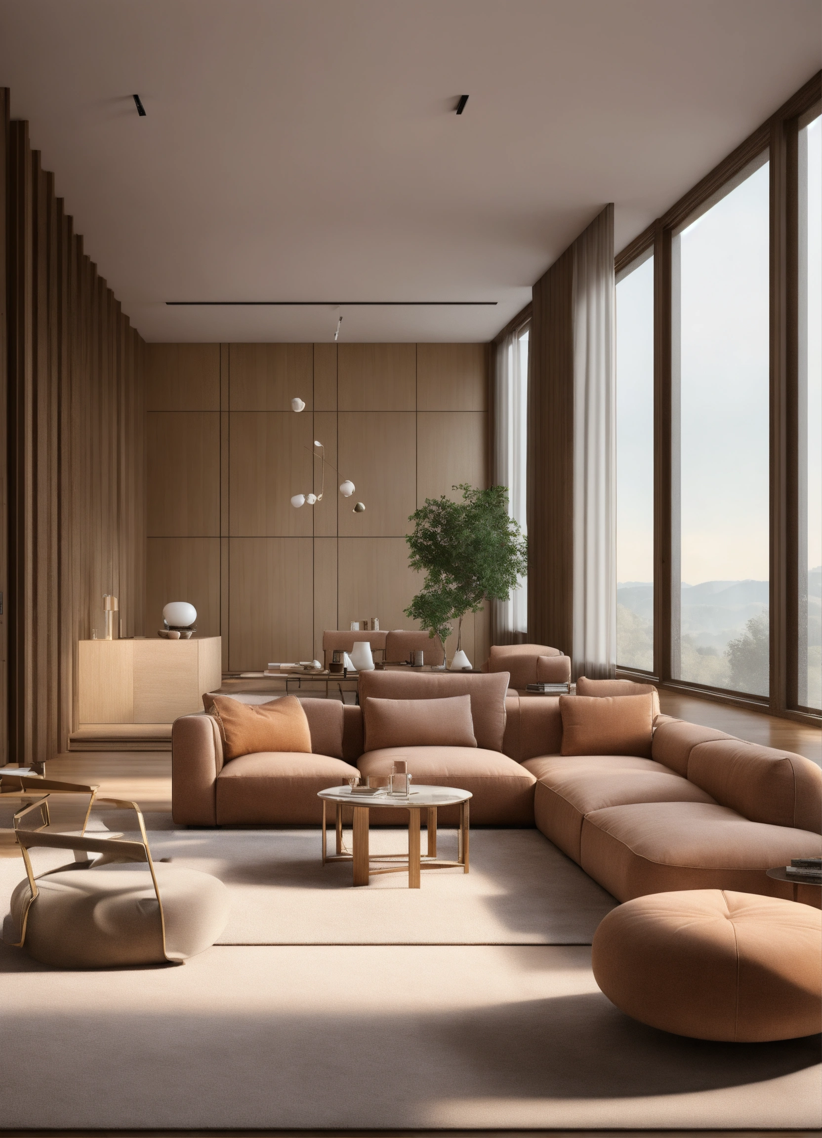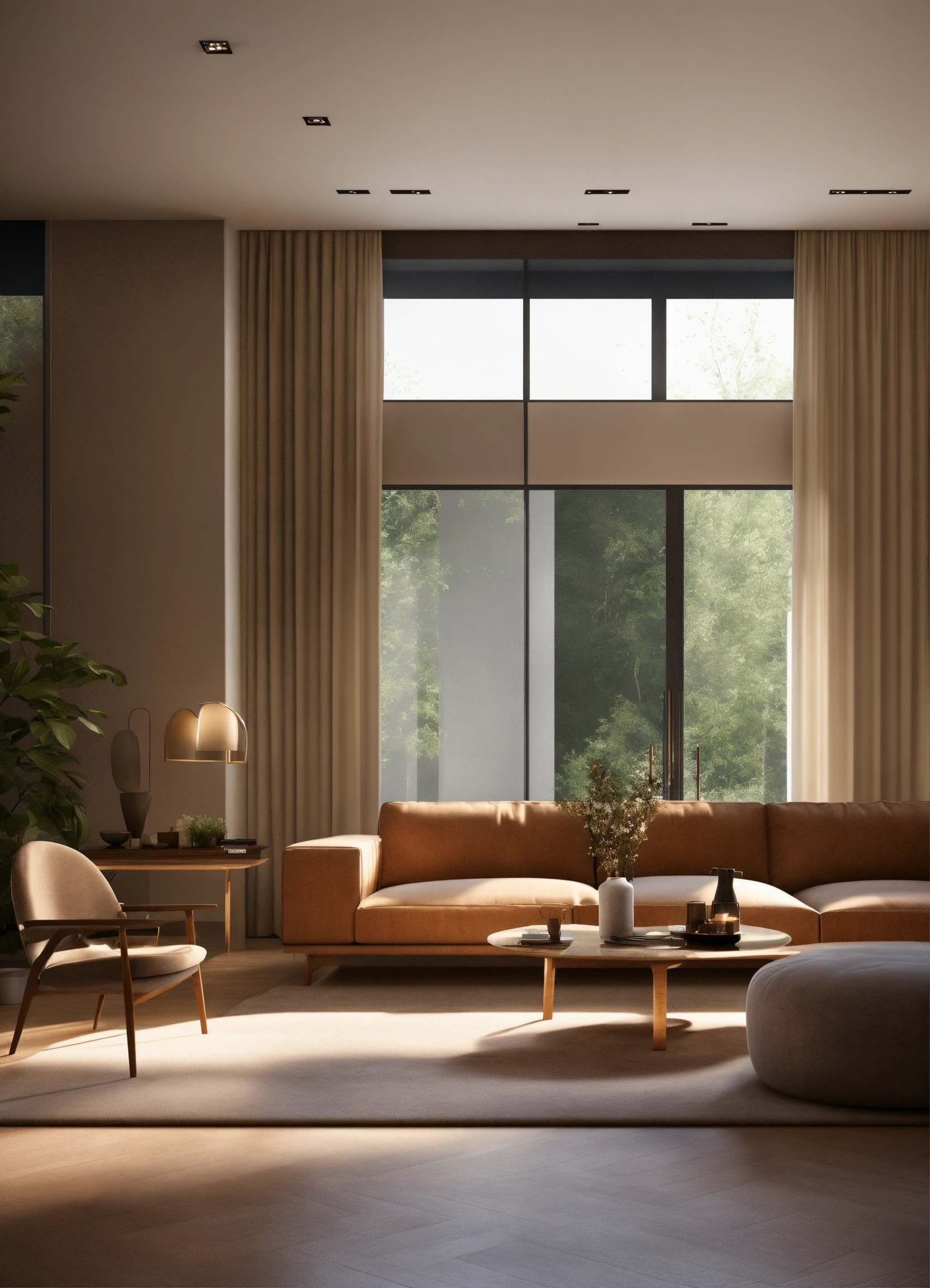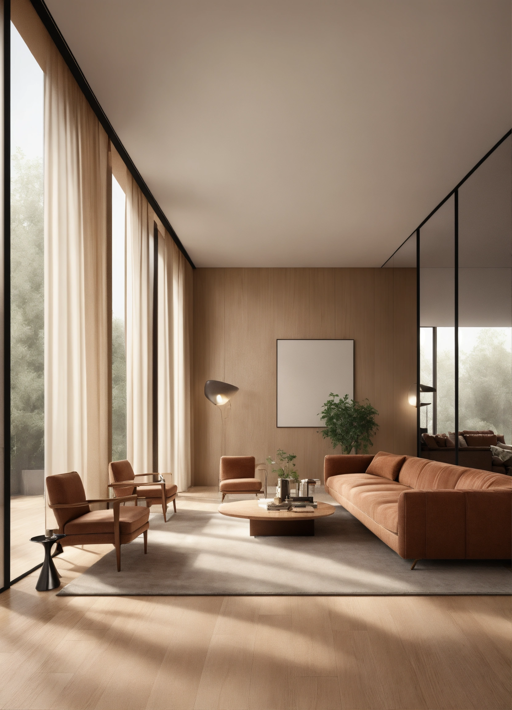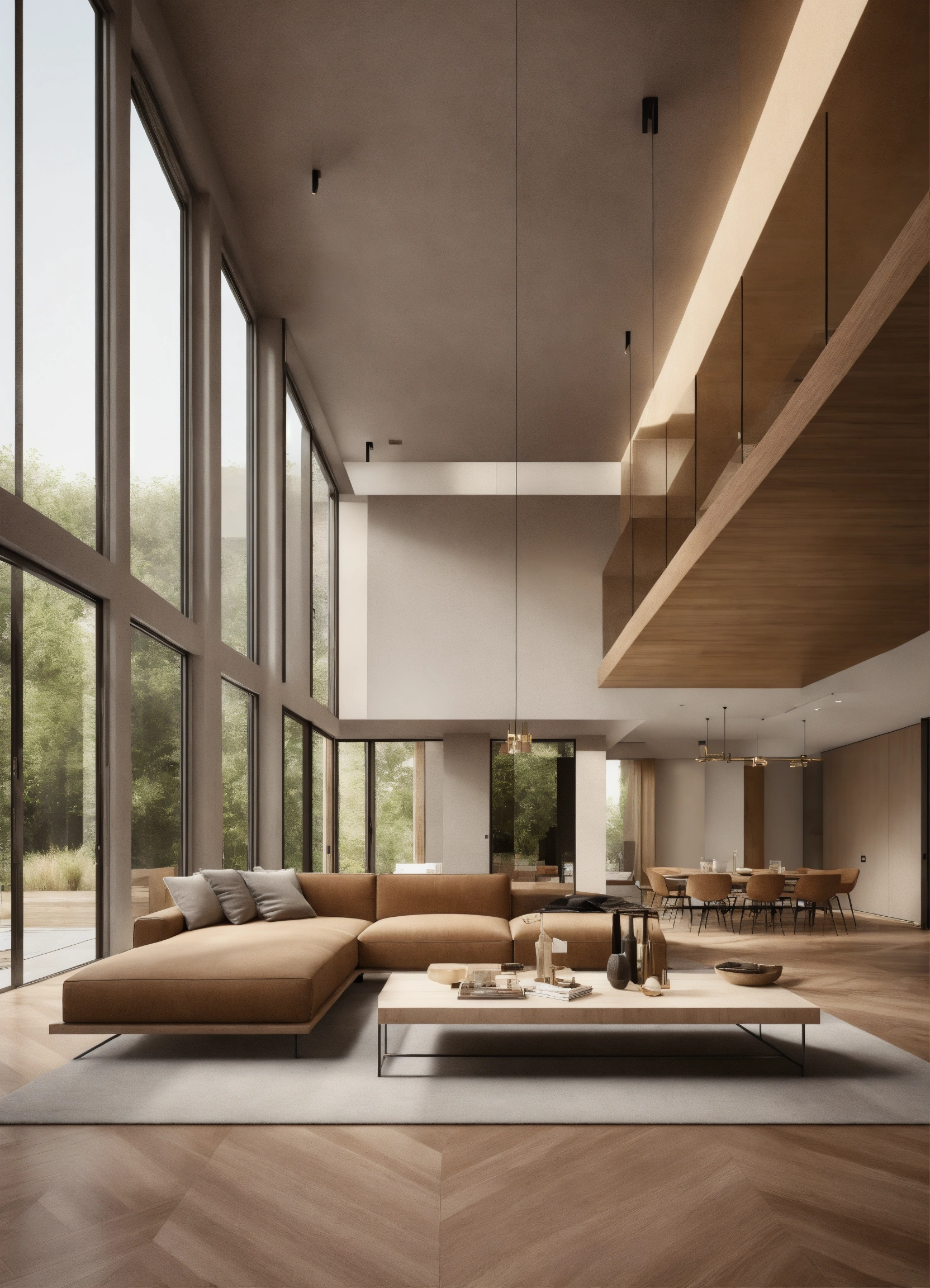 Generate a highly realistic image of a modern architecture in an elegant style, devoid of furnishings, showcasing a minimalist design. generate an empty living room without any furniture items; it's absolutely crucial that there are no sofas, armchairs, or loveseats.