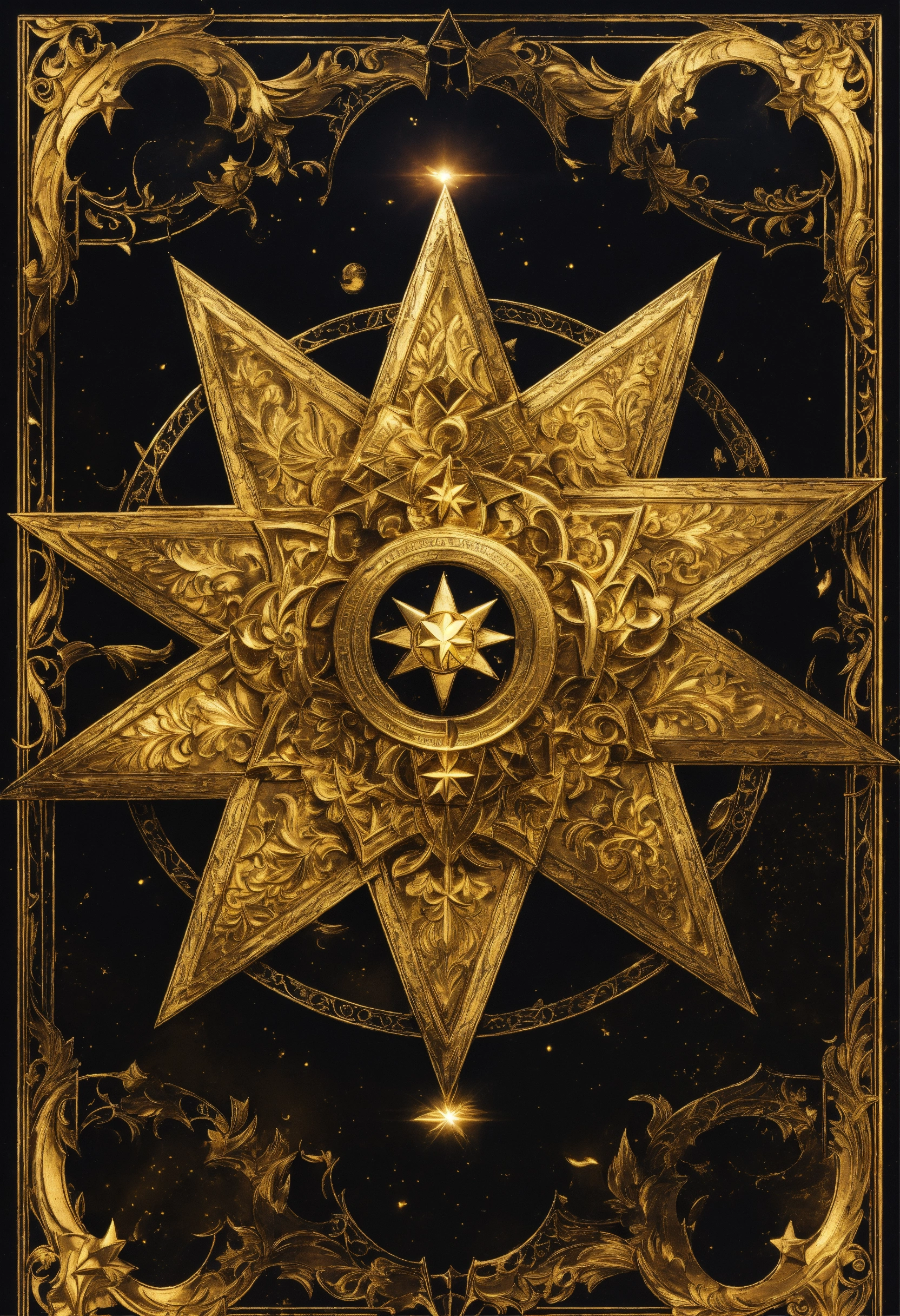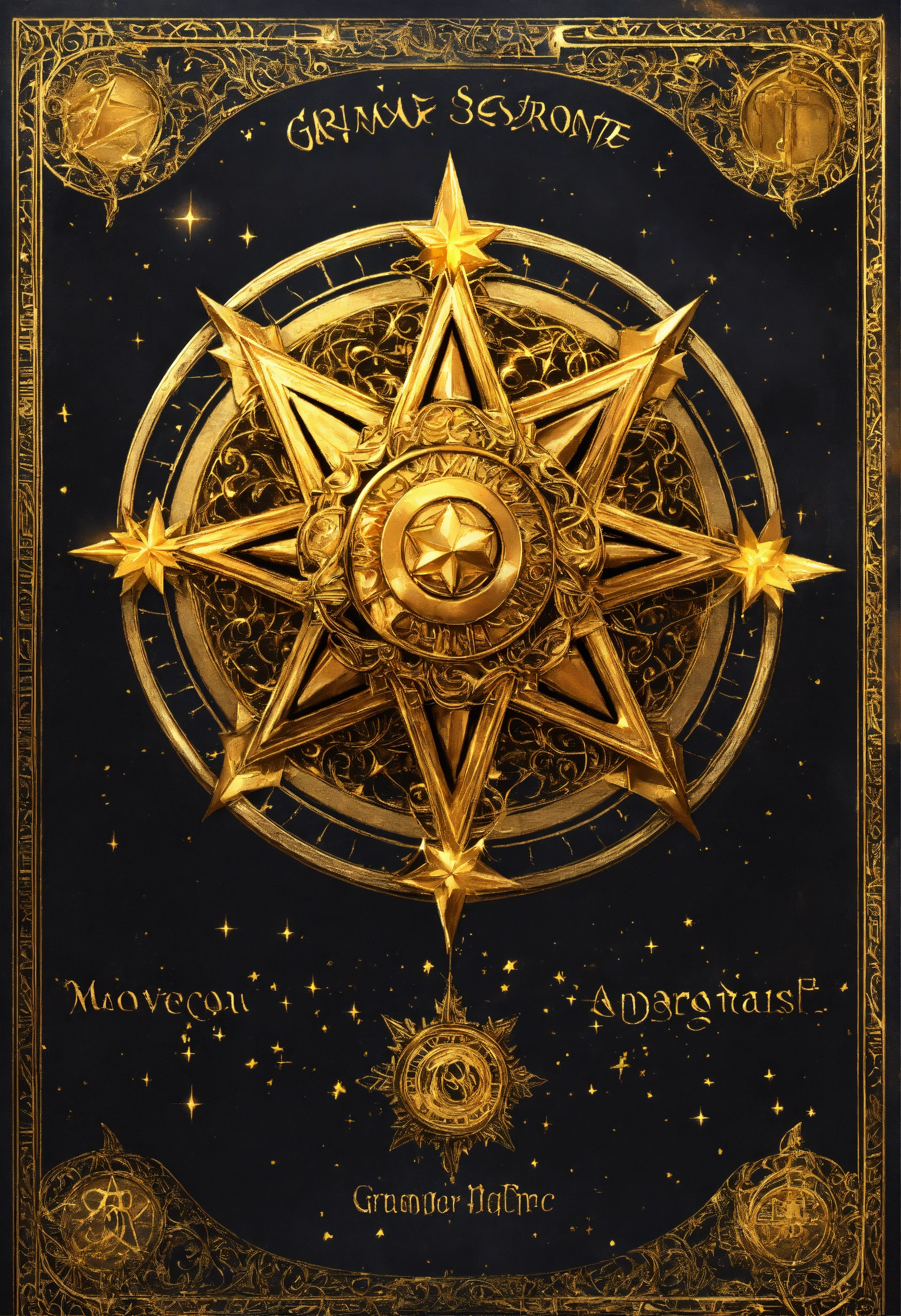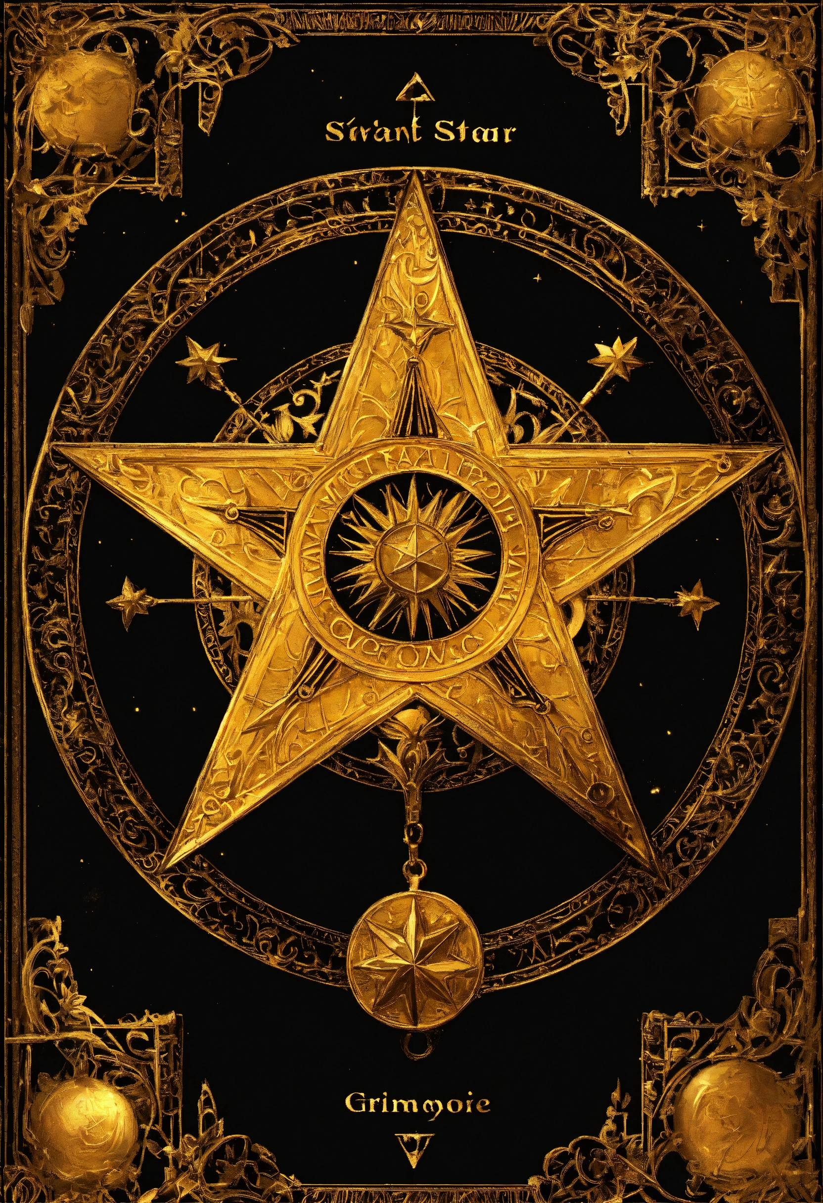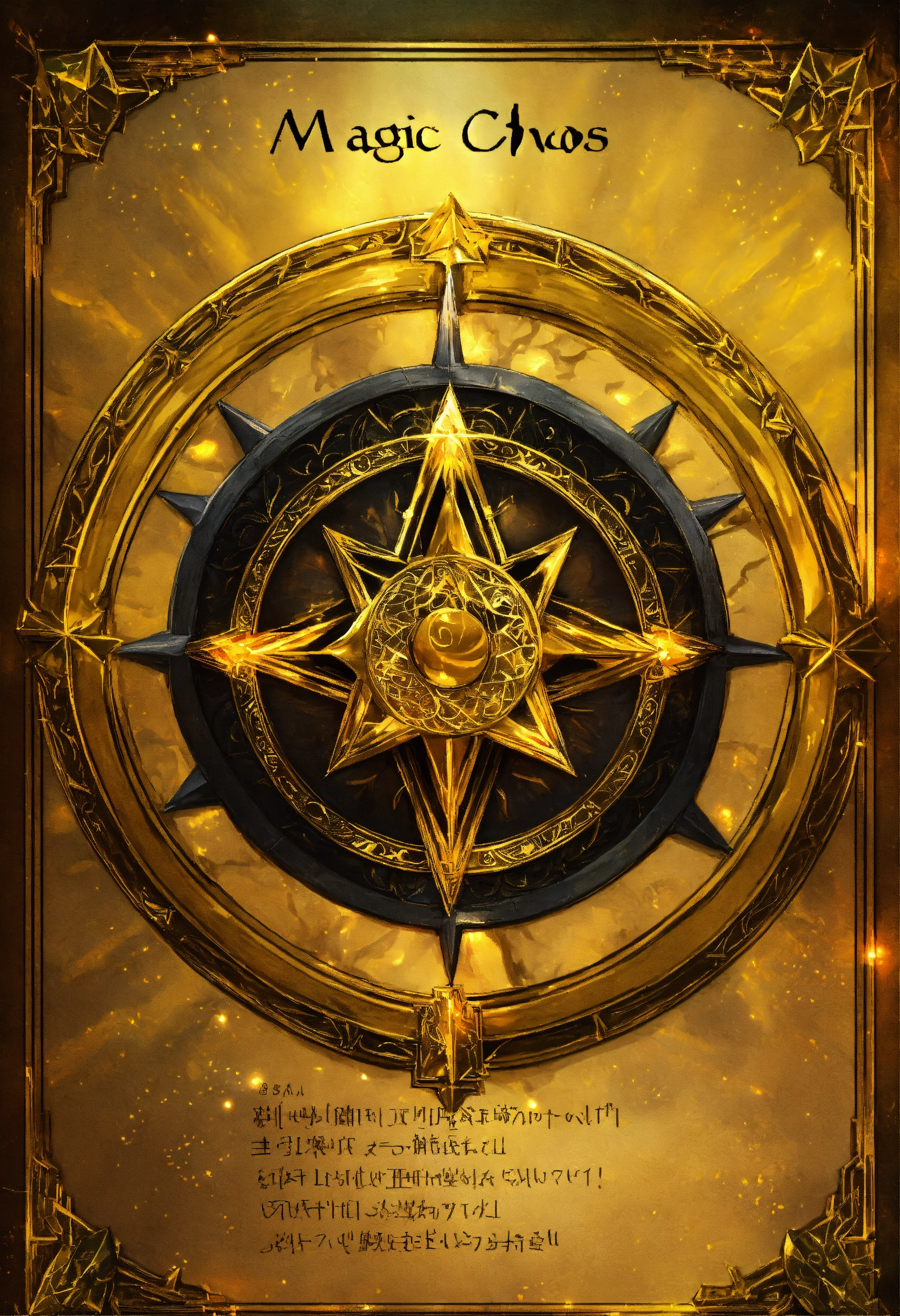 Magic chaos 8-pointed golden star with a inscription grimoire servant