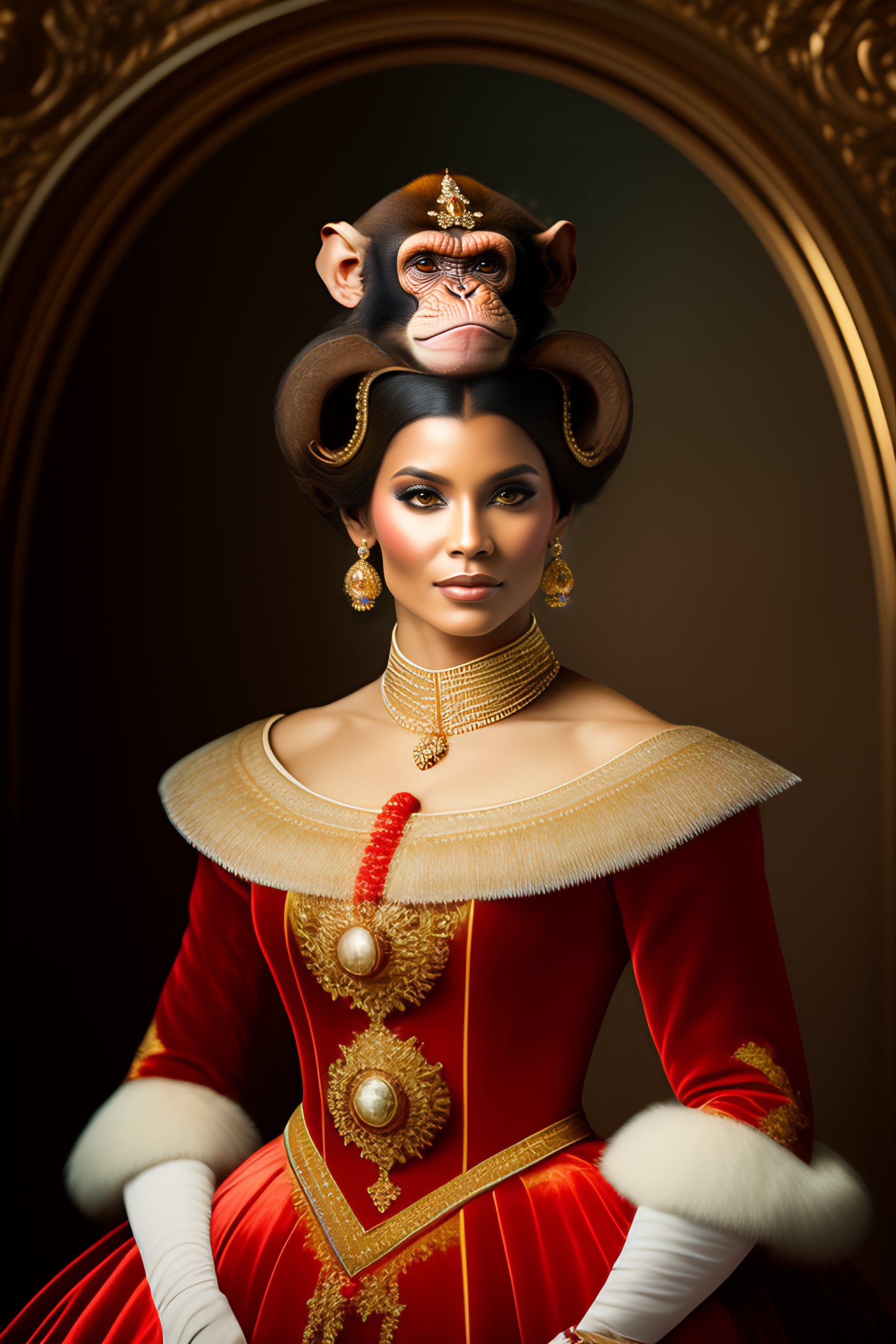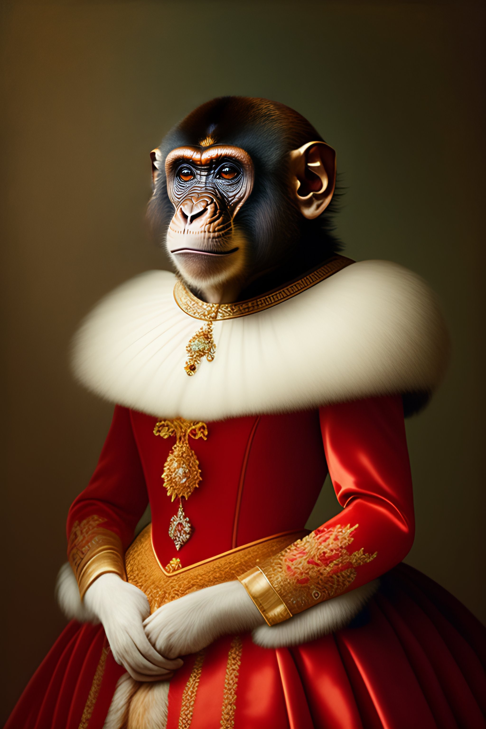 Portrait of a monkey dressed as a fancy lady