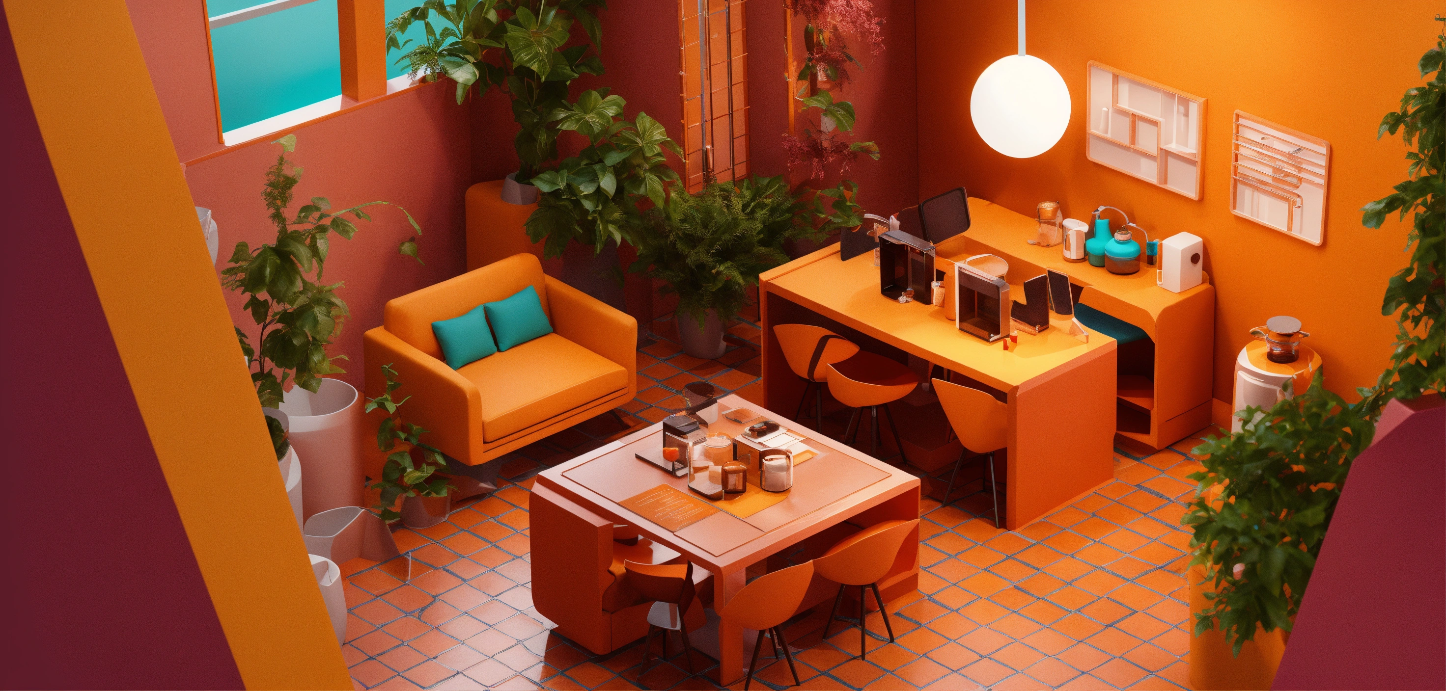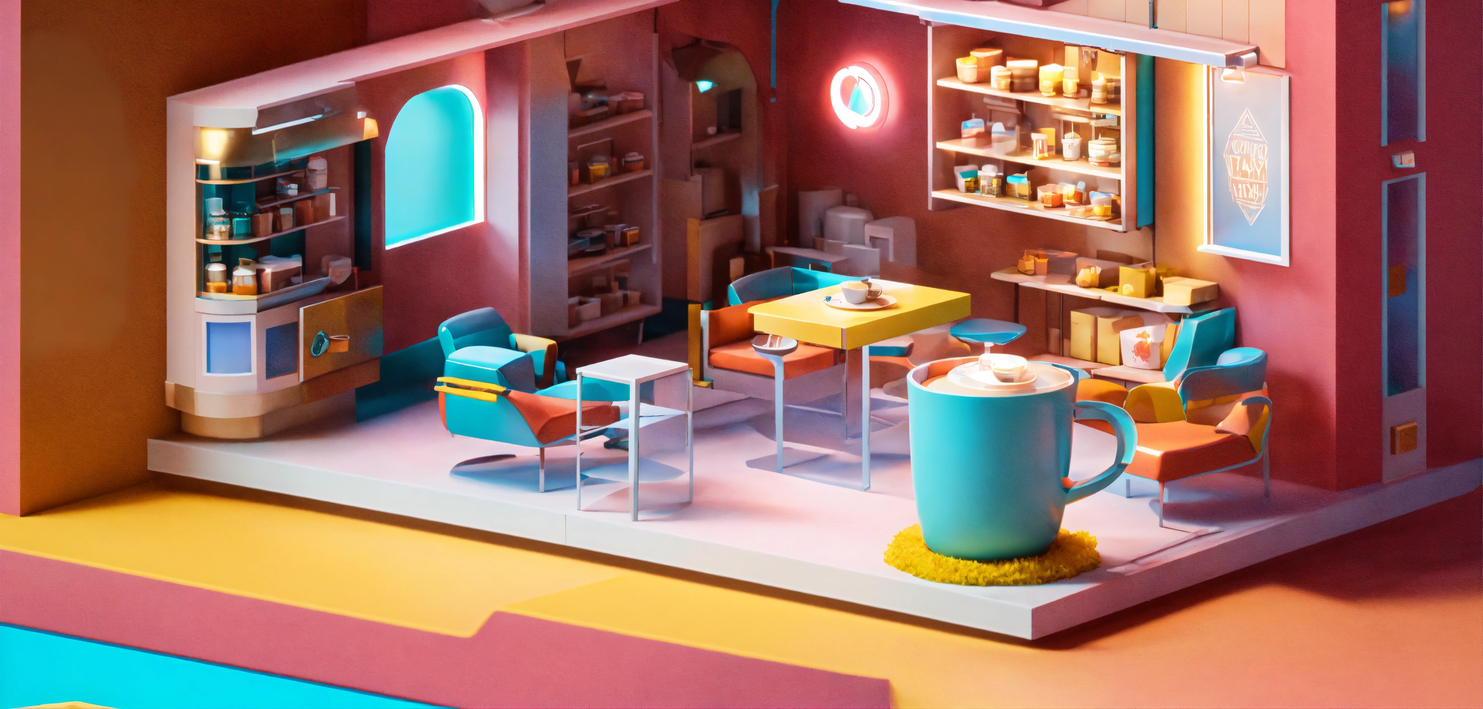 Tiny isometric environment in blender & product photography set design for a coffee company with bright and eccentric enclosed 3d environment design with unique futuristic contemporary design qualities