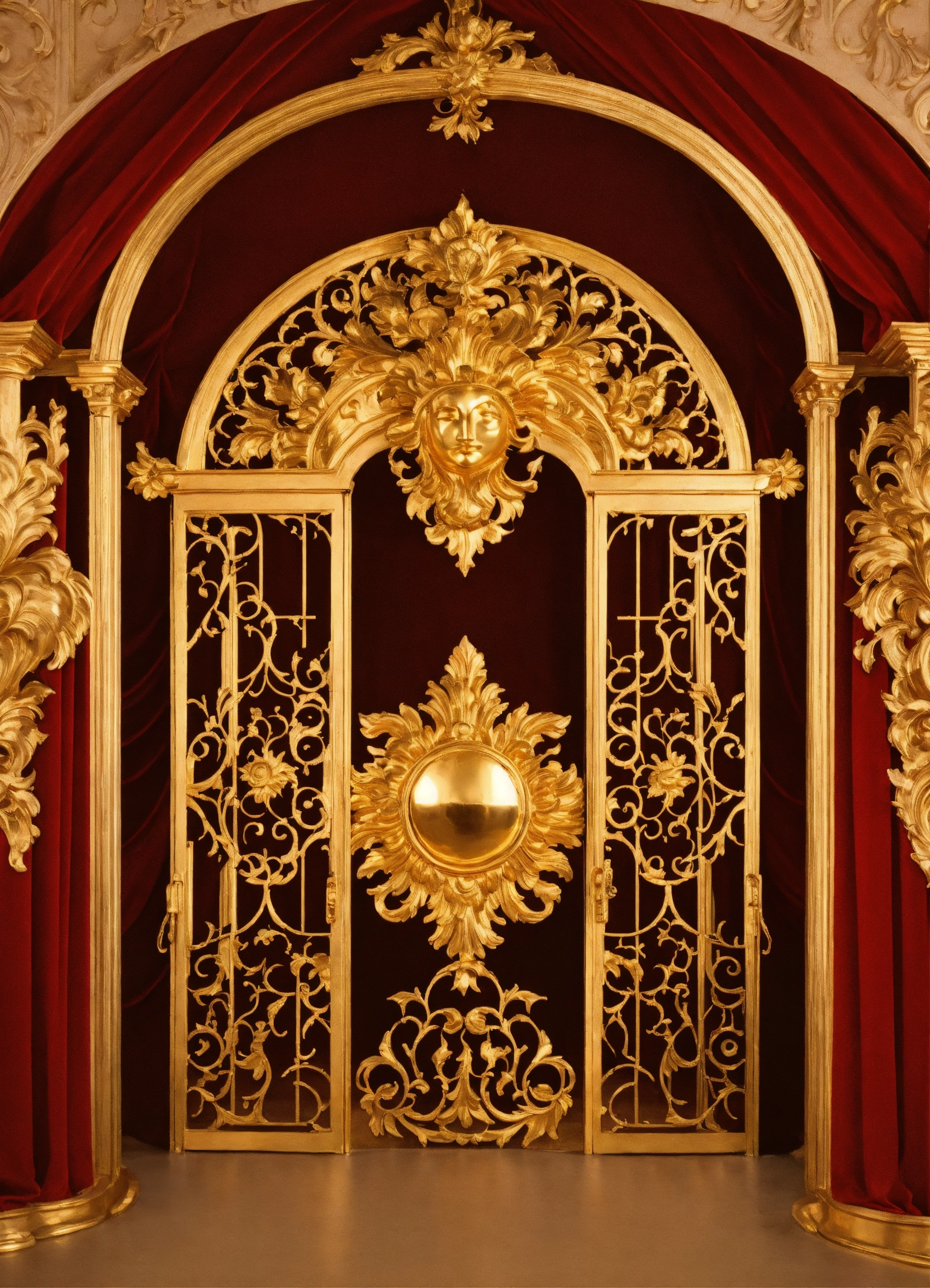 Art logo for my instagram, tiktok, and pinterest is called opulent design co. (subtitled est 2021). my logo is gold, bold, baroque, versailles, rococo style with louis xiv sun king image as like on versailles entrance gold gates