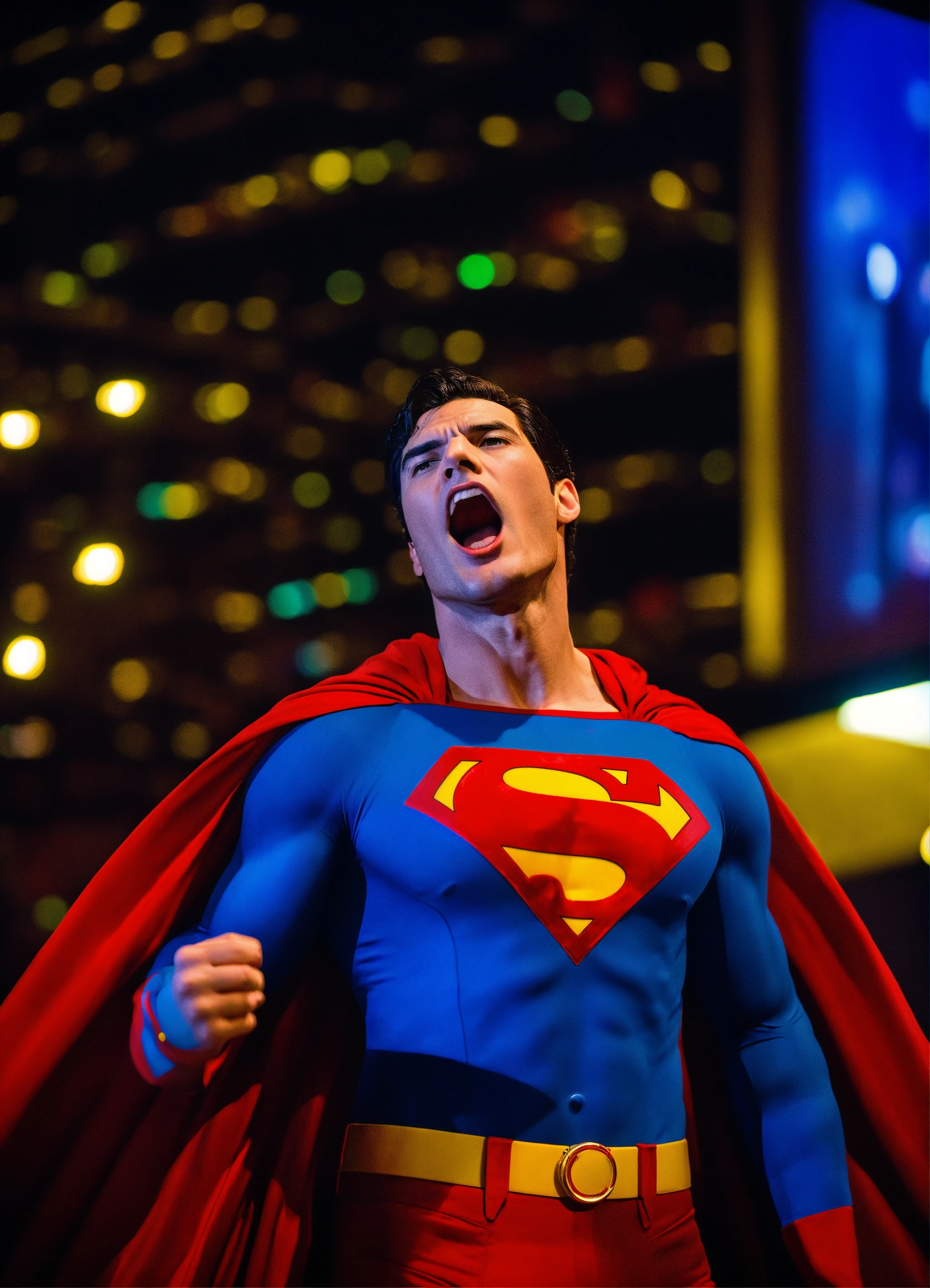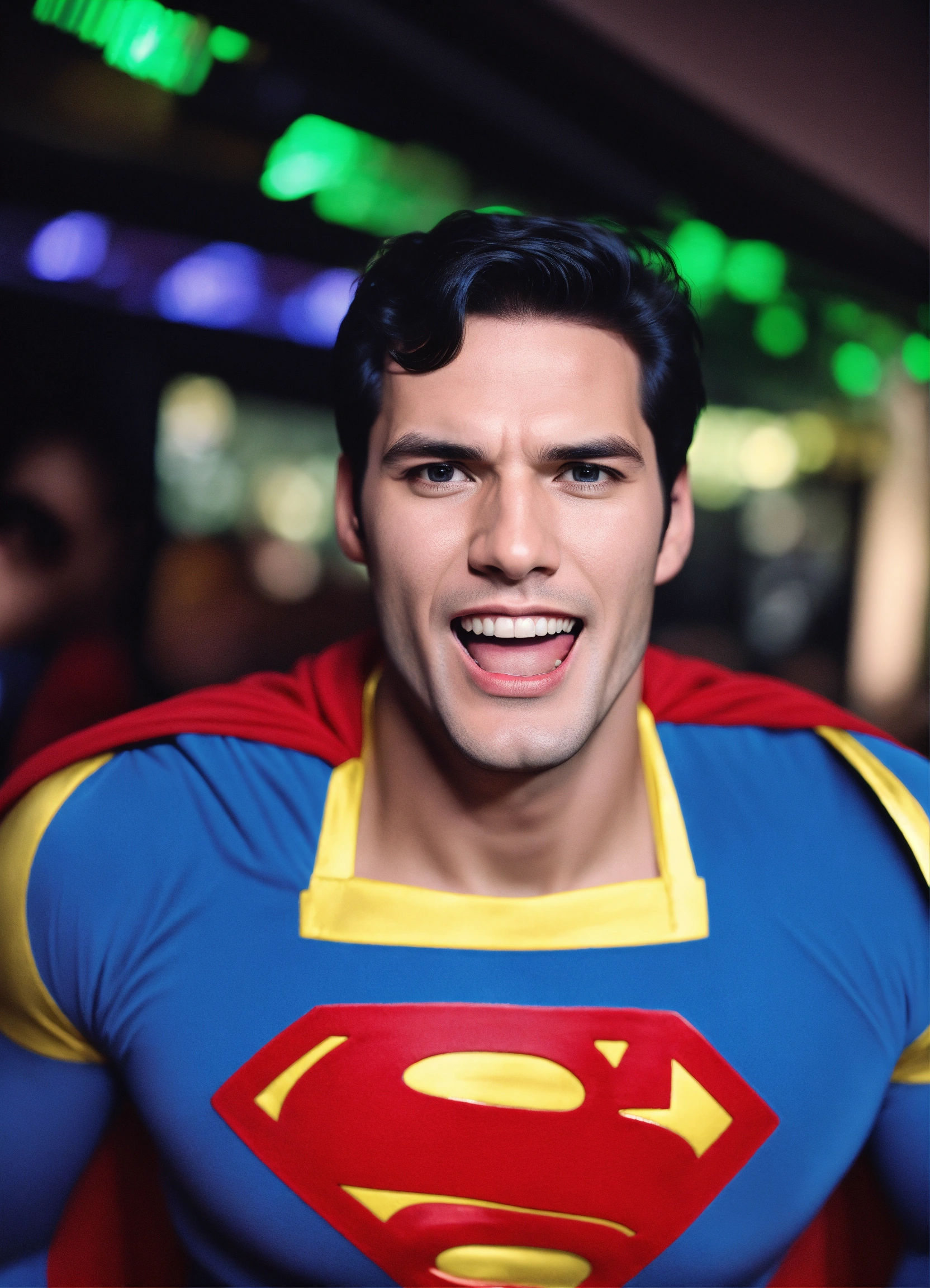 Superman sings in clear focus led camera karoke
