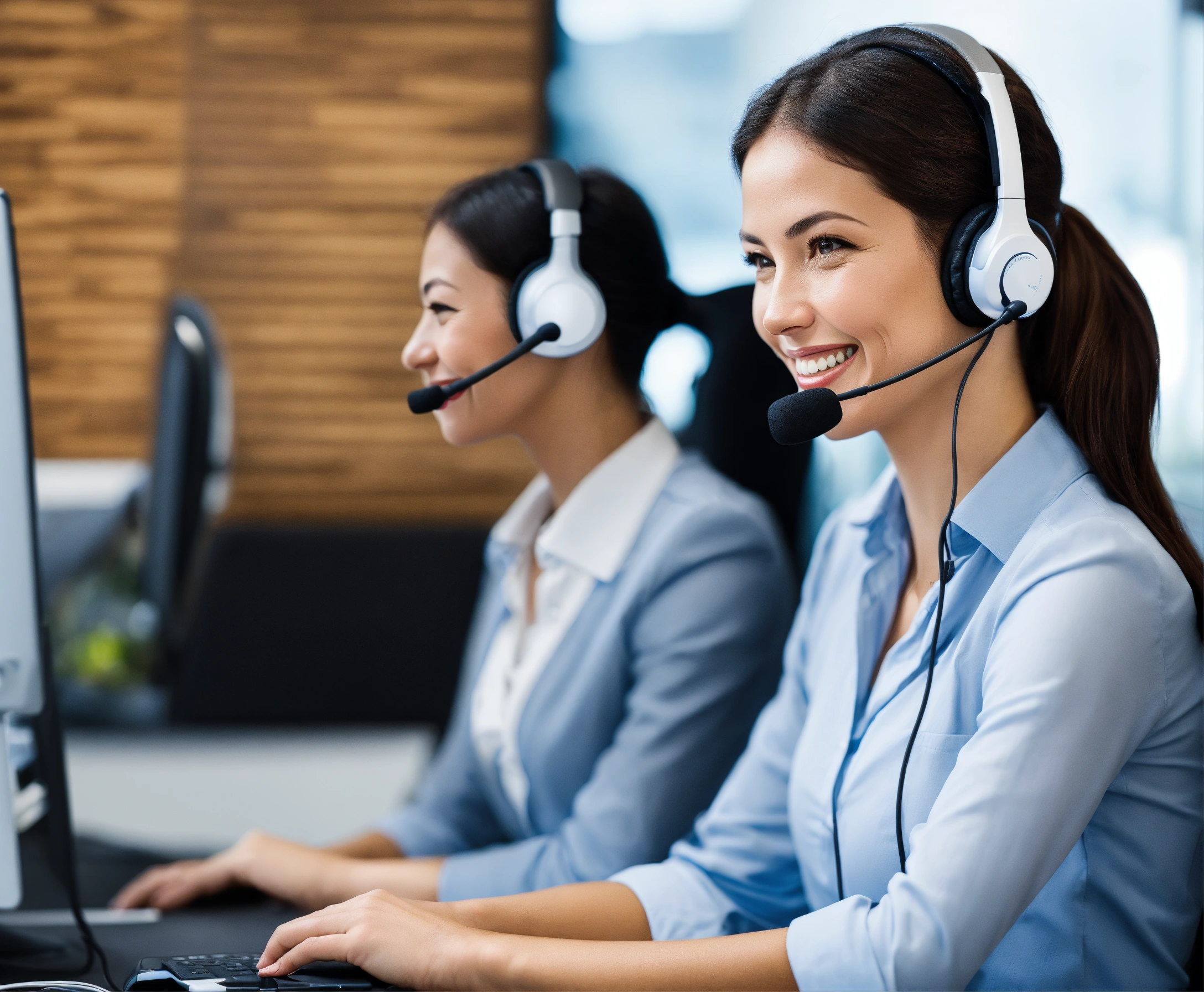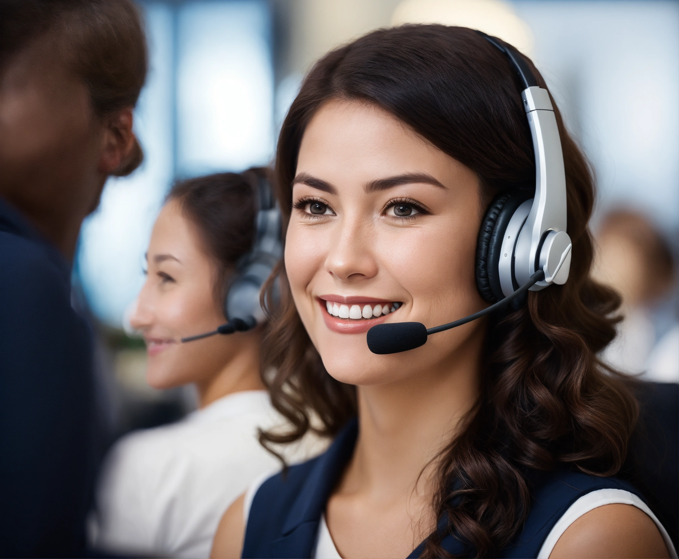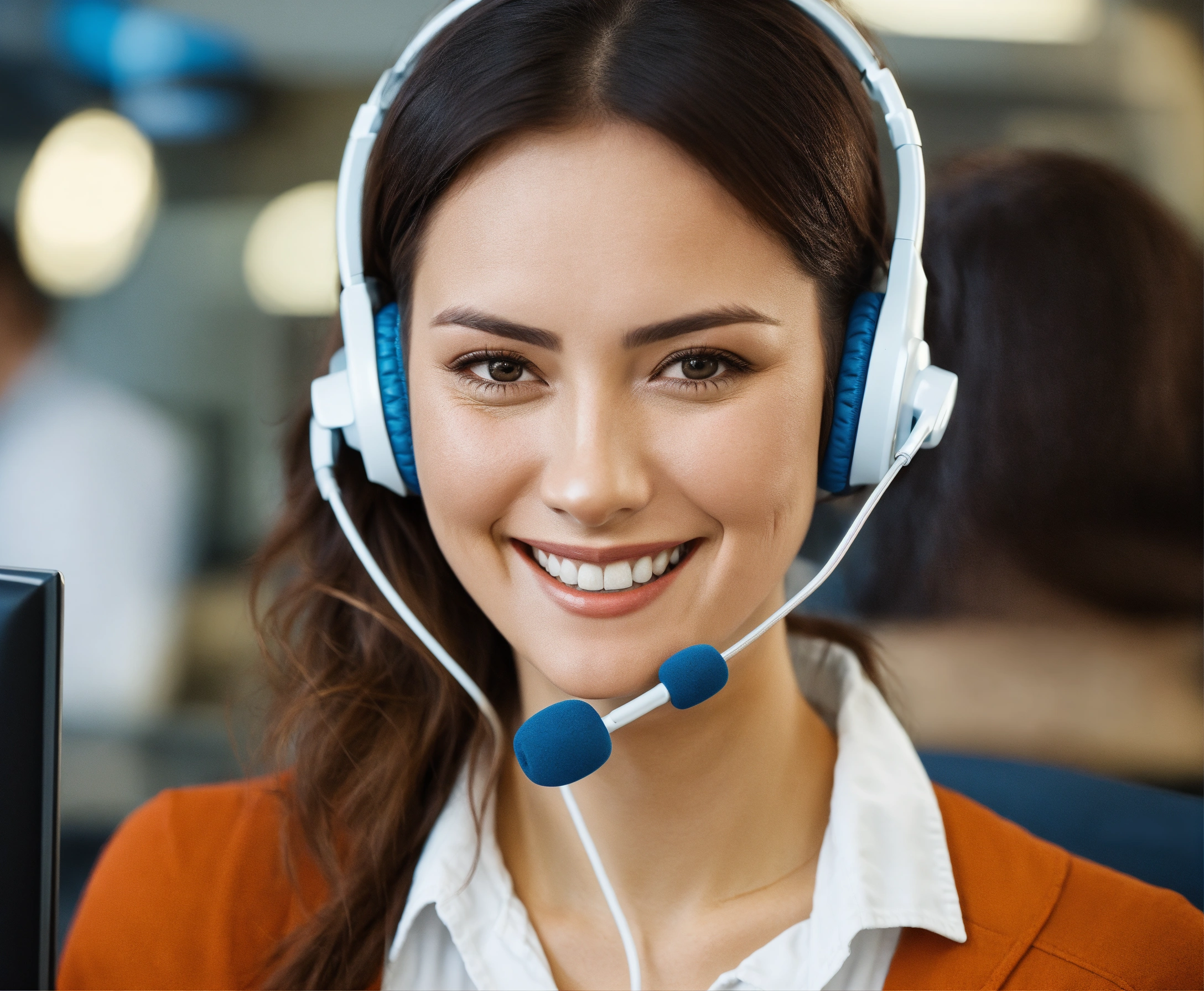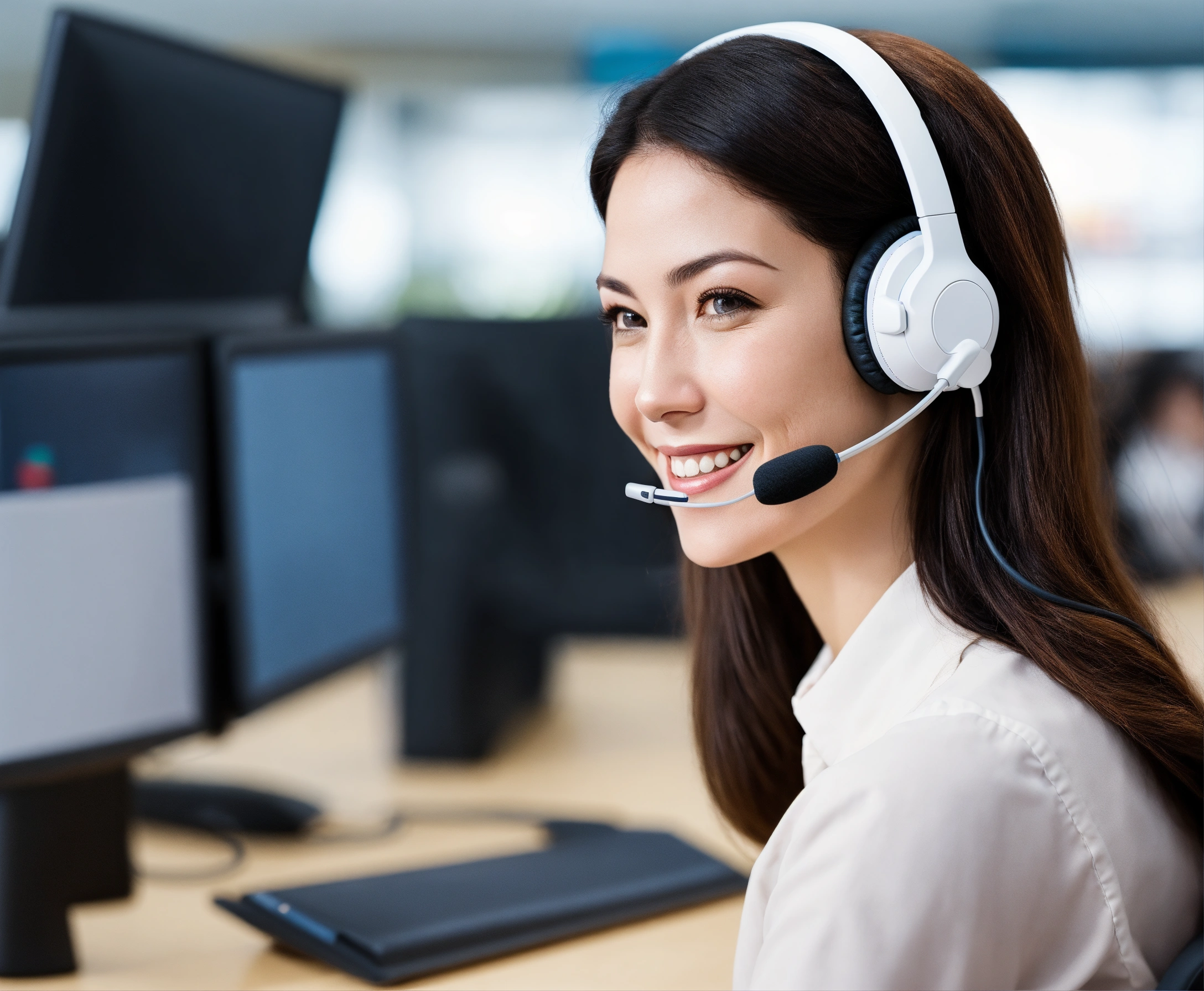Customer service lady smiling wearing headset