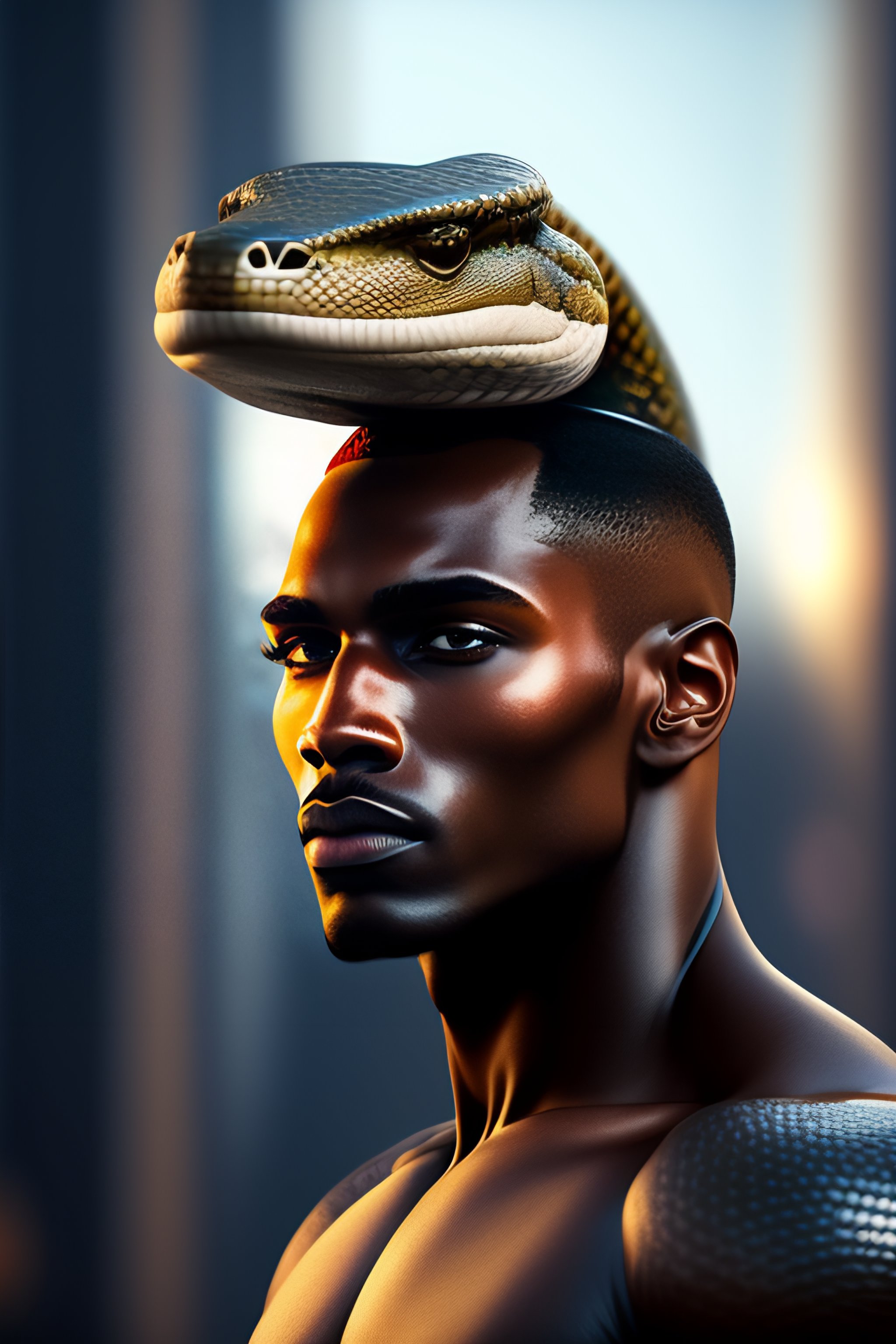A human with a face of a snake
