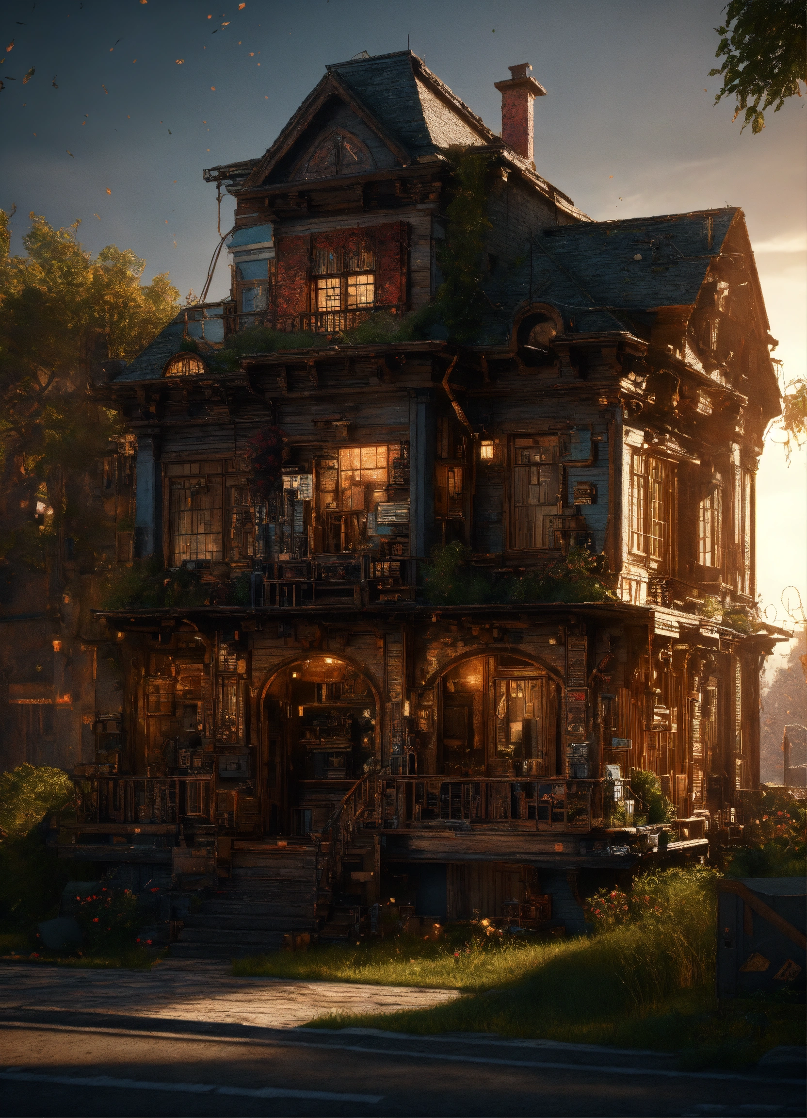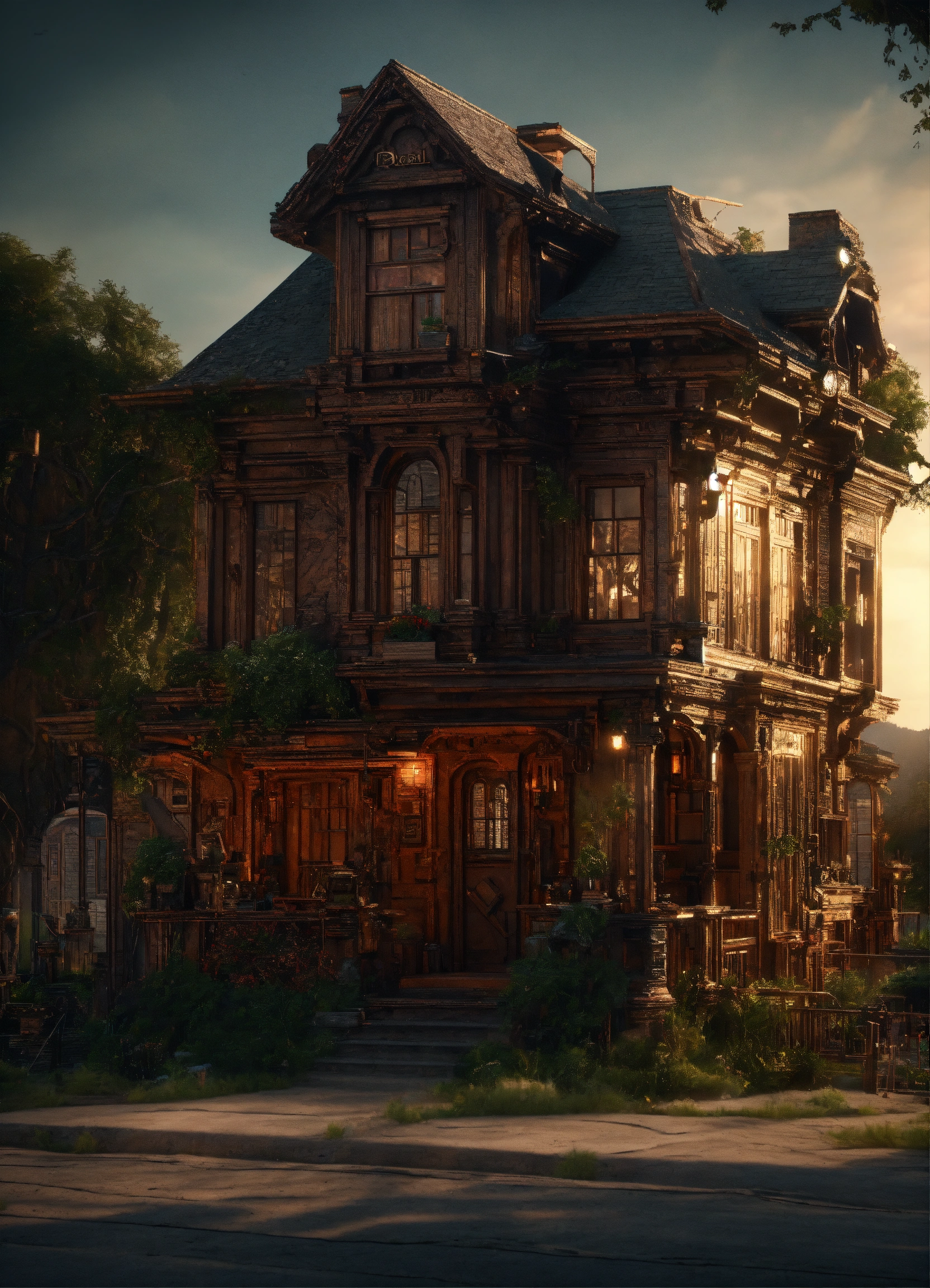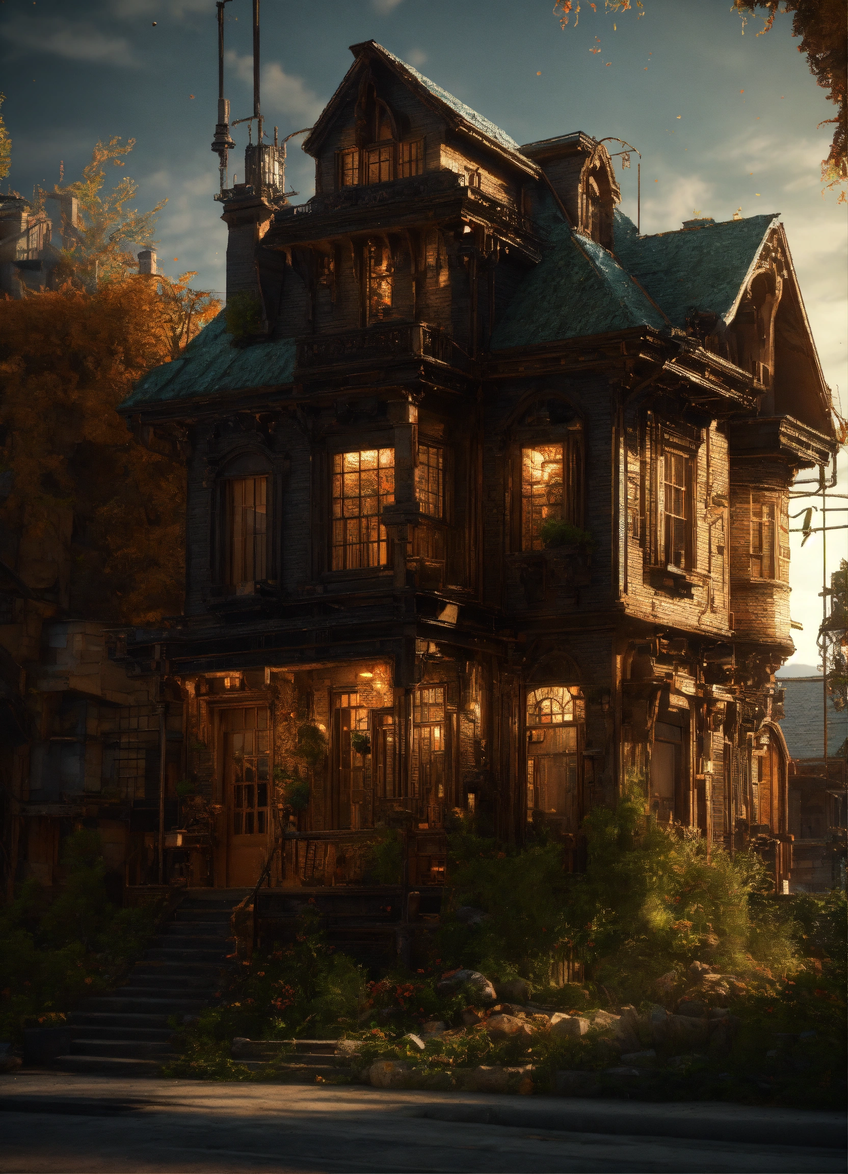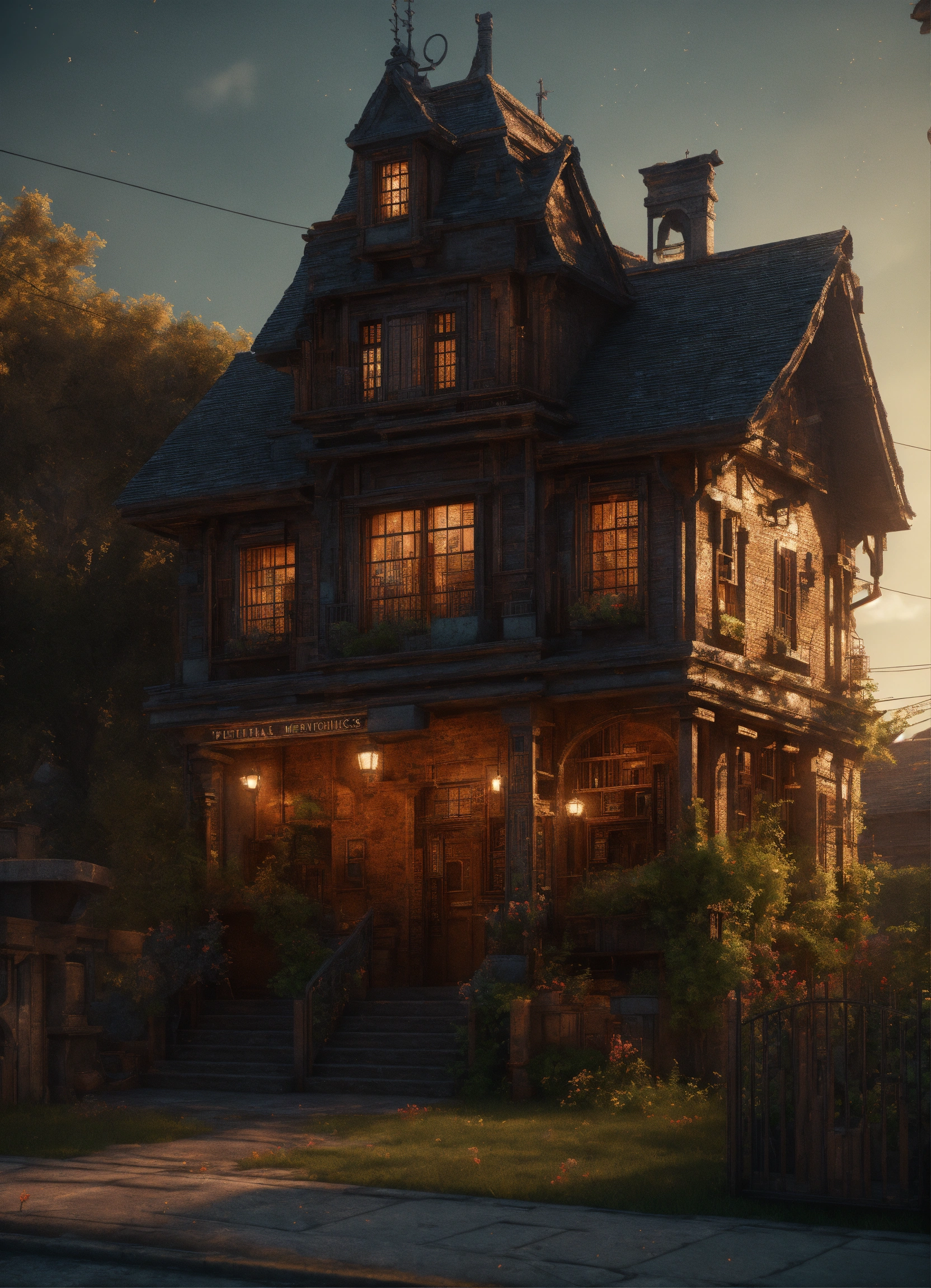 Beautiful mechanics house, high definition hd, high detail, uhd pen and ink art, perfect composition, detailed structure, crazy octane rendering, artstation trends, 8k art photography, photorealism concept art, soft thoughts, 3d cinematography, perfect light, 3d -rendering, famous outstanding typography., 3d render, cinematic, dark fantasy