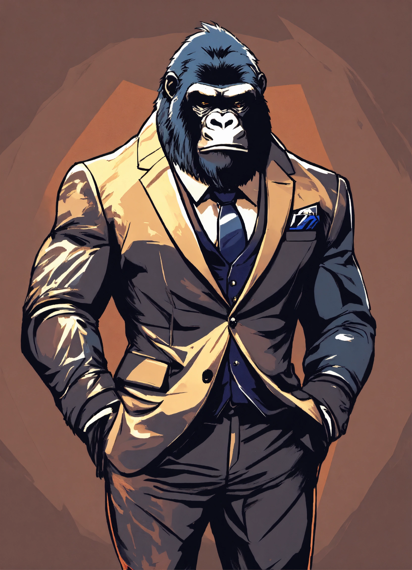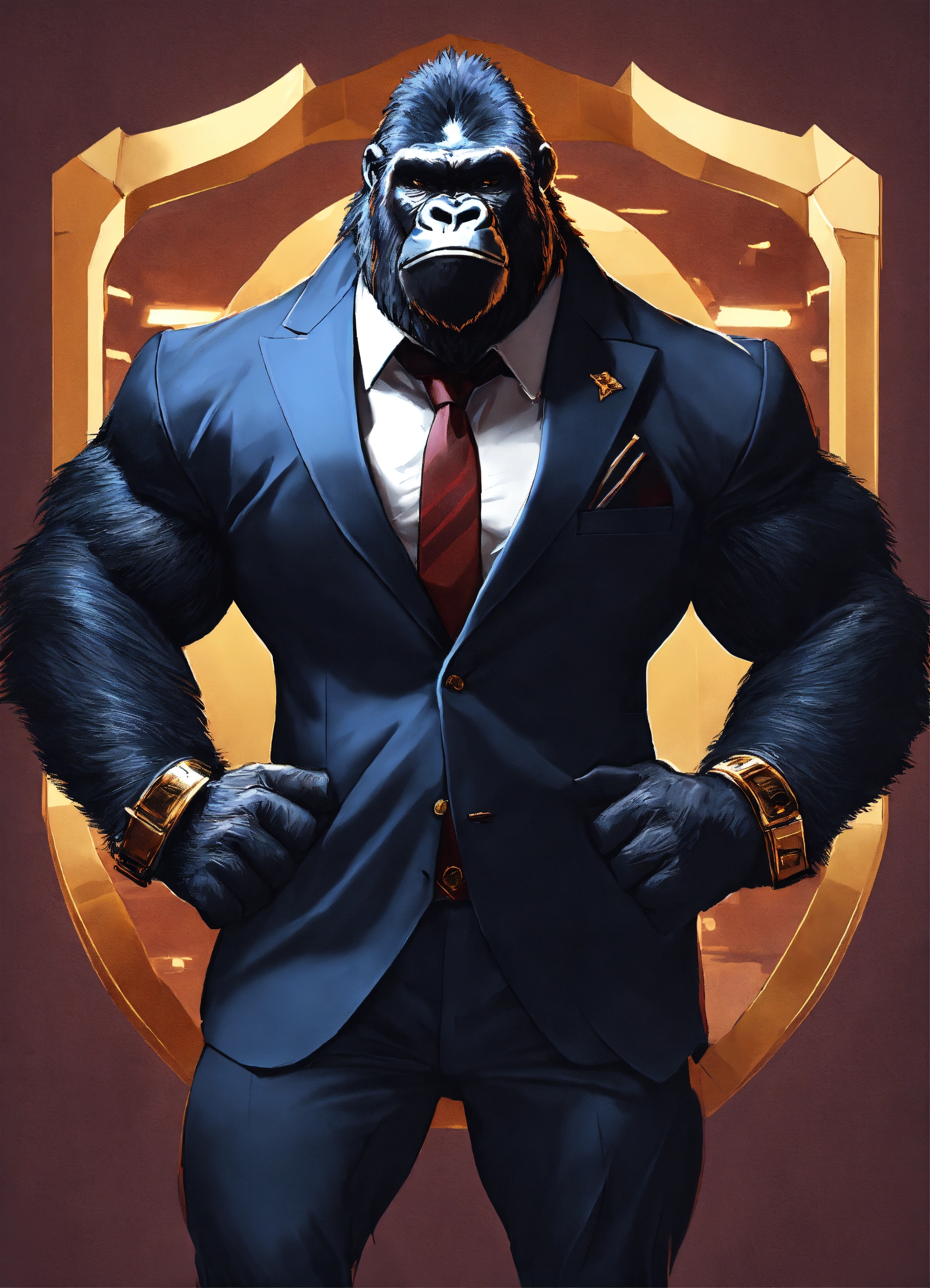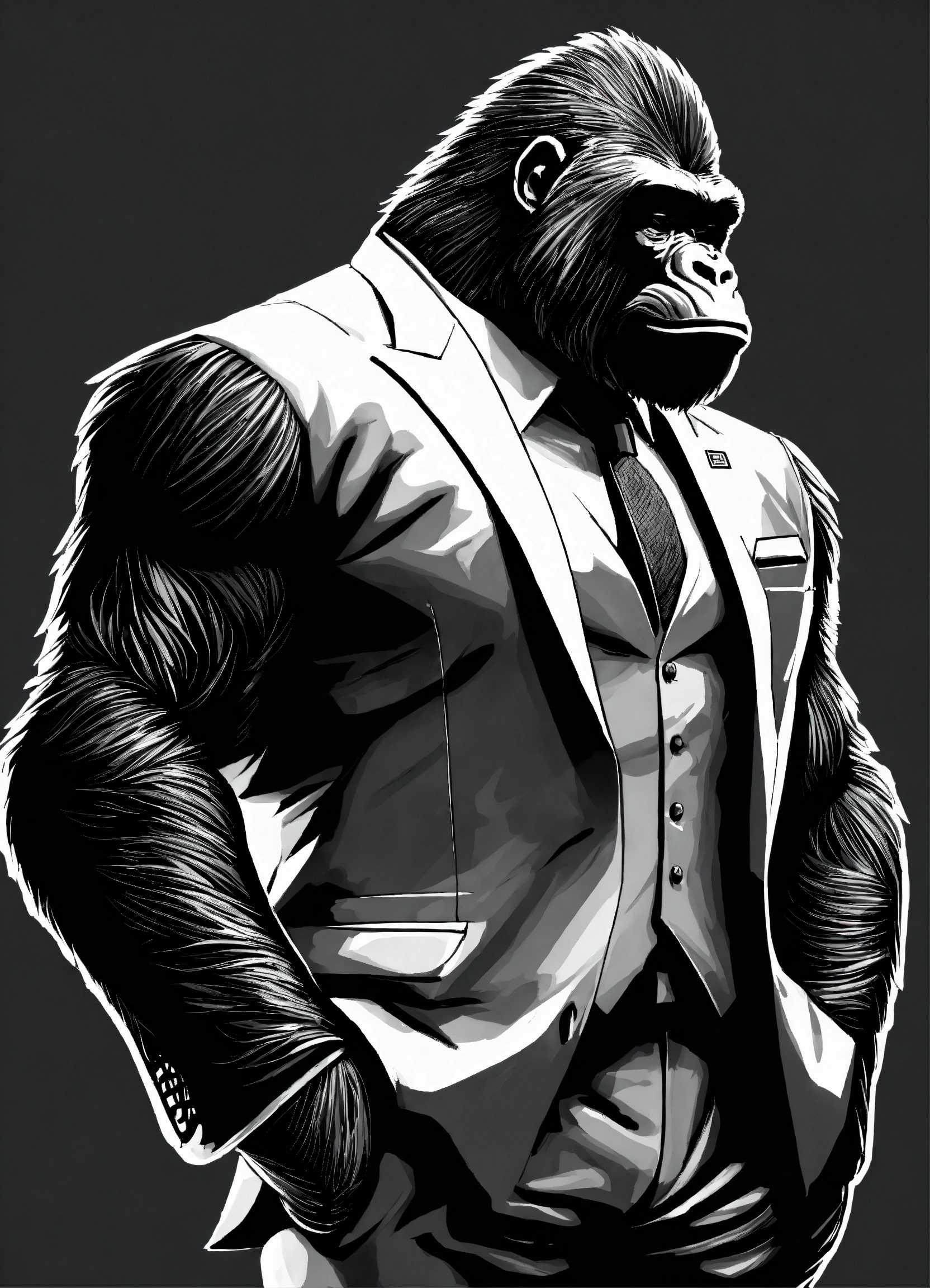a muscular gorilla in a fine suit