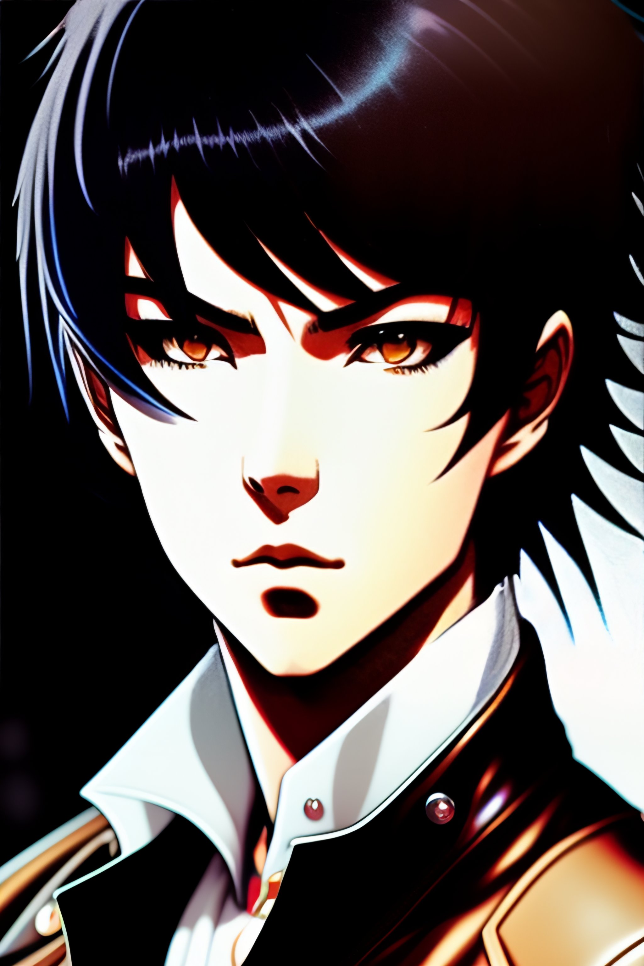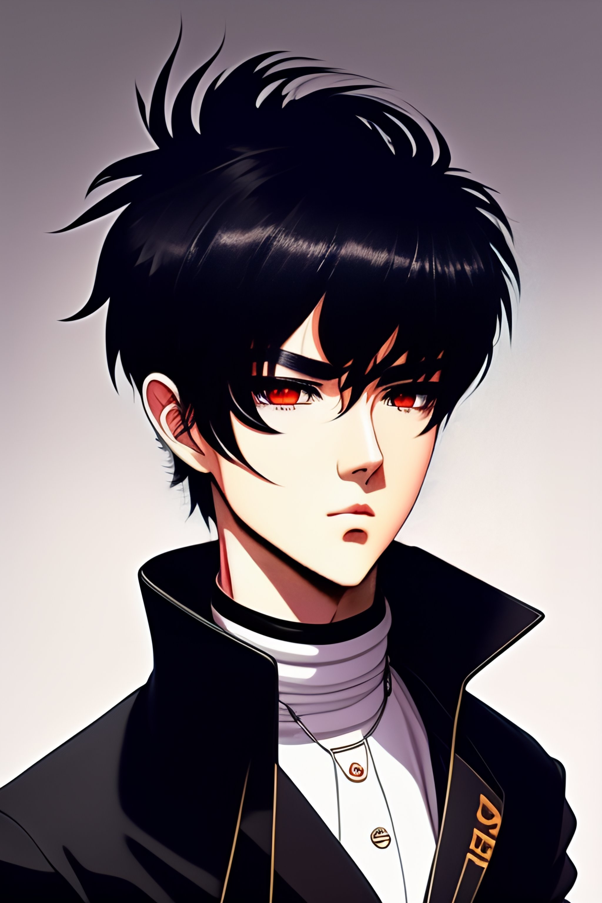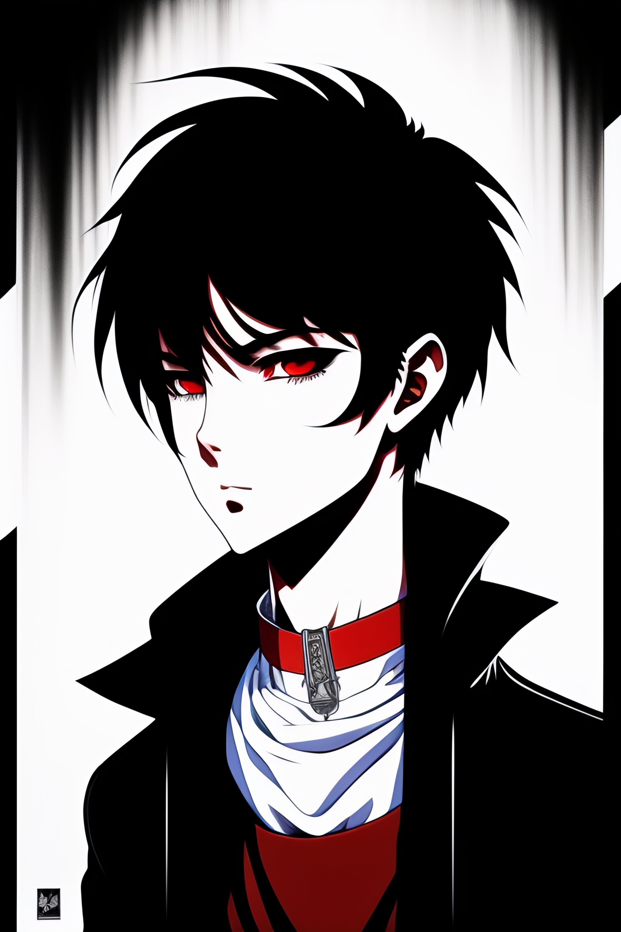 Emo man with medium black hair covering one eye with his fringe in the style of 90's vintage anime, surrealism, akira. anime line art.
