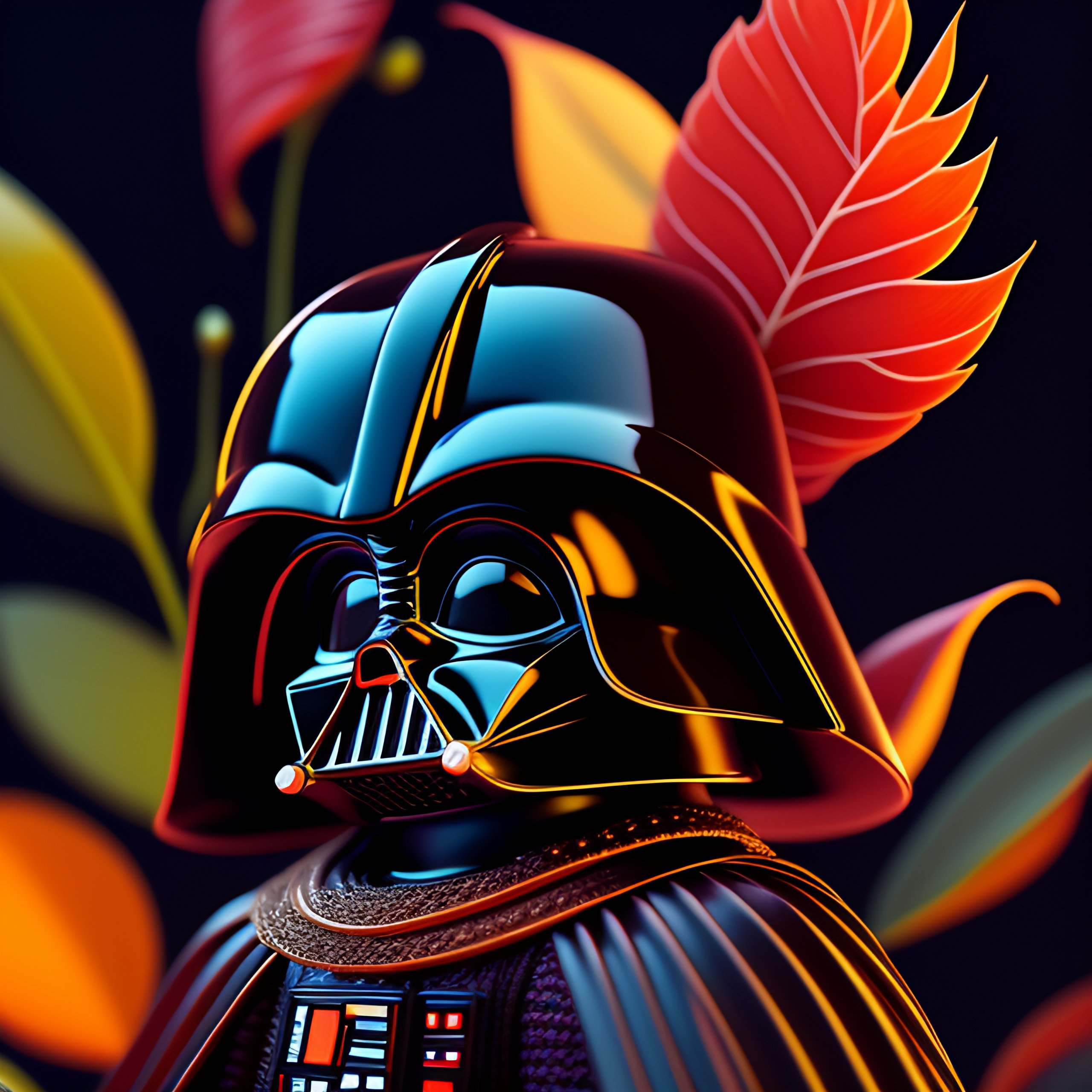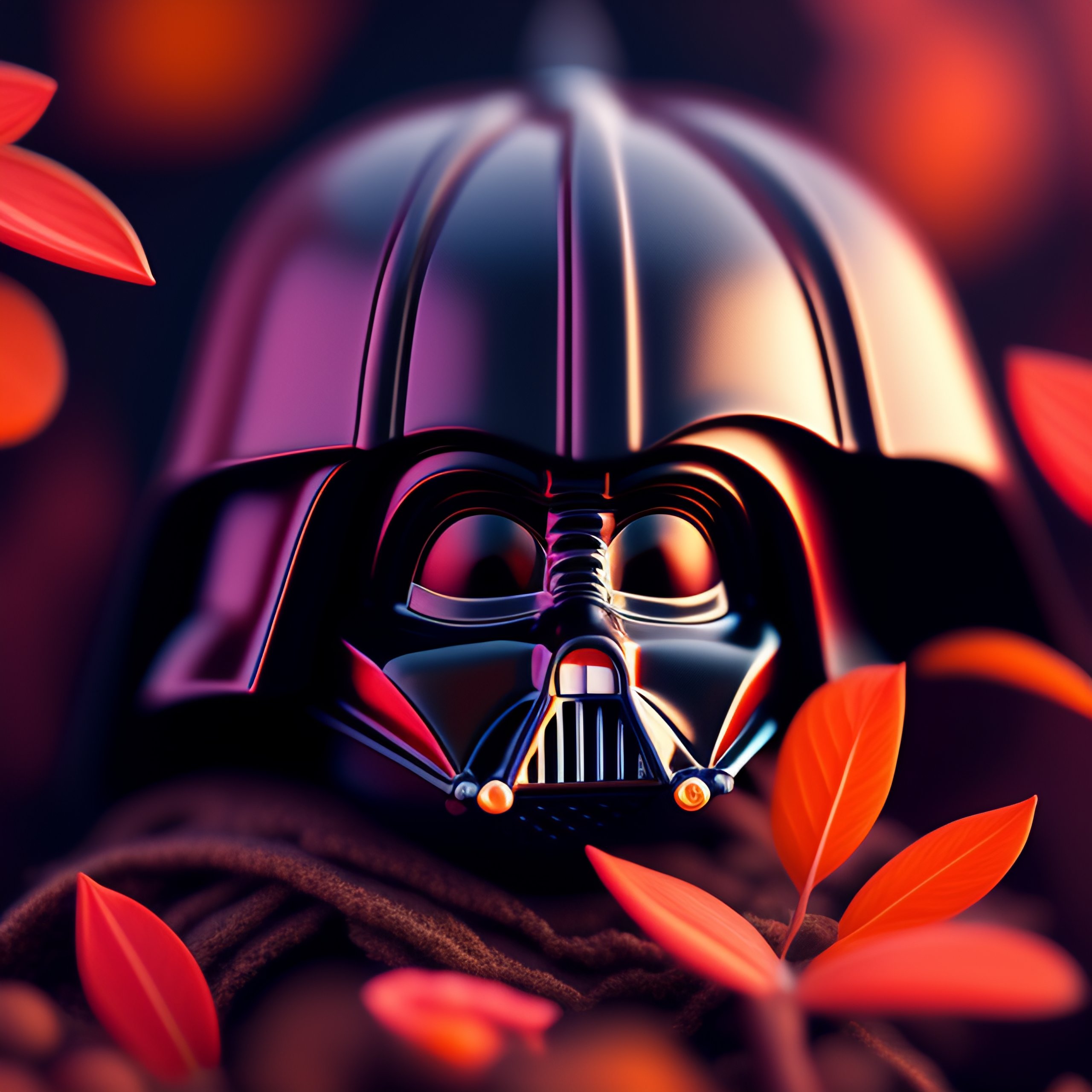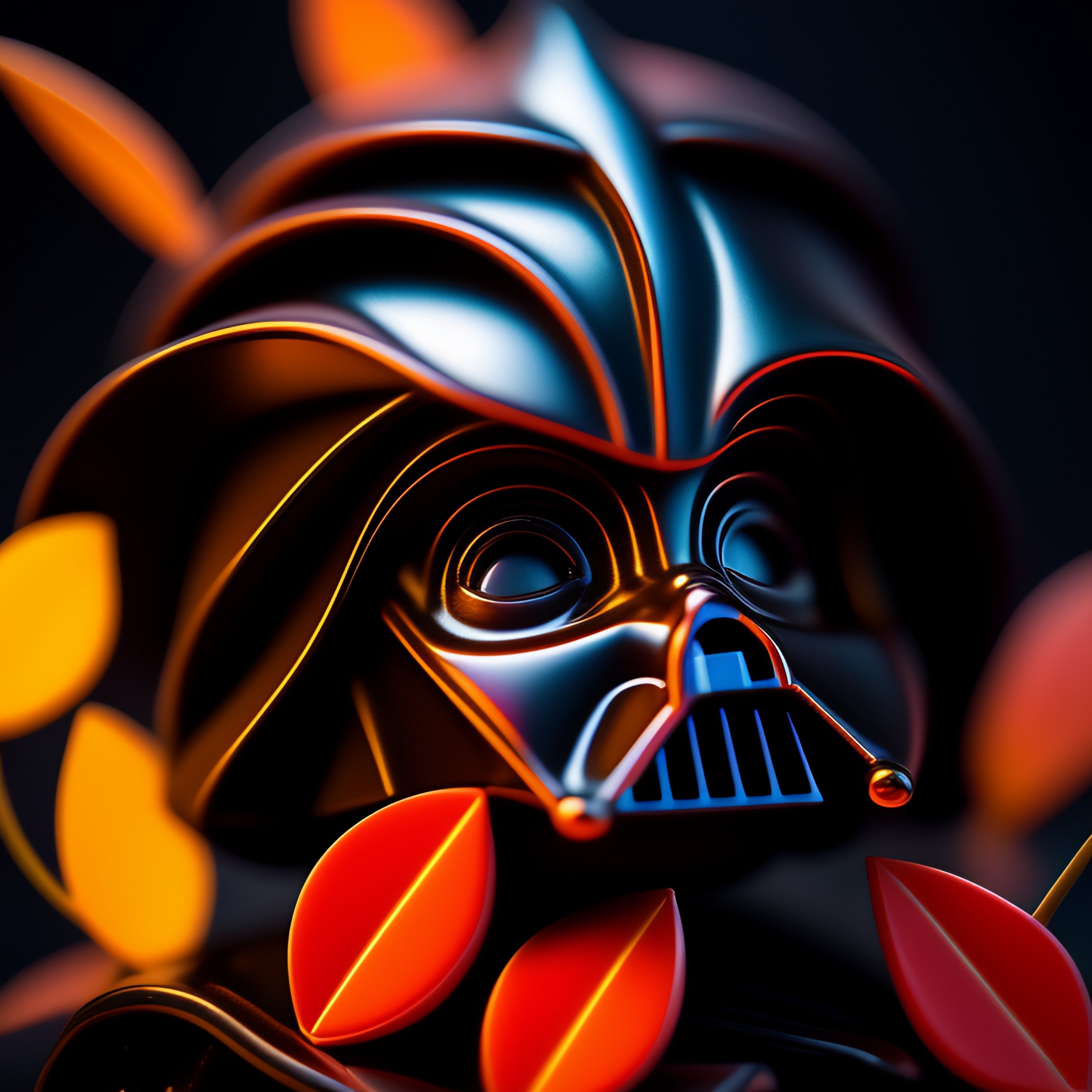 Little darth vader, hd by walter crane and william morris, closeup, twisting leaves, tiny fine flowing lines, abstract psychedelic, 8 k, artstation