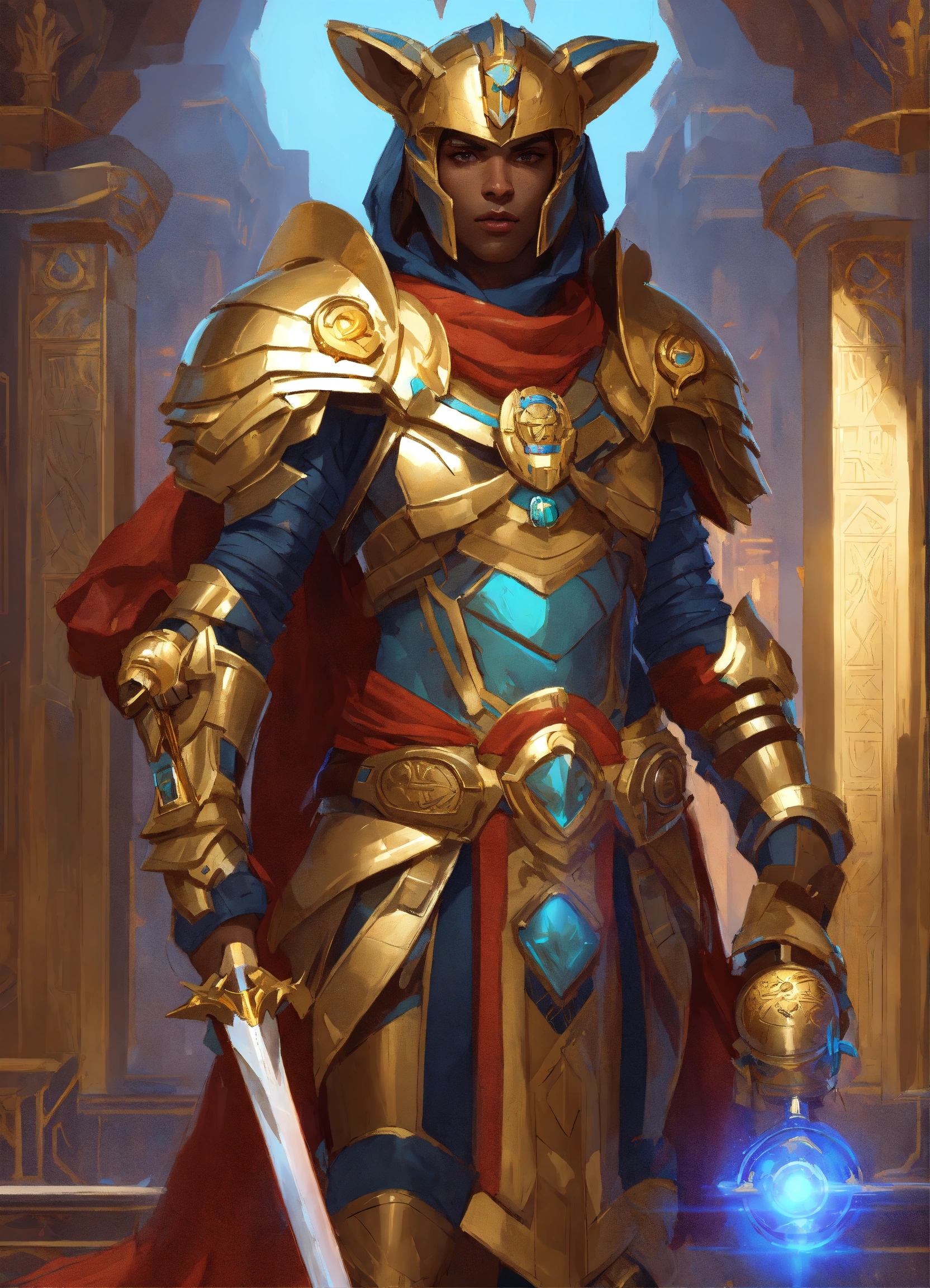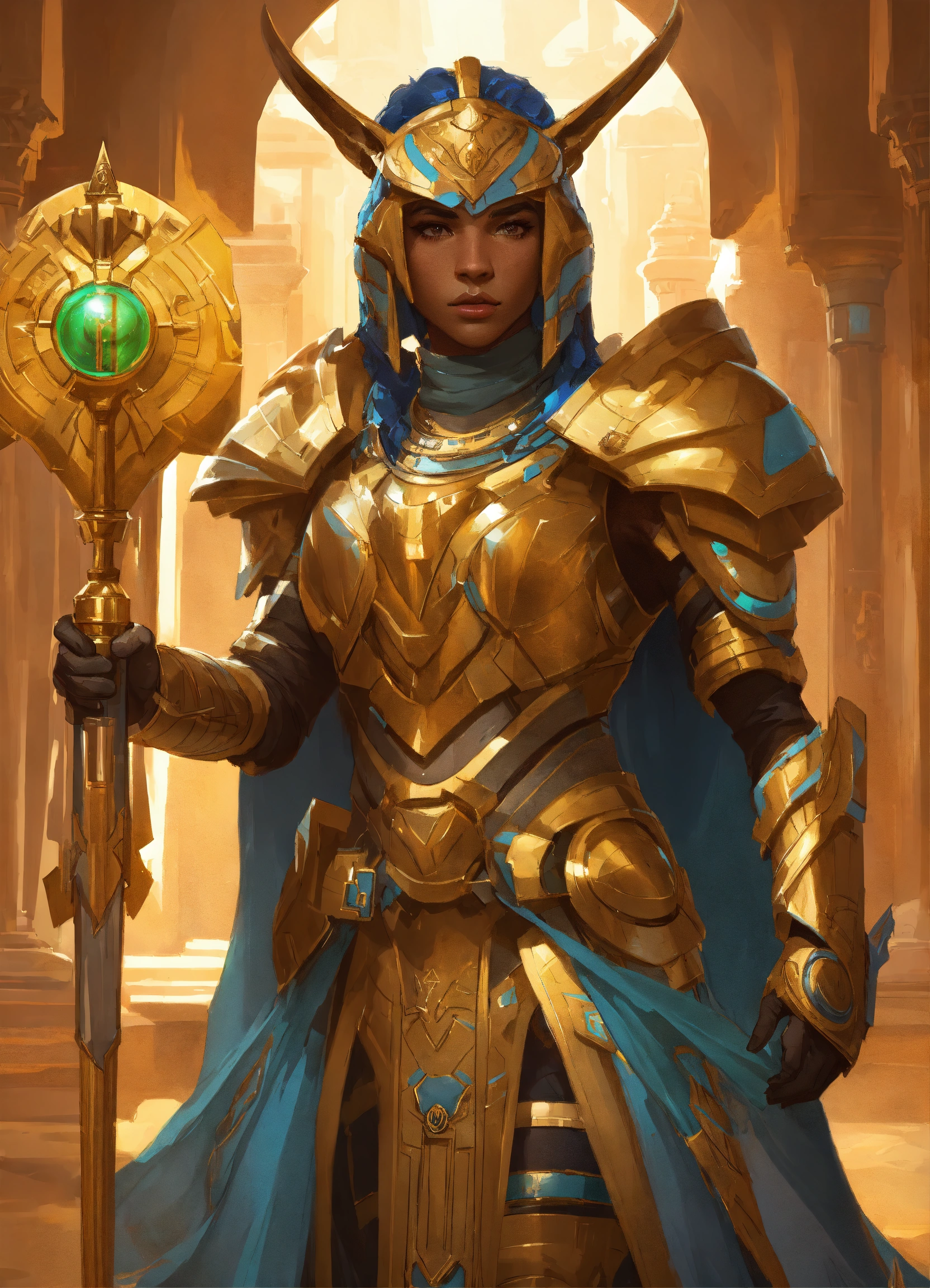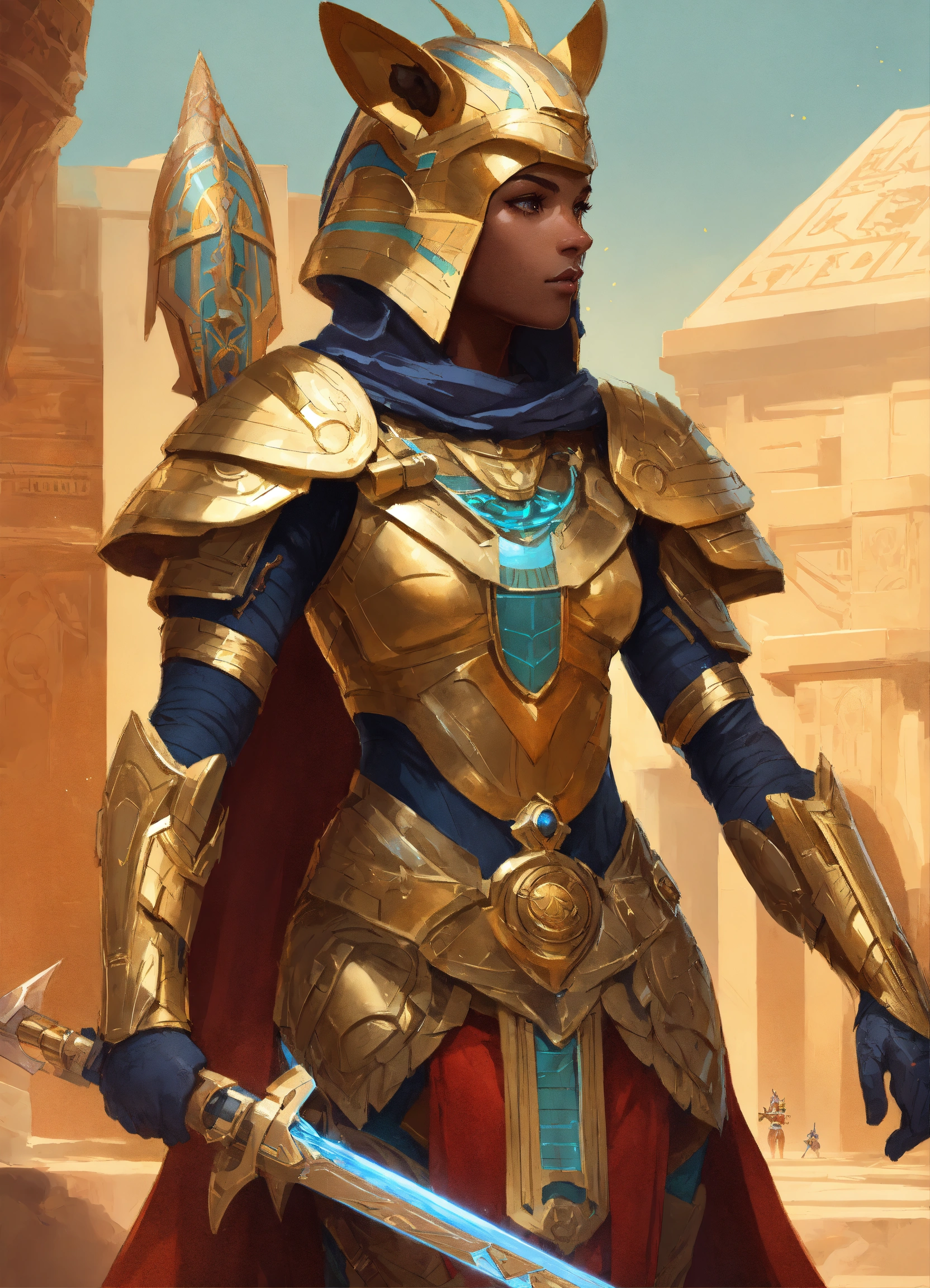 Sci-fi armor wearing anthro pony ethiopian pharaoh, holding a laser khopesh, egyptian, beetle, deep focus, d & d, fantasy, intricate, elegant, highly detailed, digital painting, artstation, concept art, matte, sharp, illustration, hearthstone, art by artgerm and greg rutkowski and alphonse mucha