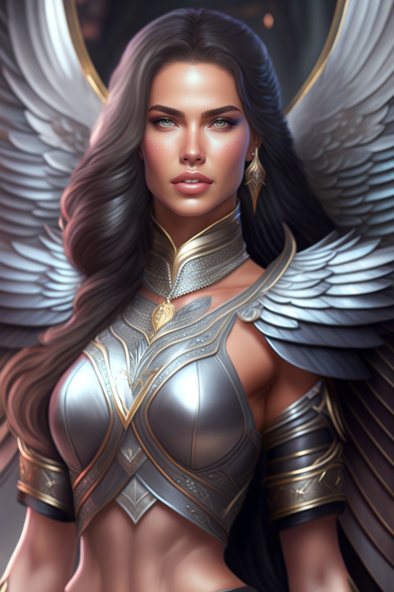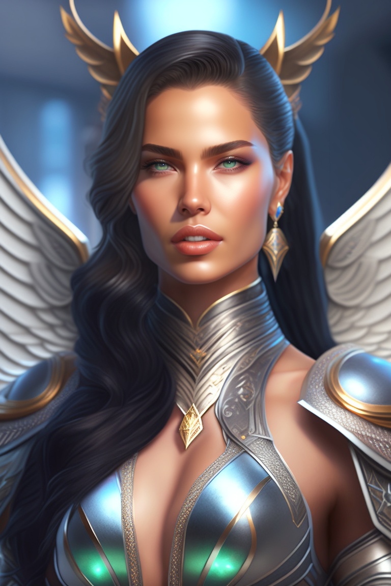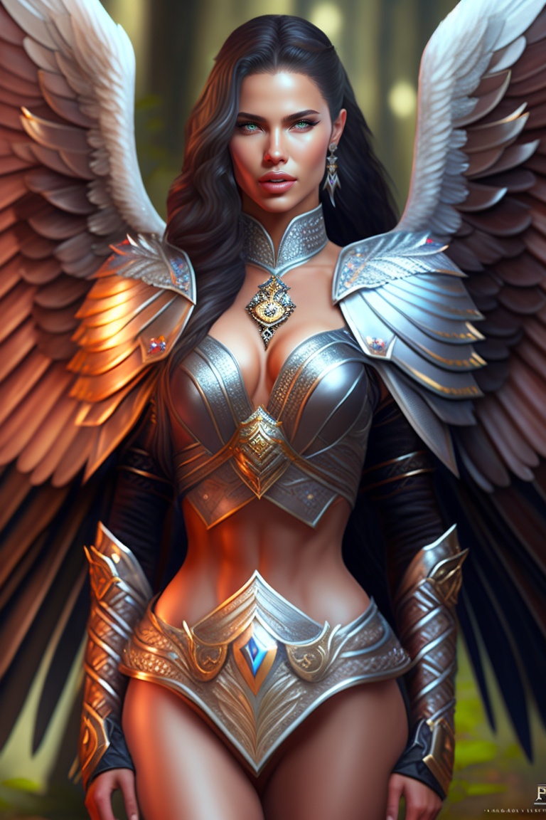 8k render! beautiful adriana lima in skyrim mod angel armor, wings wide opened, whole body heavily covered in elfish tattoos, intricate, elegant, highly detailed, digital painting, artstation, wallpaper!, concept art, smooth, sharp focus, high fantasy illustration, art by artgerm and vasylina, and peter andrew jones