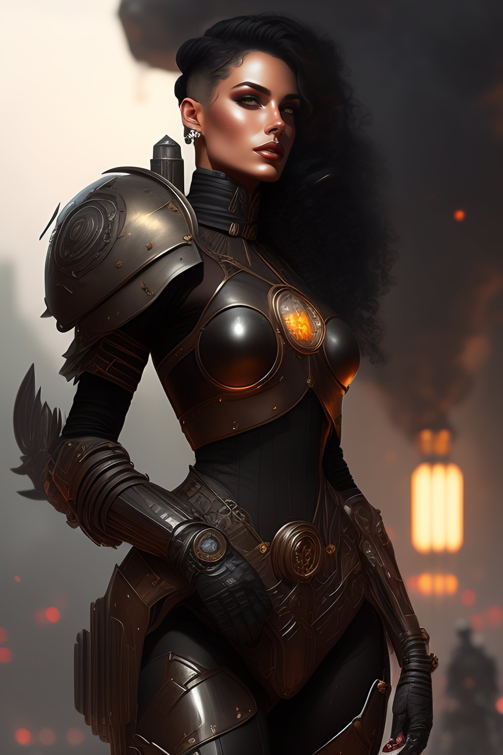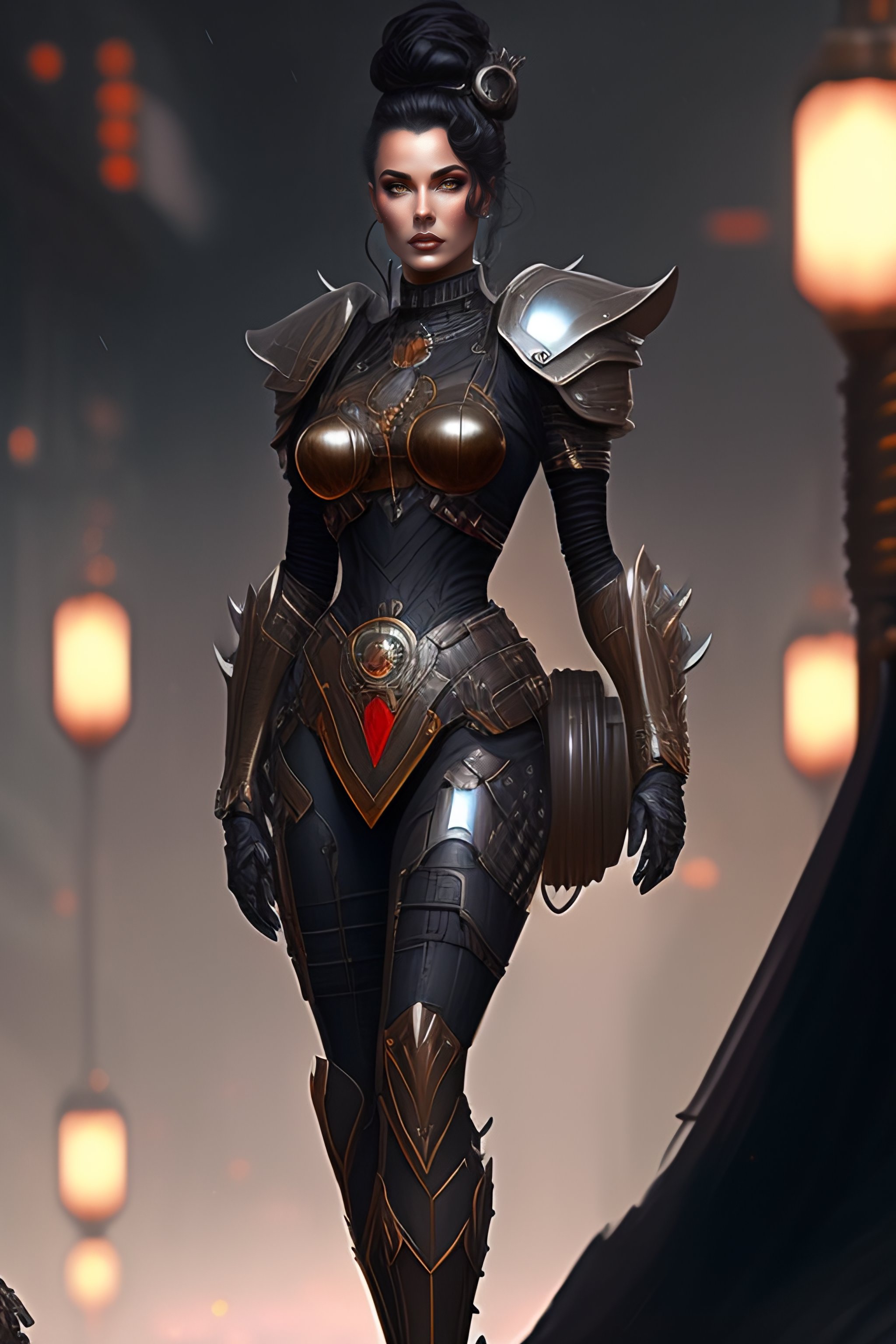 Woman dark cyborg tesla steampunk, armored iron harvest robots military german, mechanicals legs, dark black color, full body shot, d&d, fantasy, intricate, elegant, highly detailed, digital painting, artstation, concept art, matte, sharp focus, illustration, elegant, art by greg rutkowski