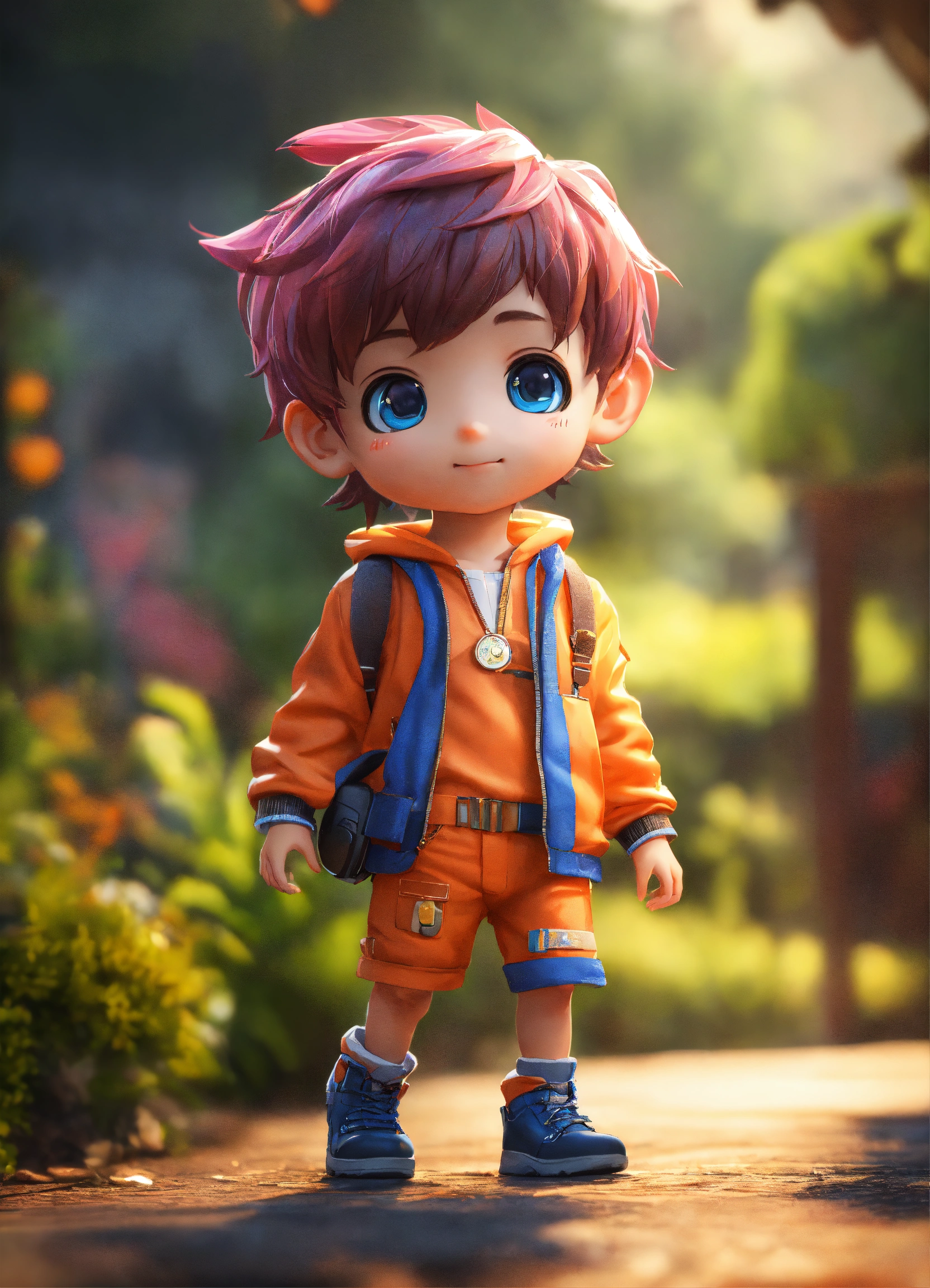 4d photographic image of full body image of a cute little chibi boy realistic, vivid colors octane render trending on artstation, artistic photography, photorealistic concept art, soft natural volumetric cinematic perfect light, uhd no background