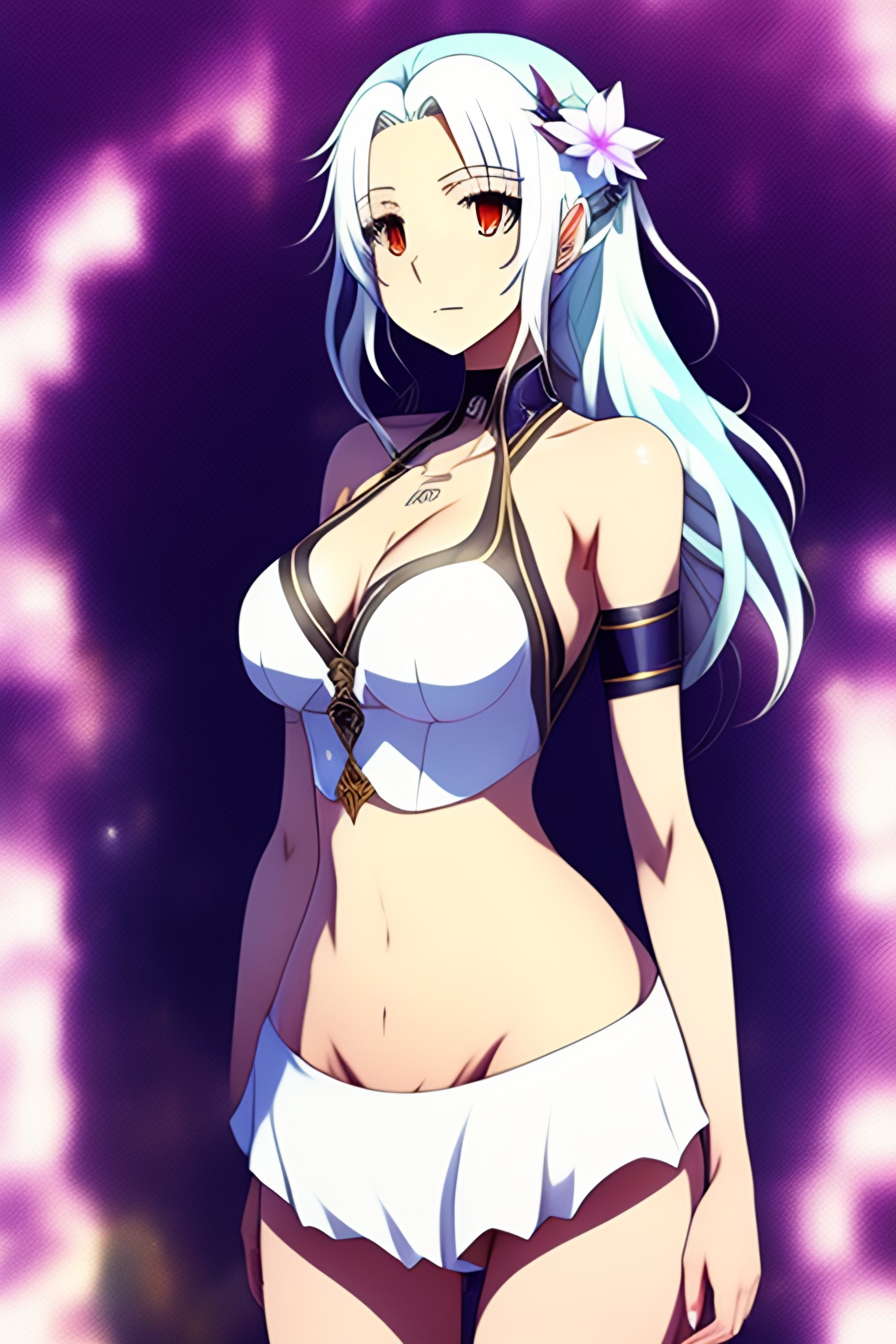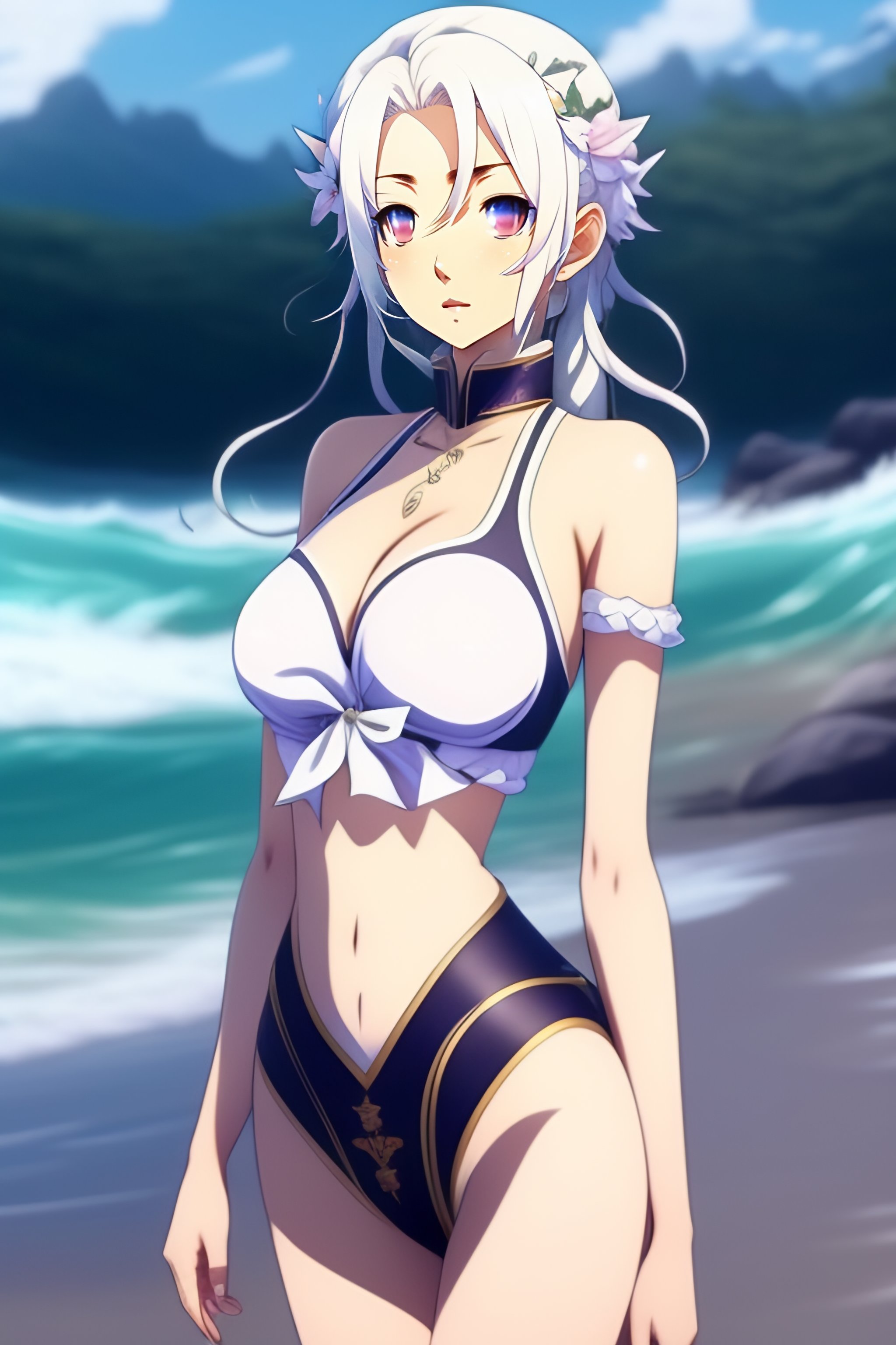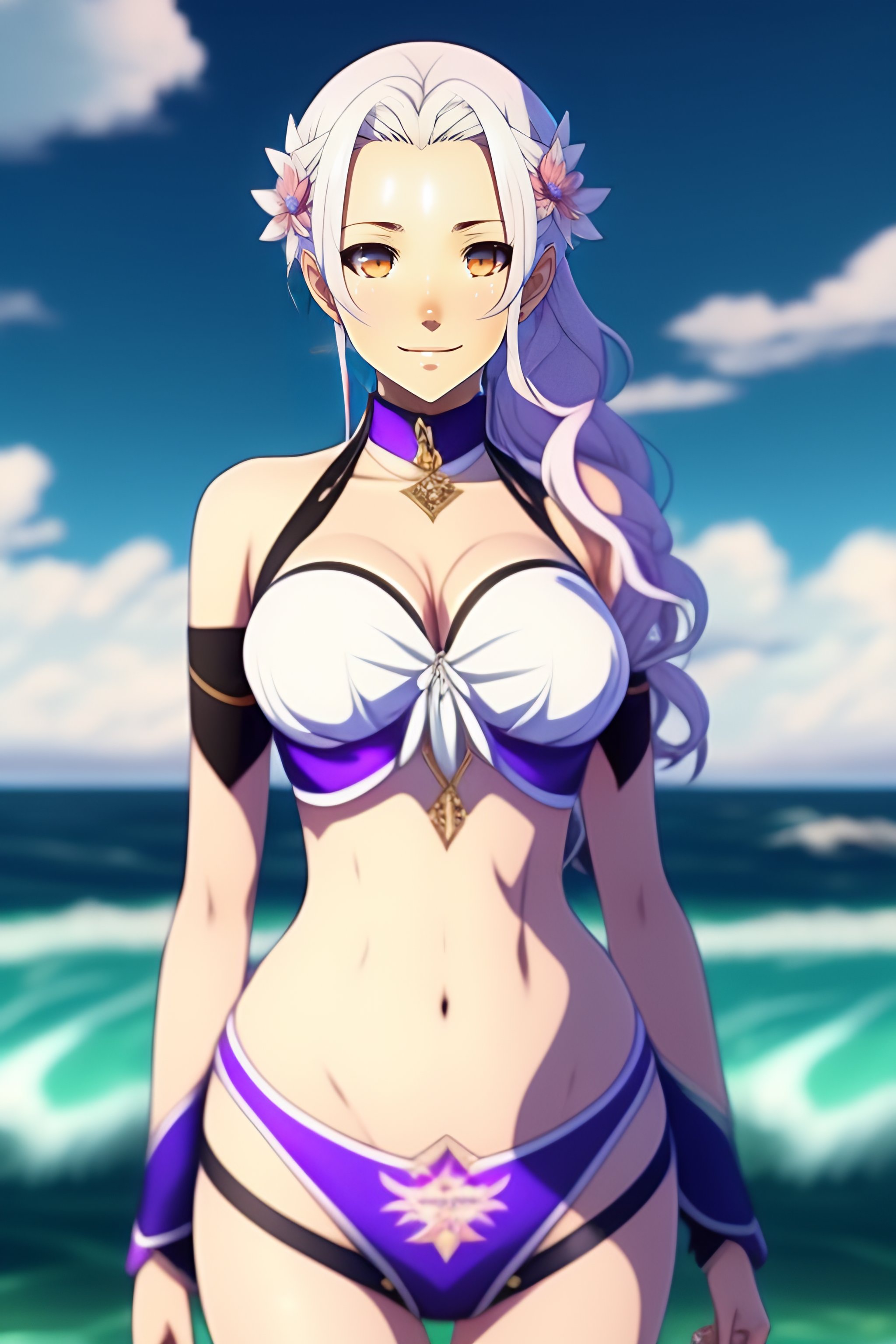 Full body of emilia of re:zero wearing swimming suit white hair anime style
