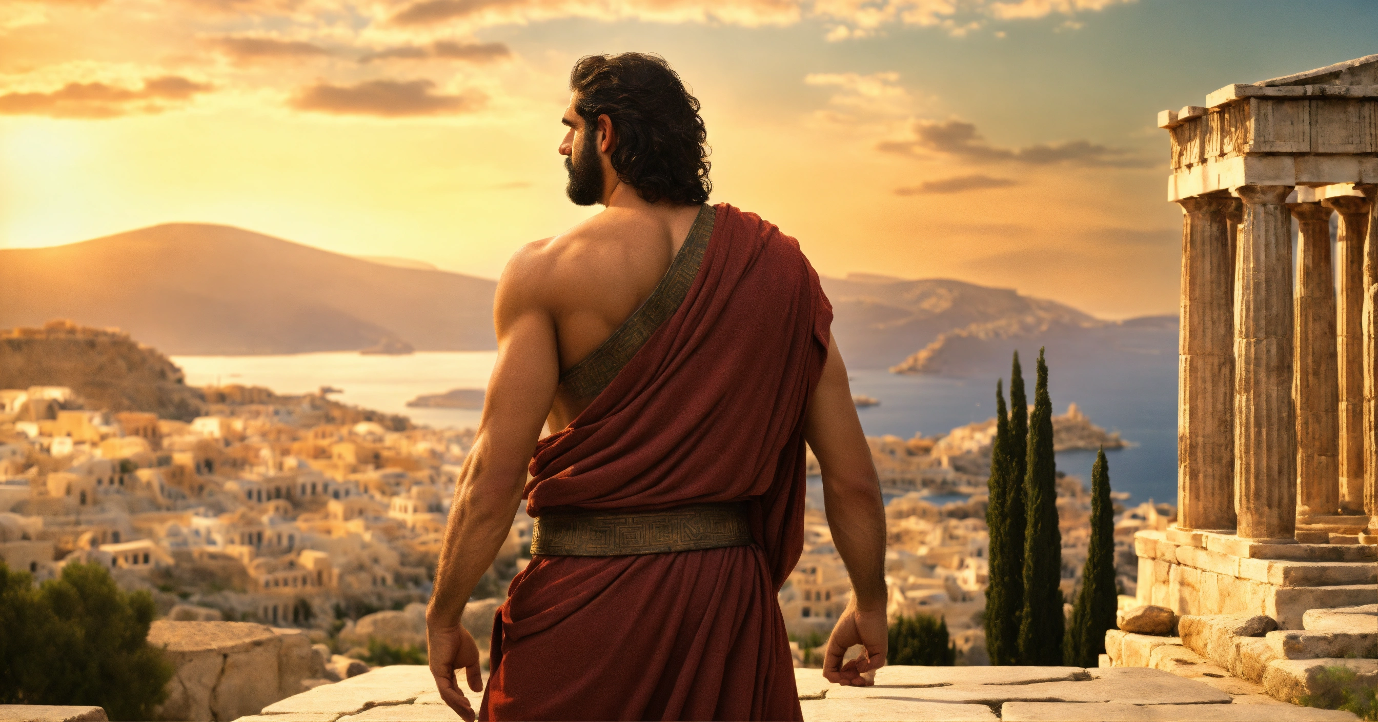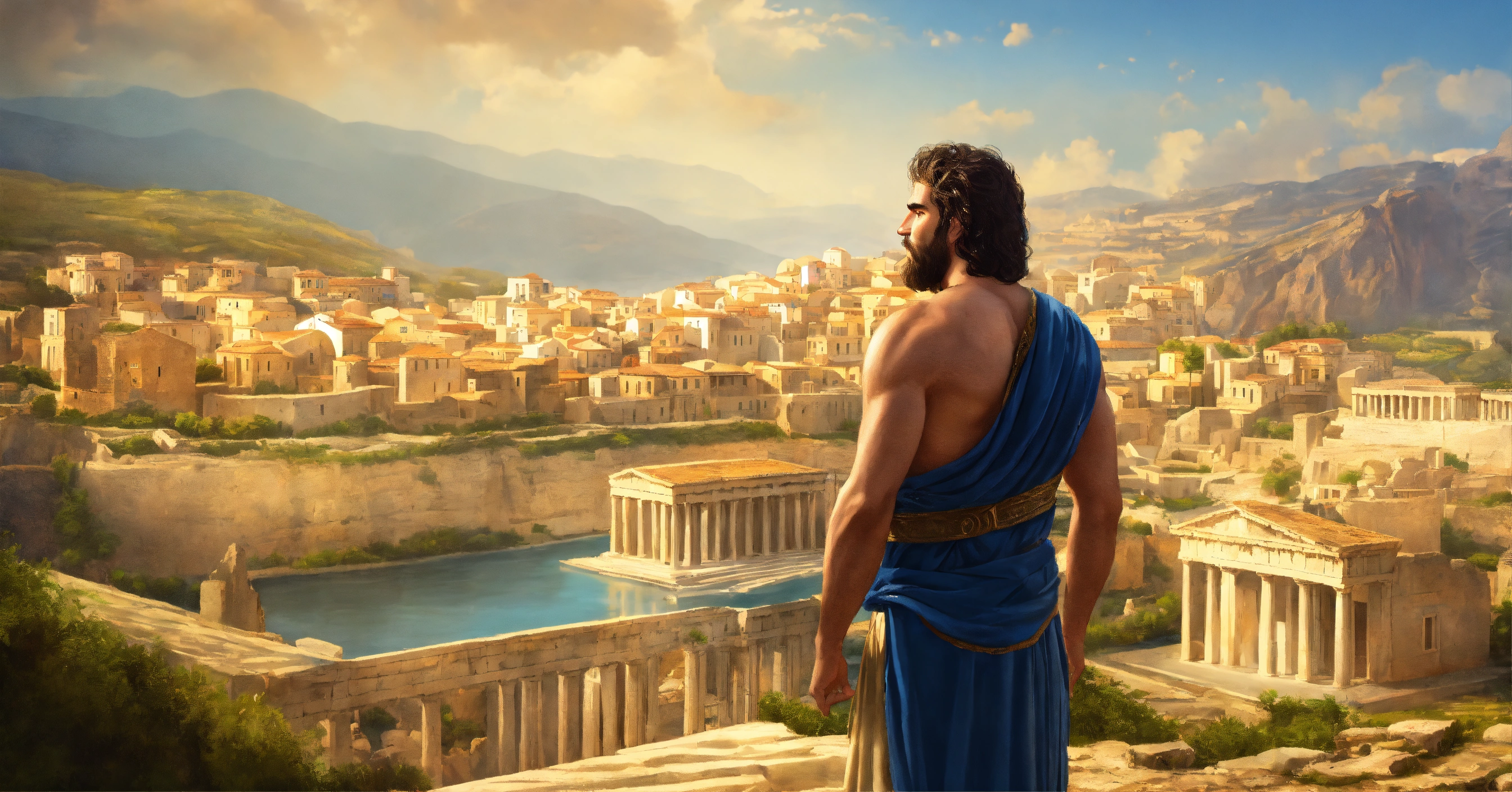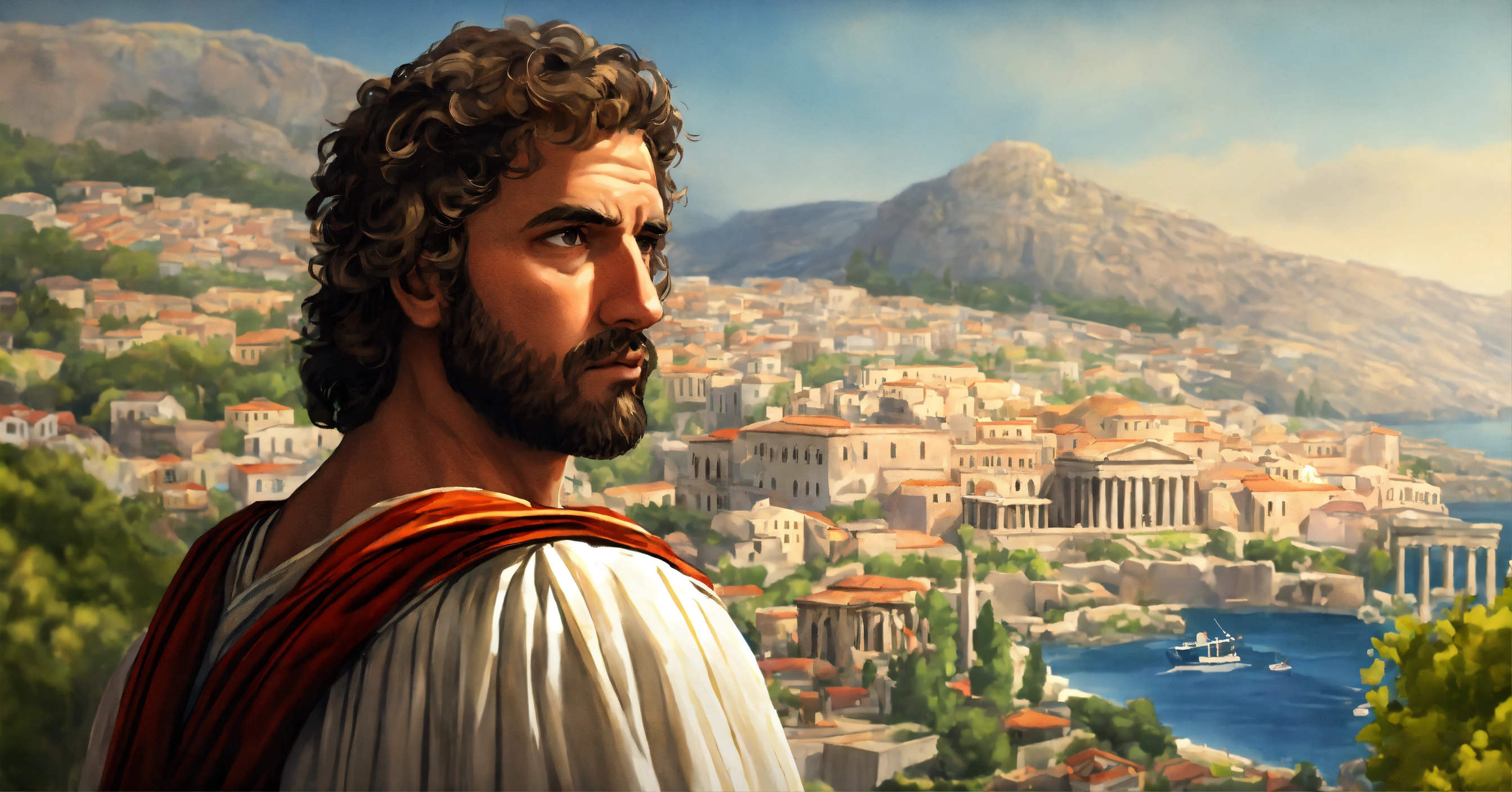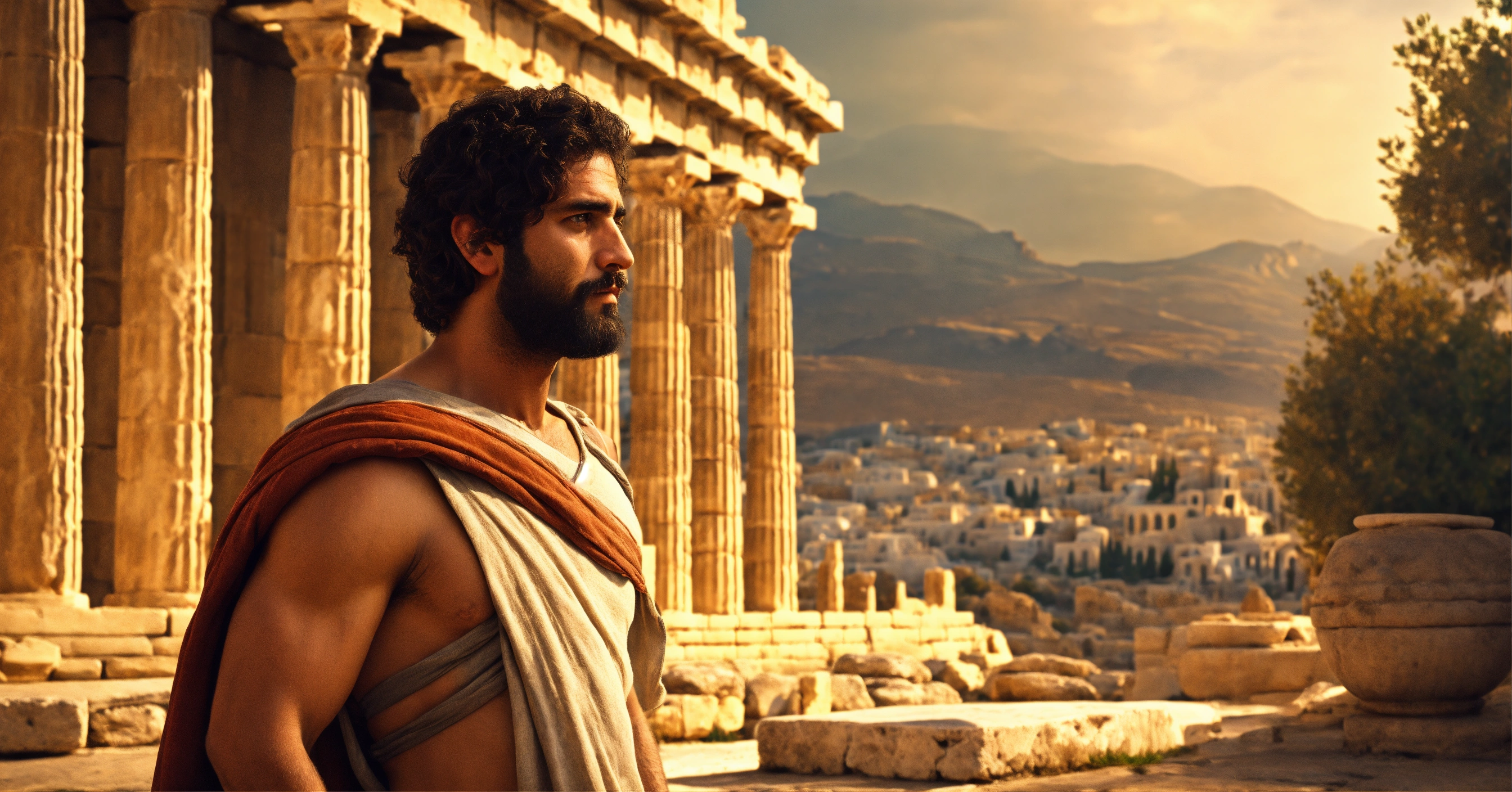 Greek man, shrugging his shoulders, doesn't understand, confused, realistic, well done, ancient greece in the background, 169, 8k