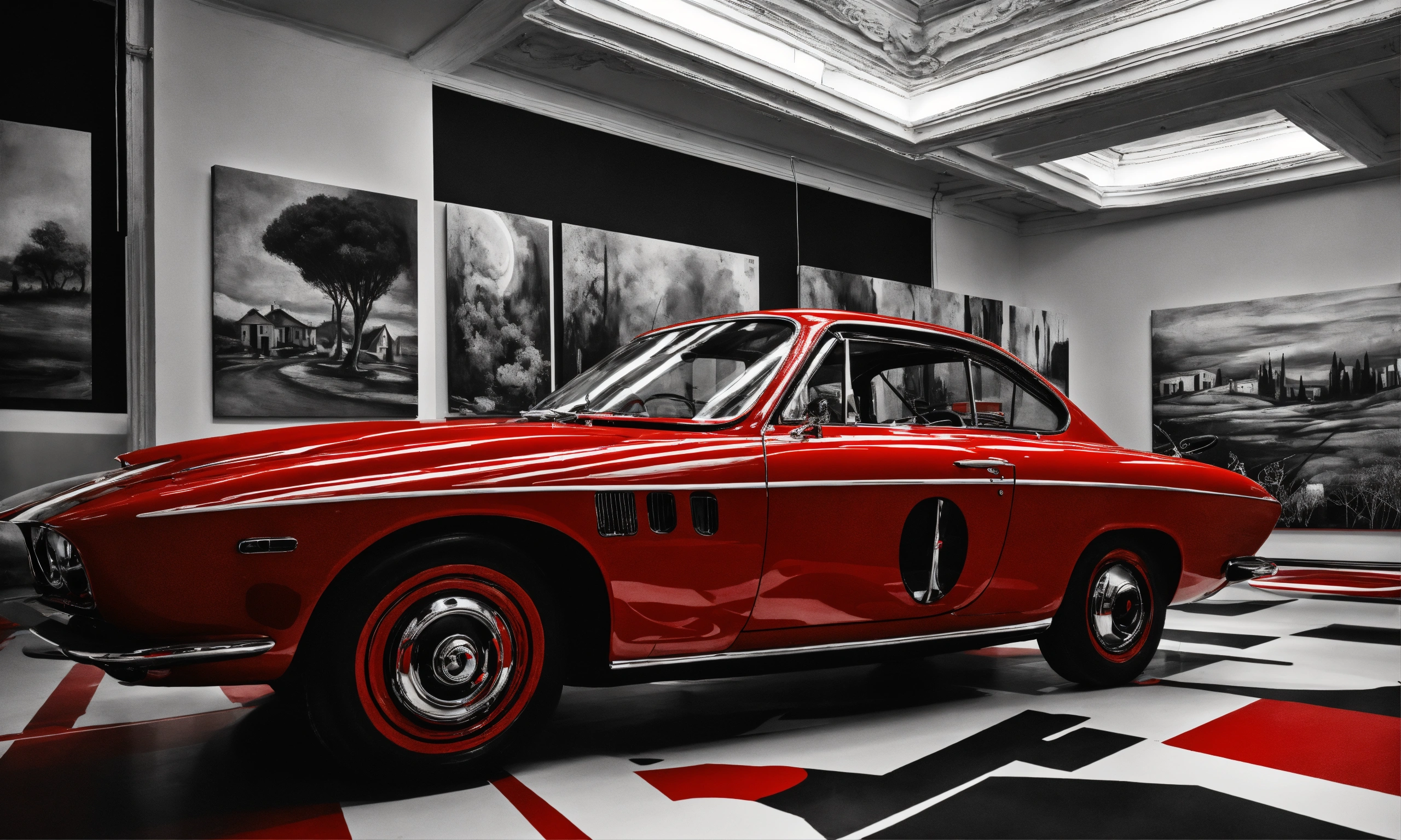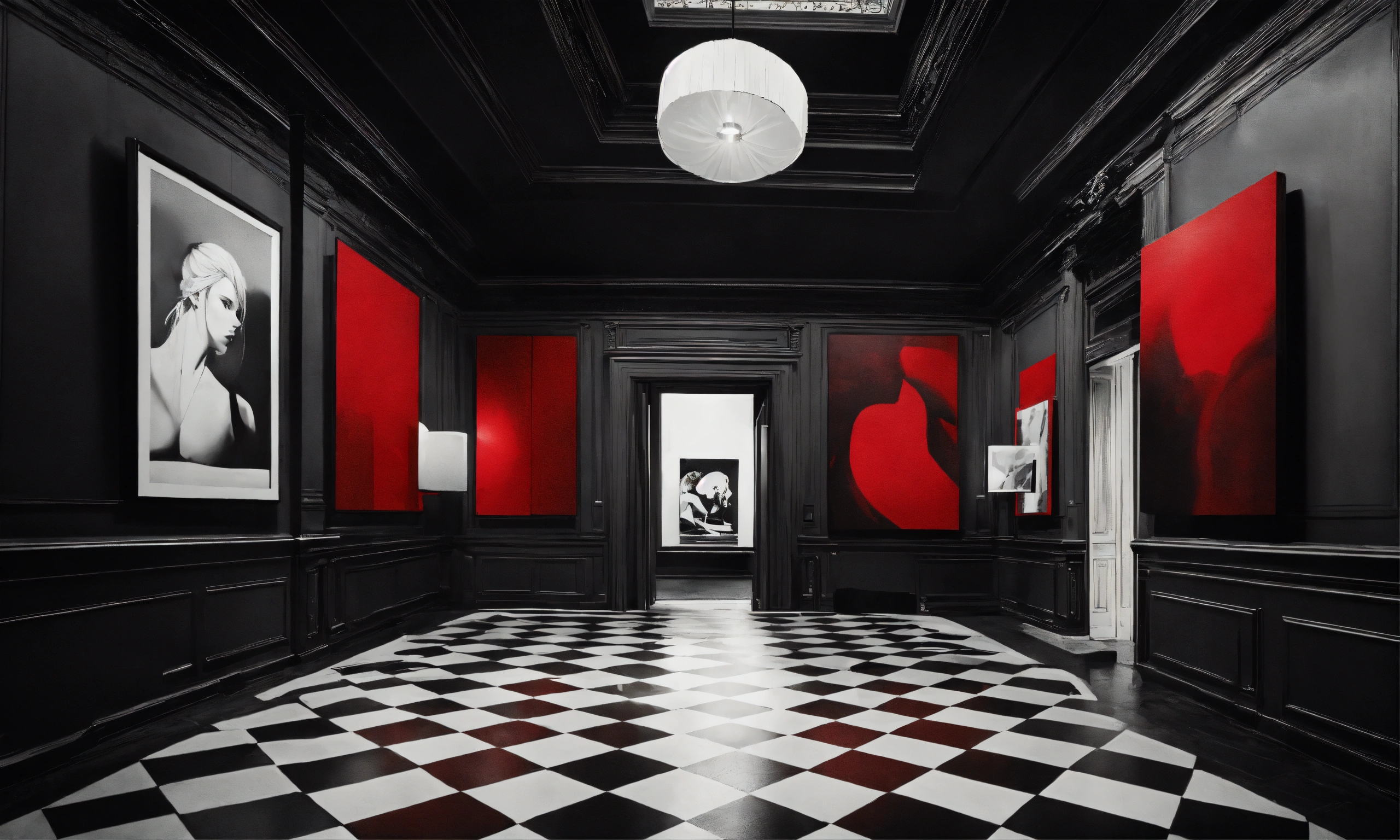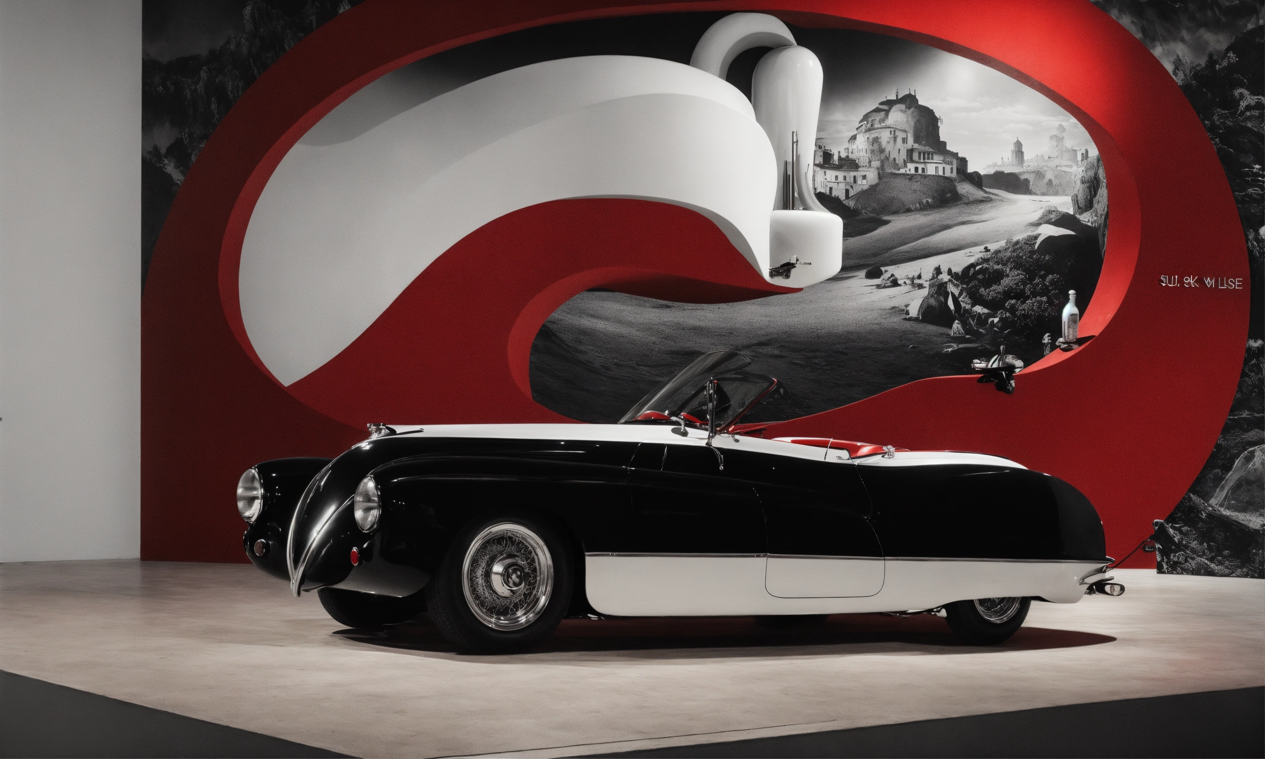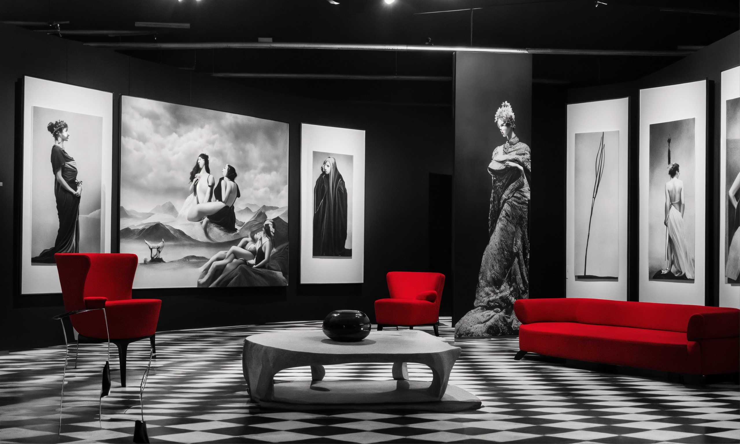 Italian surrealistic elegance black white red art exhibition