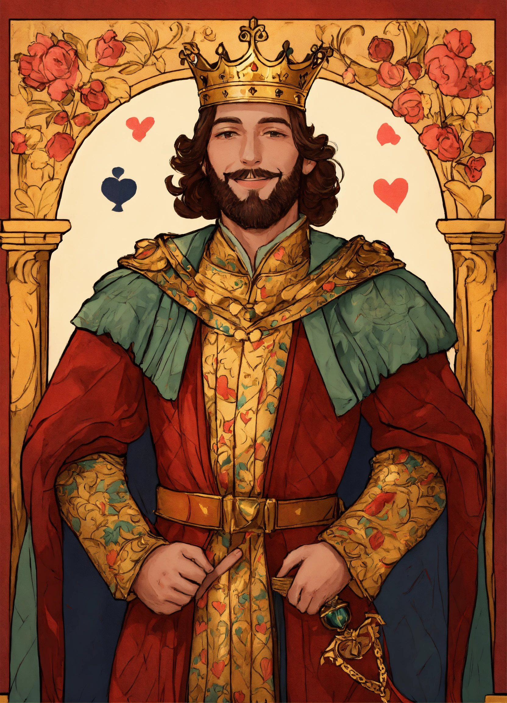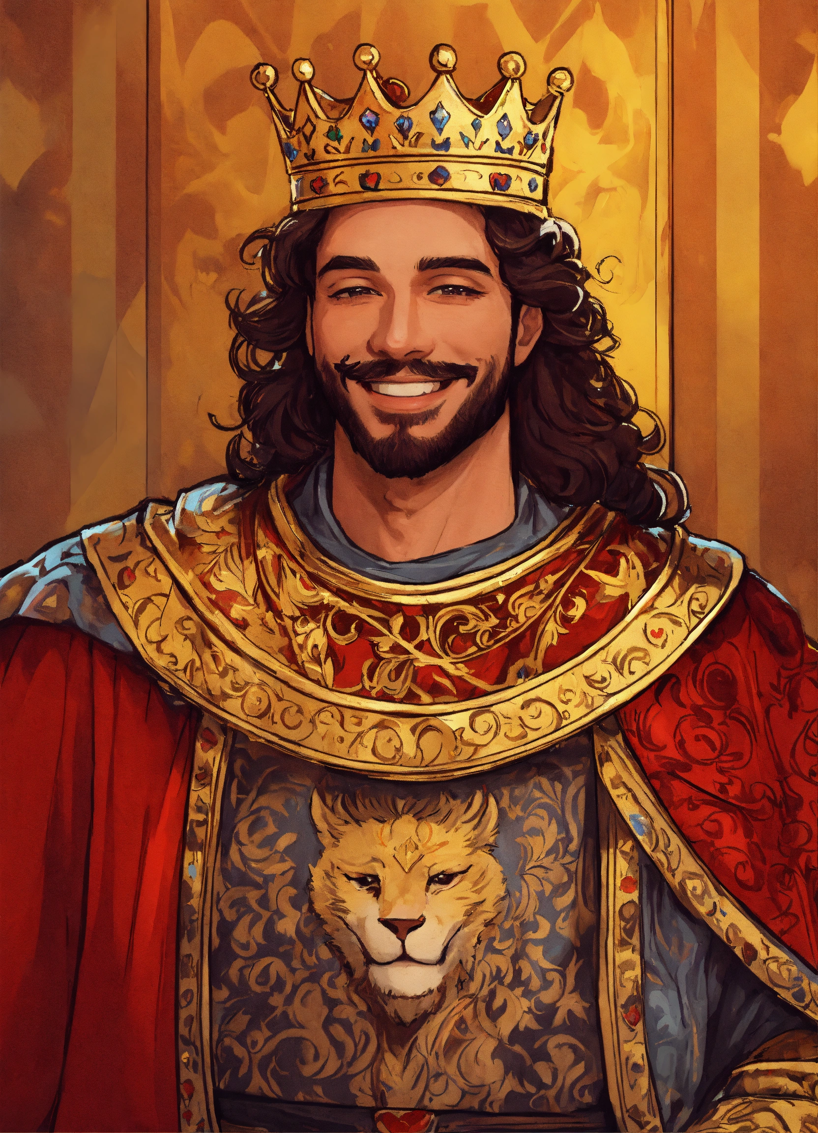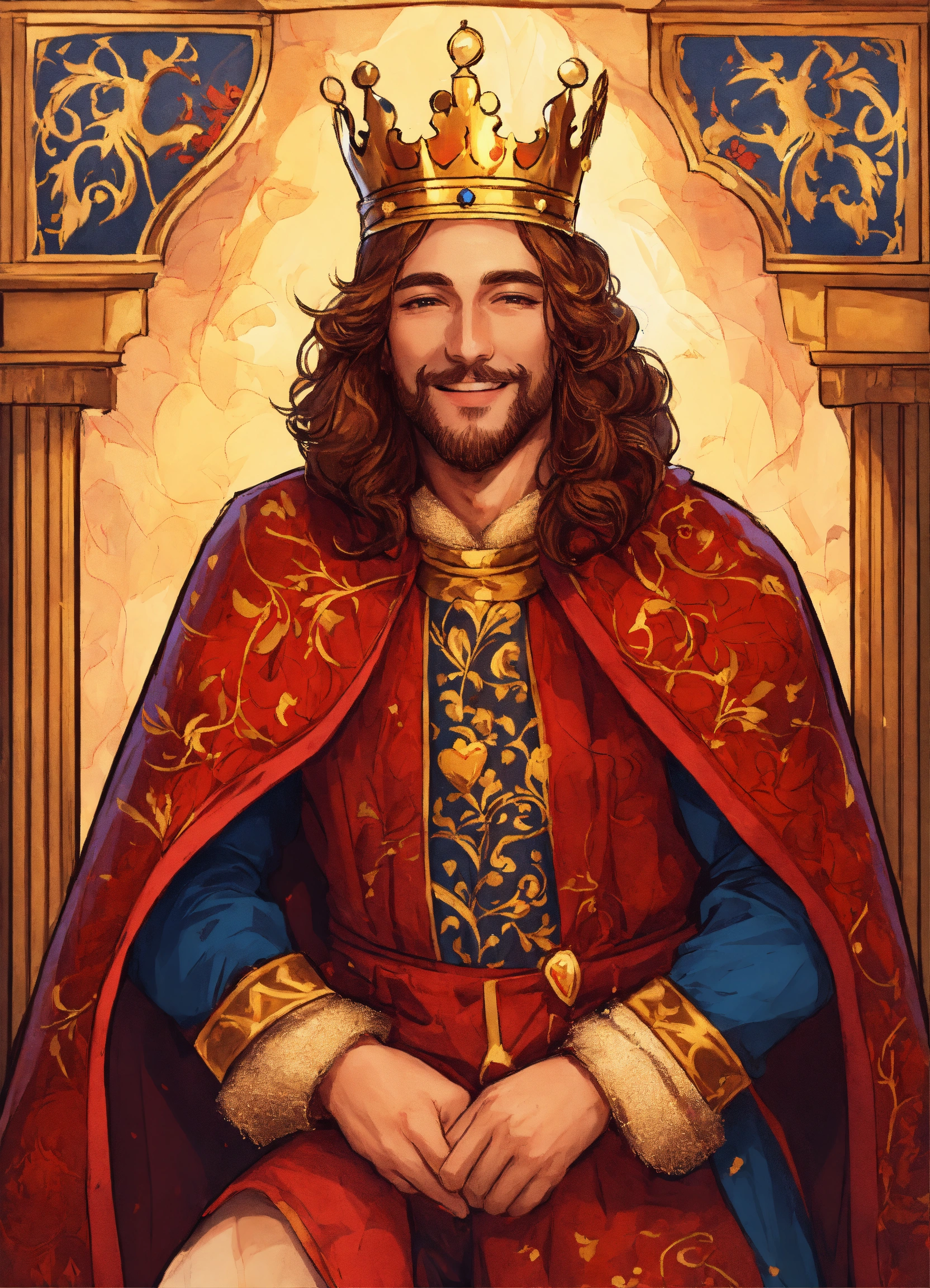 Drawing of a handsome smiling king with a fancy medieval royal robe