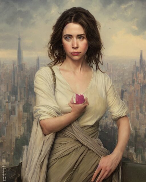 A portrait painting of linda cardellini / alison brie / anne hathaway / rachel lane / sabrina lloyd / odette annable hybrid oil painting unreal 5 daz. rpg portrait, extremely detailed artgerm, greg rutkowski, alphonse mucha, vladimir volegov, adolphe bouguereaum, greg hildebrandt, tim hildebrant