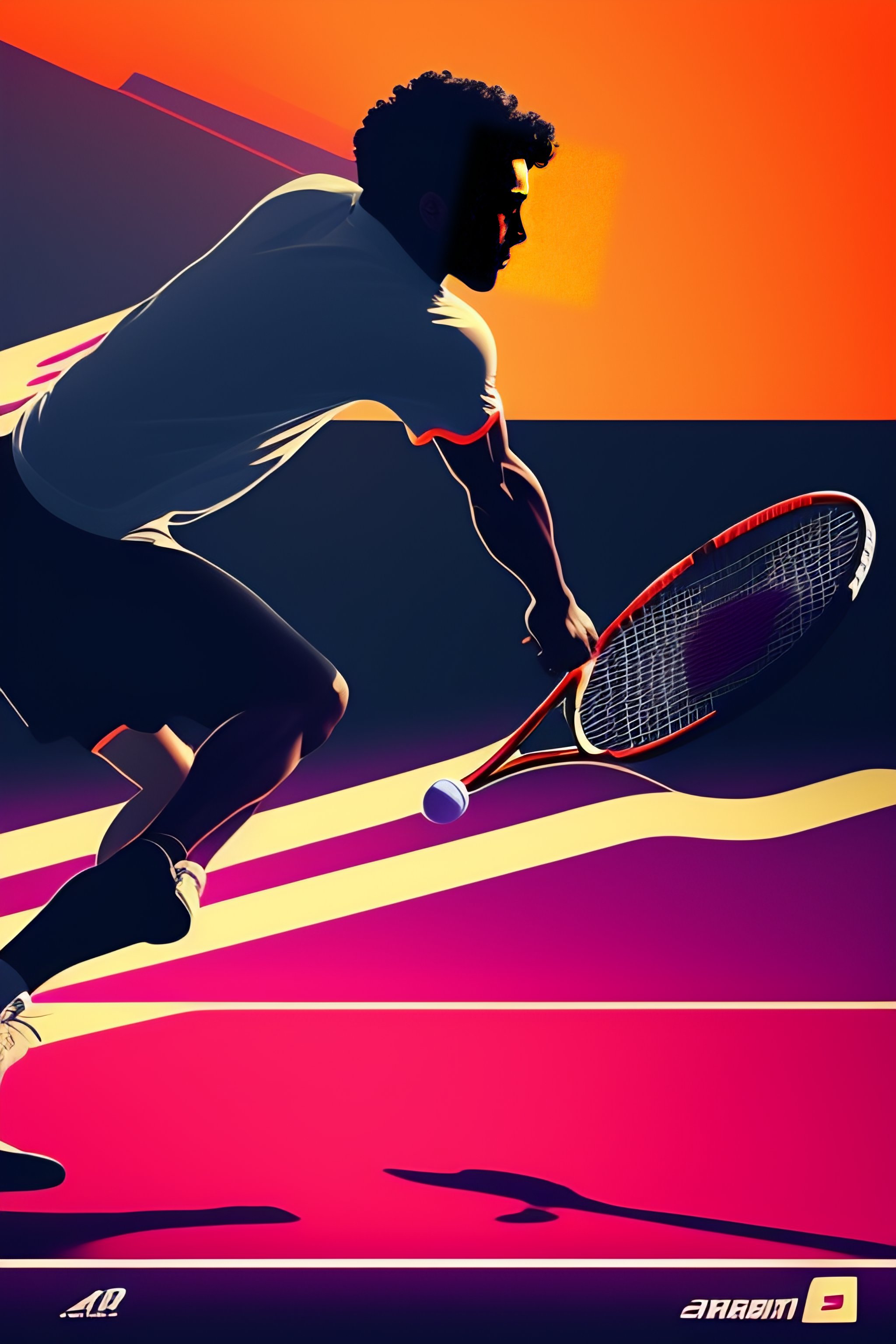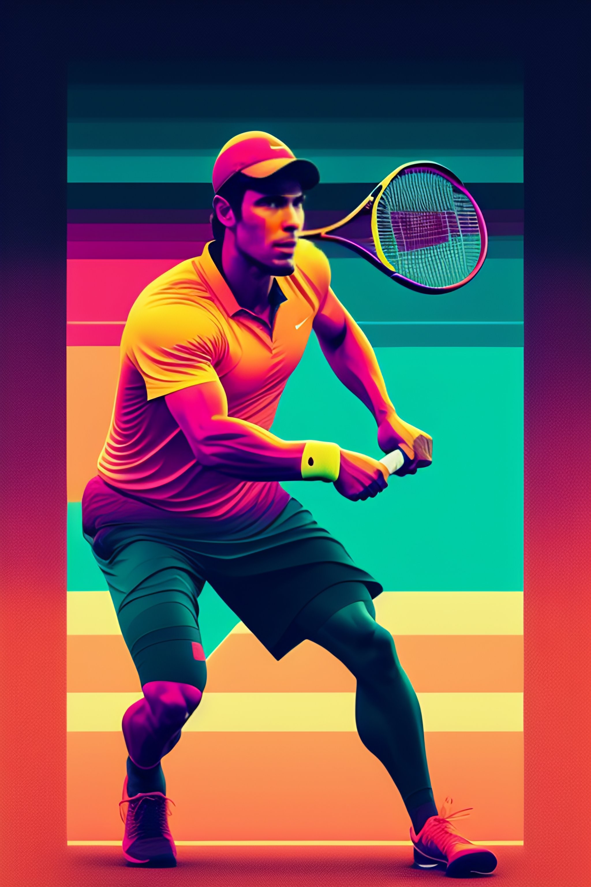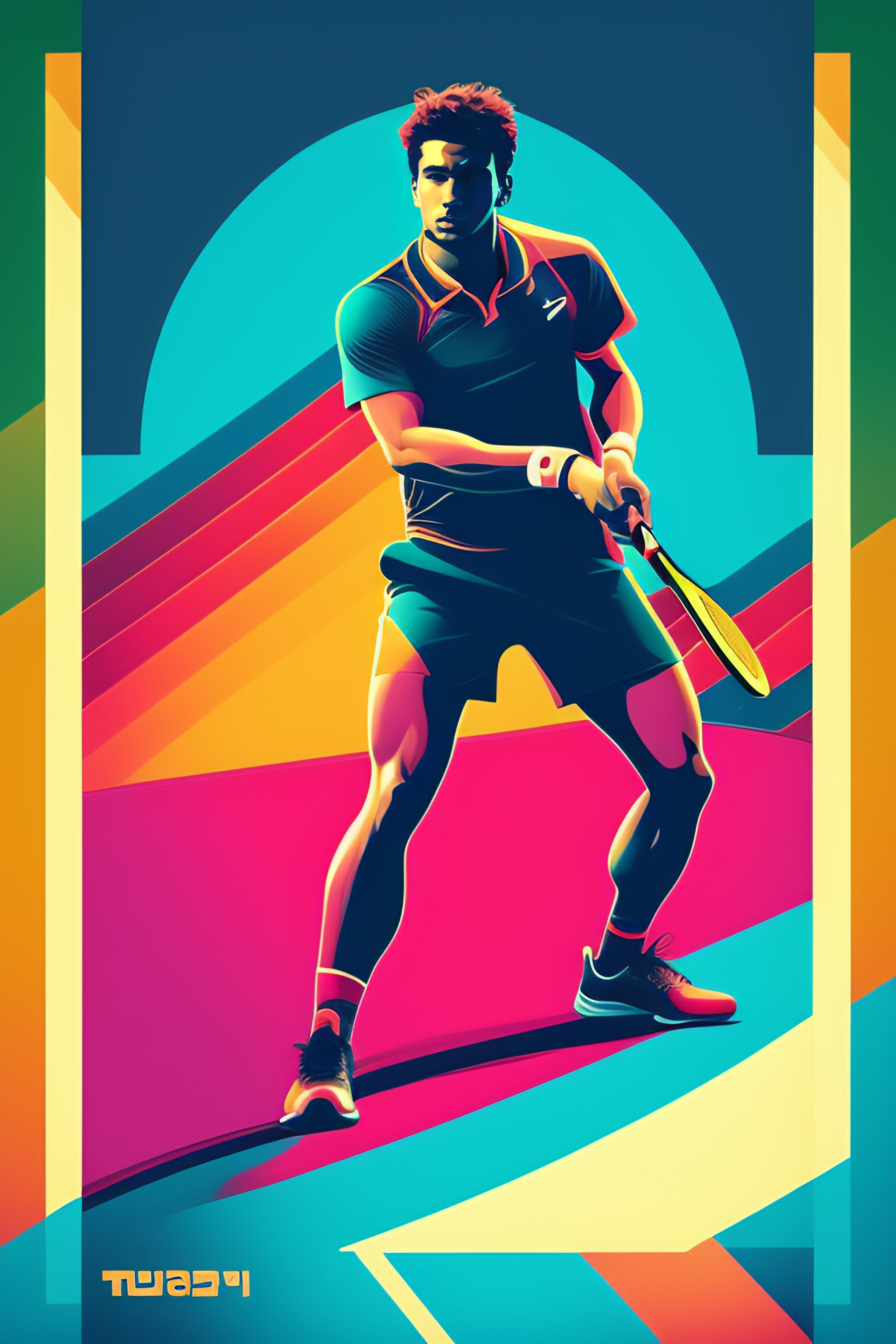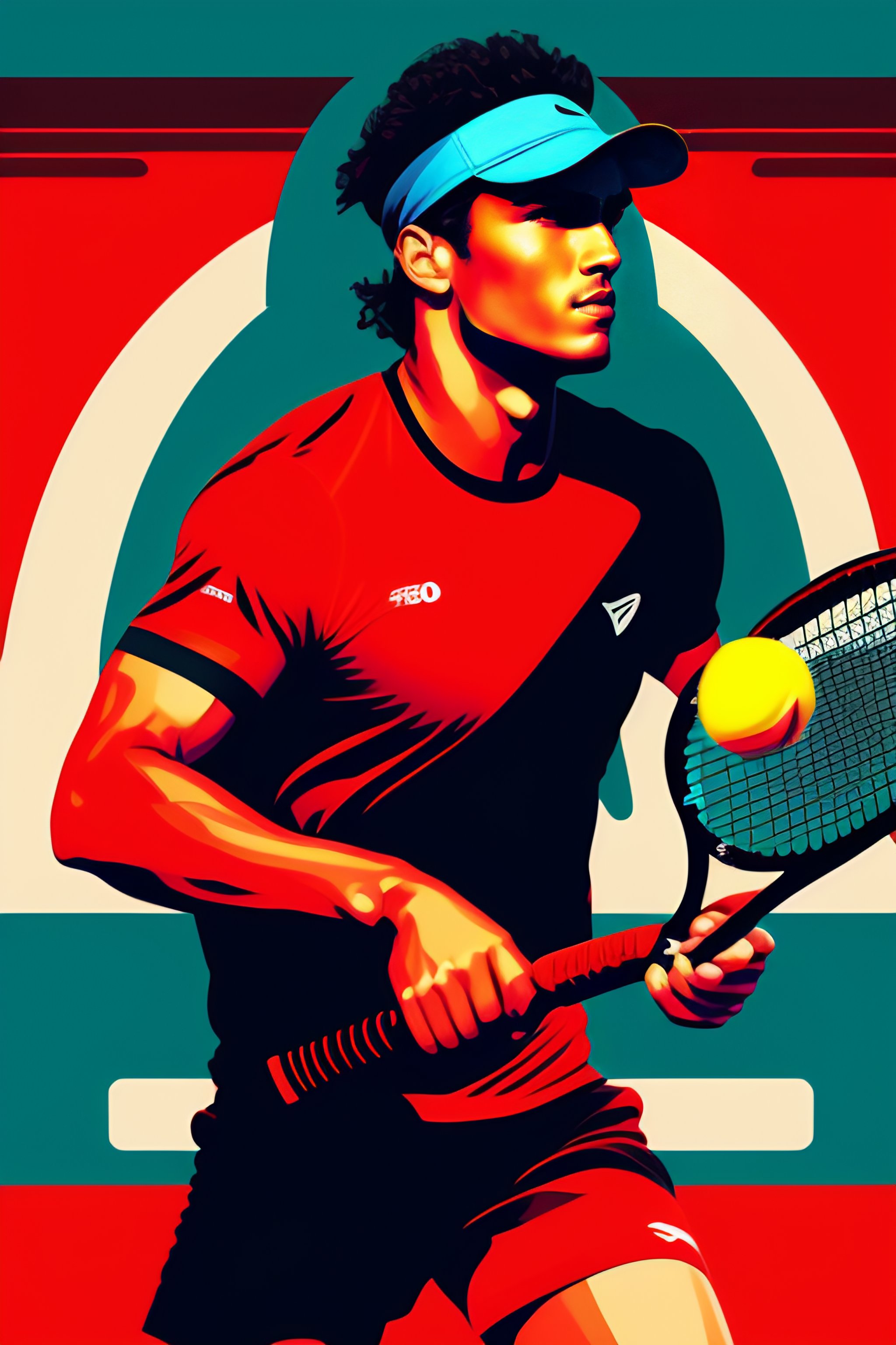 Tennis player as a hero, holding a racket, on the tennis court, trending on artstation, comic style, minimal, pop art