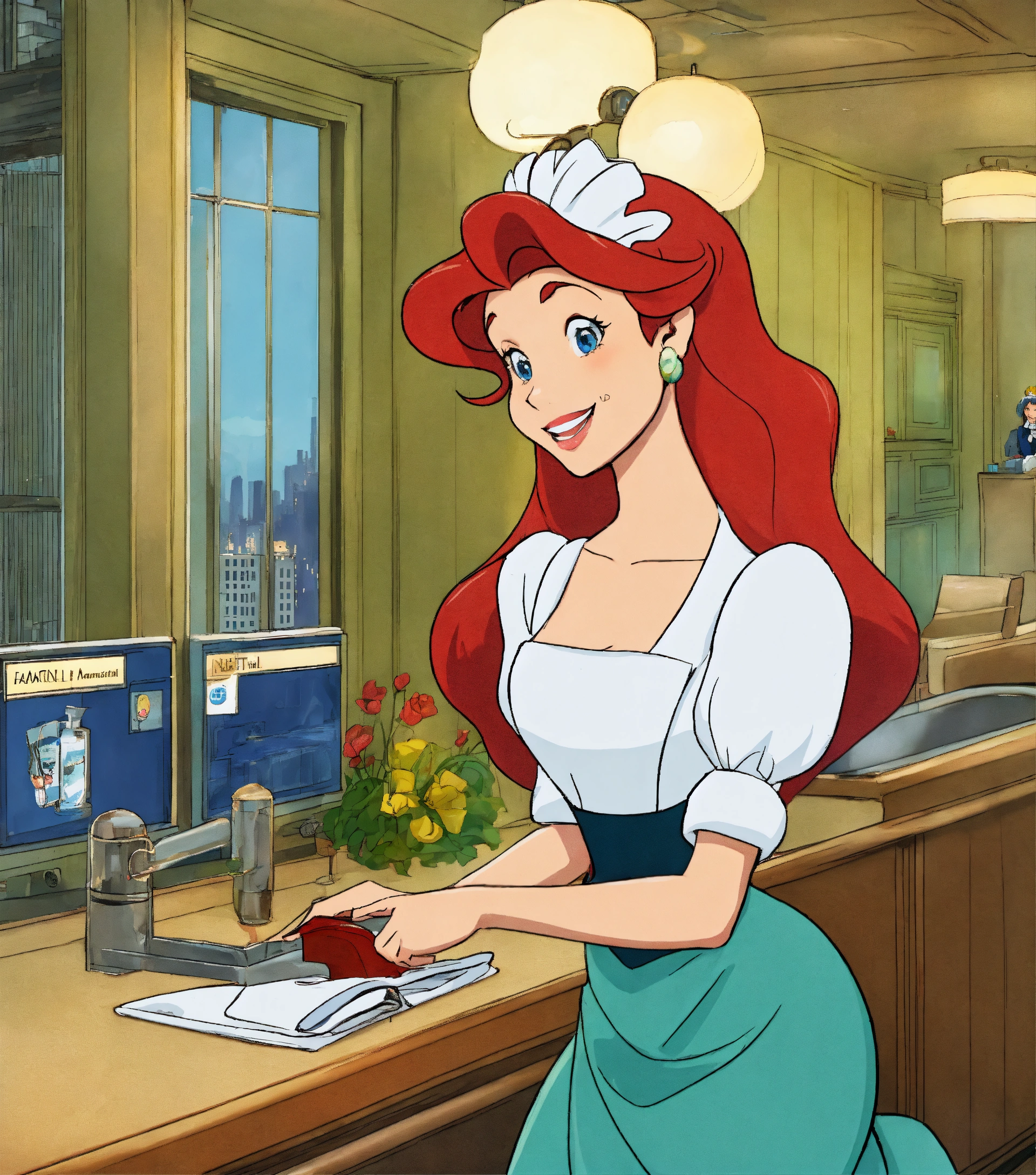 Little mermaid in manhattan working as a hotel maid