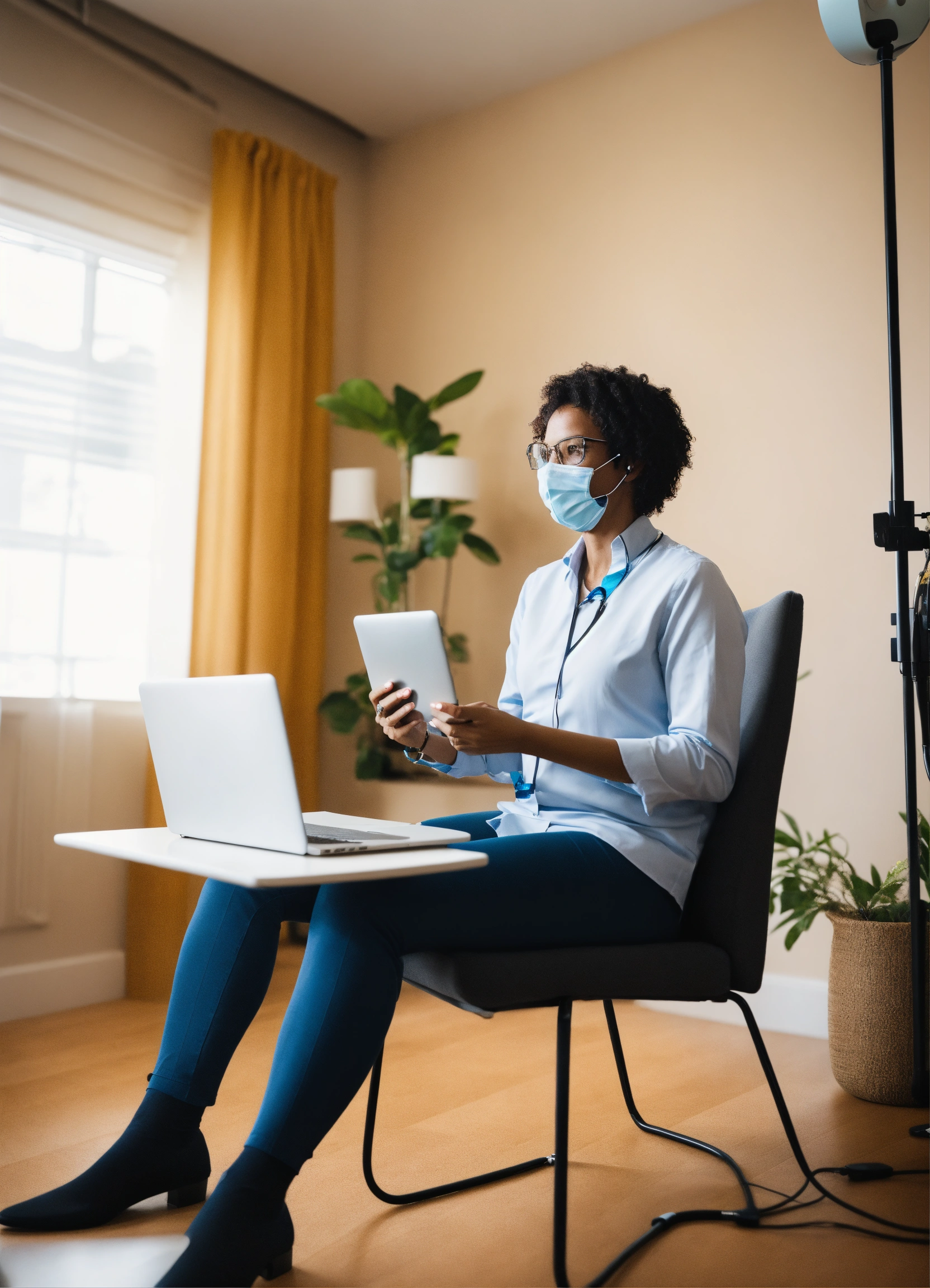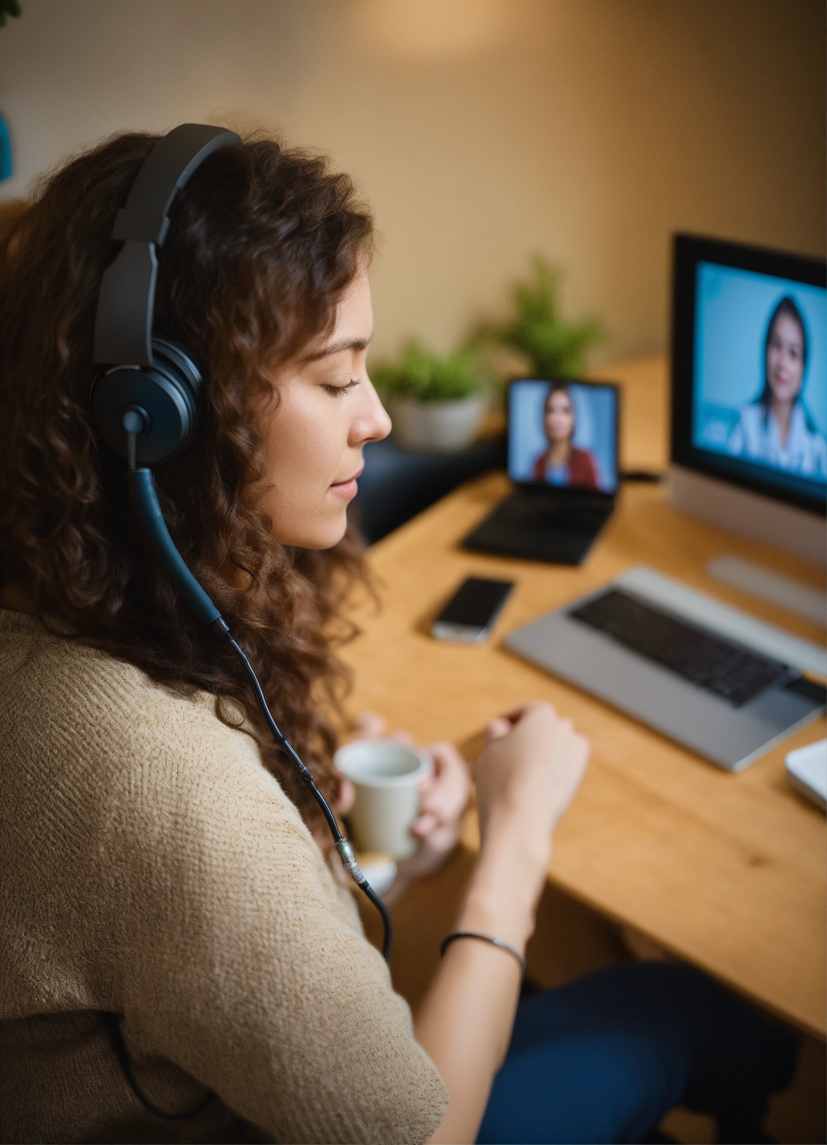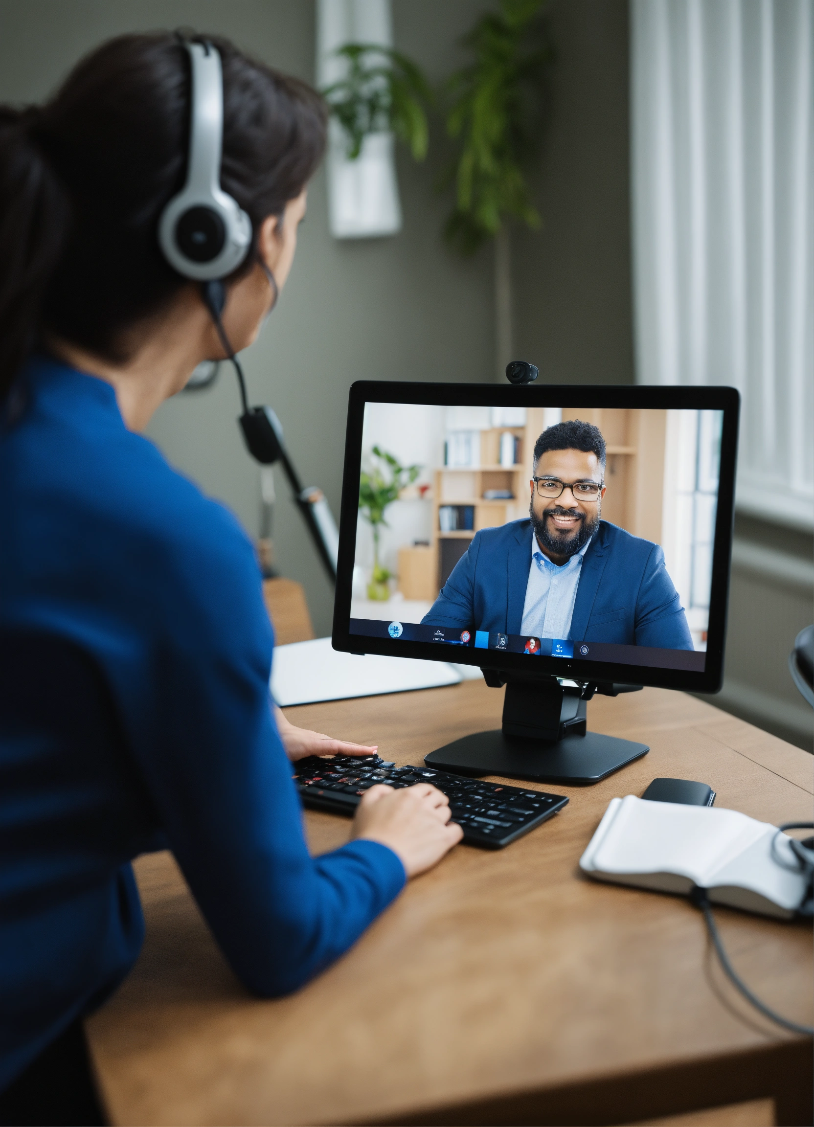 Psychotherapist engaging in telehealth through video conferencing at a virtual clinic
