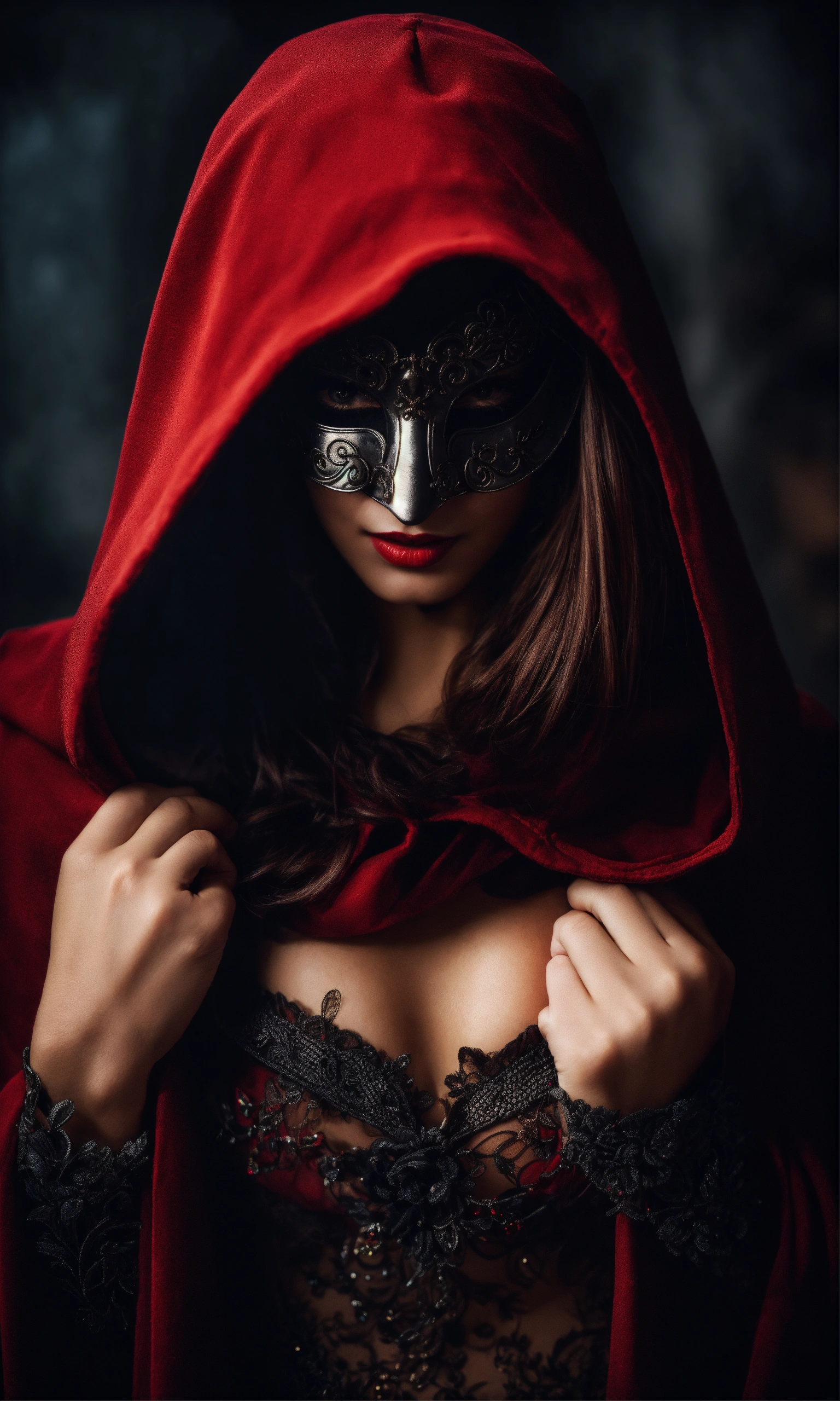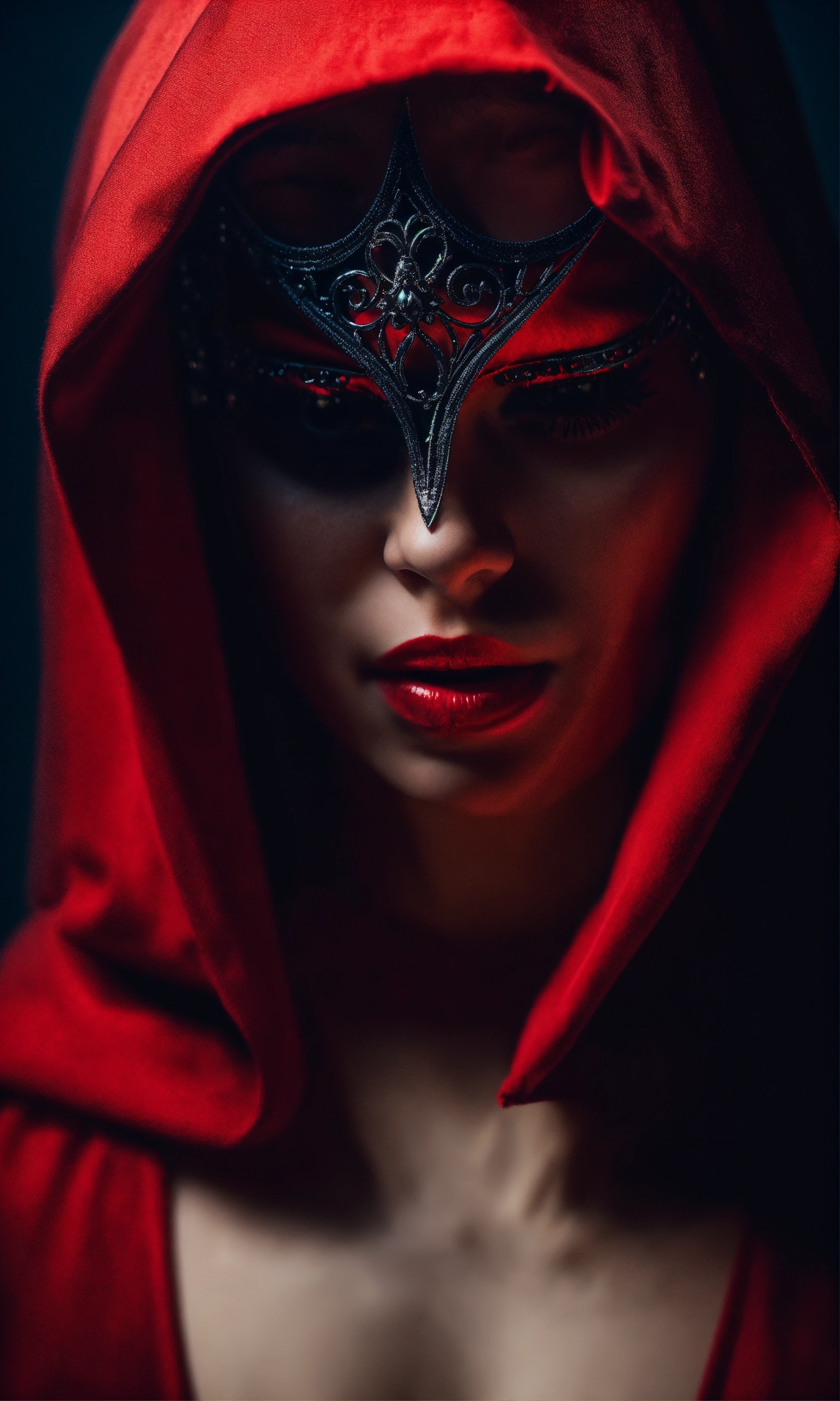 Beautiful mysterious evil women in hooded mask