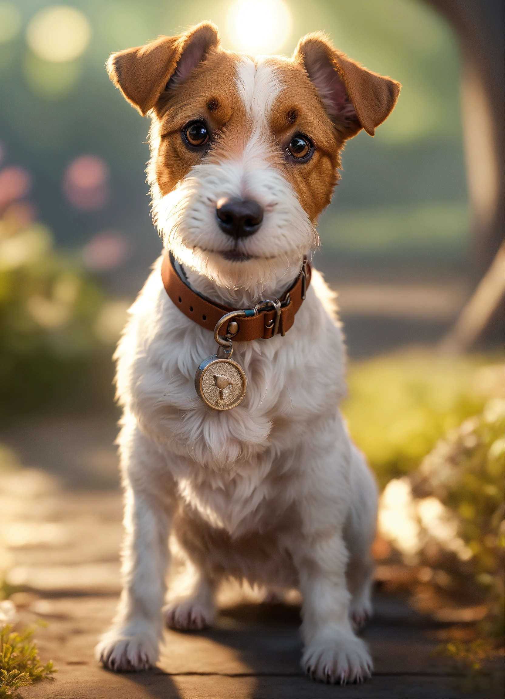 Craft a full body image of a small parson russell terrier dog, capturing its adorable features and the main character's presence. use a pixar-style illustration to make the scene heartwarming., ultra hd, realistic, vivid colors, highly detailed, uhd drawing, pen and ink, perfect composition, beautiful detailed intricate insanely detailed octane render trending on artstation, 8k artistic photography, photorealistic concept art, soft natural volumetric cinematic perfect light