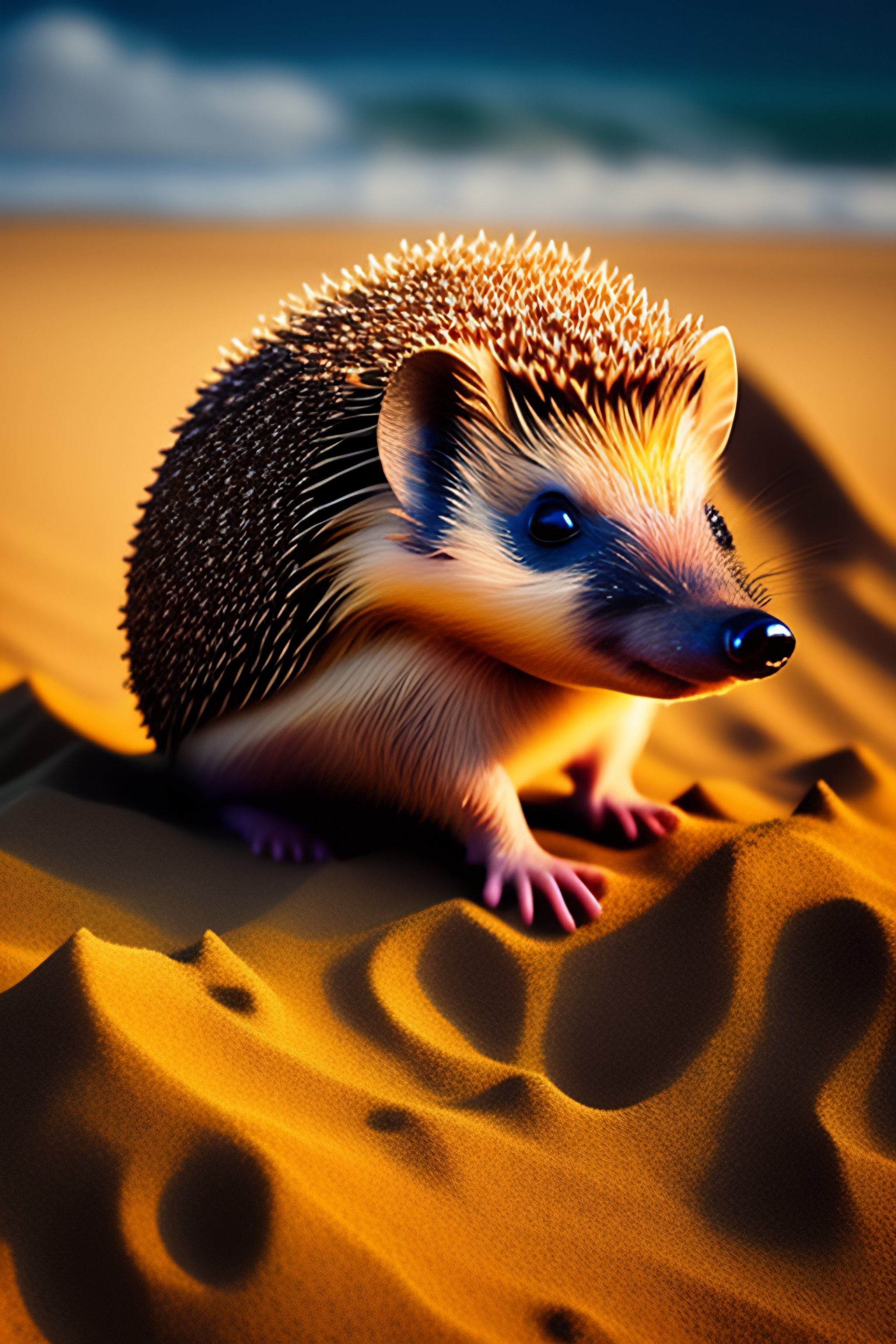 Hedgehog on sand in steampunk style