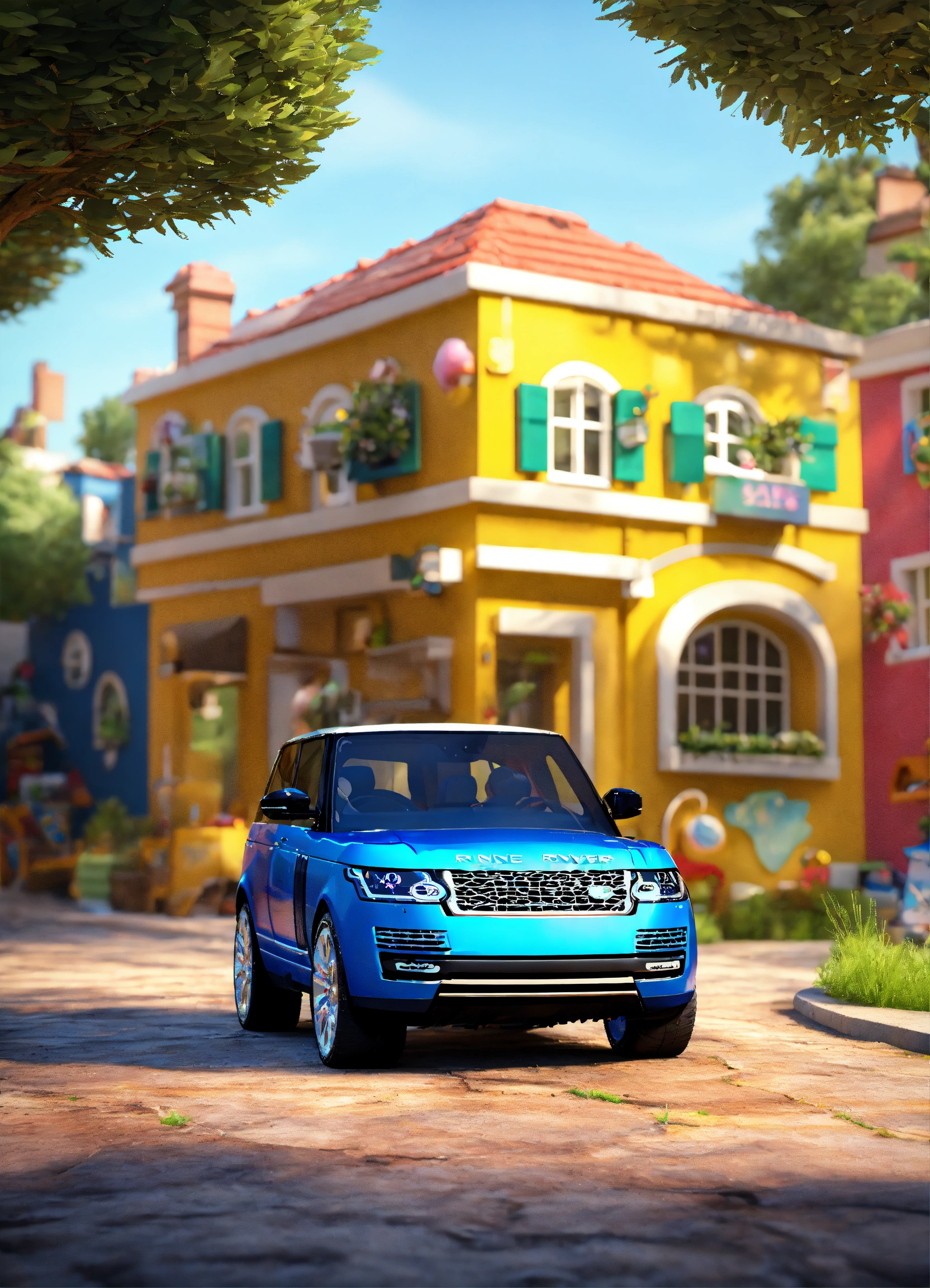 A without a windows small range rover for kids to play, without a front window, realistic, vivid colors octane render trending on artstation, united colour background wall, beautiful, attractive, 3 d rendering, pixar cute, andrew dickson, detailed, realistic, 3d, cartoon style, well shaded, smooth, pixar, 8k, high quality .