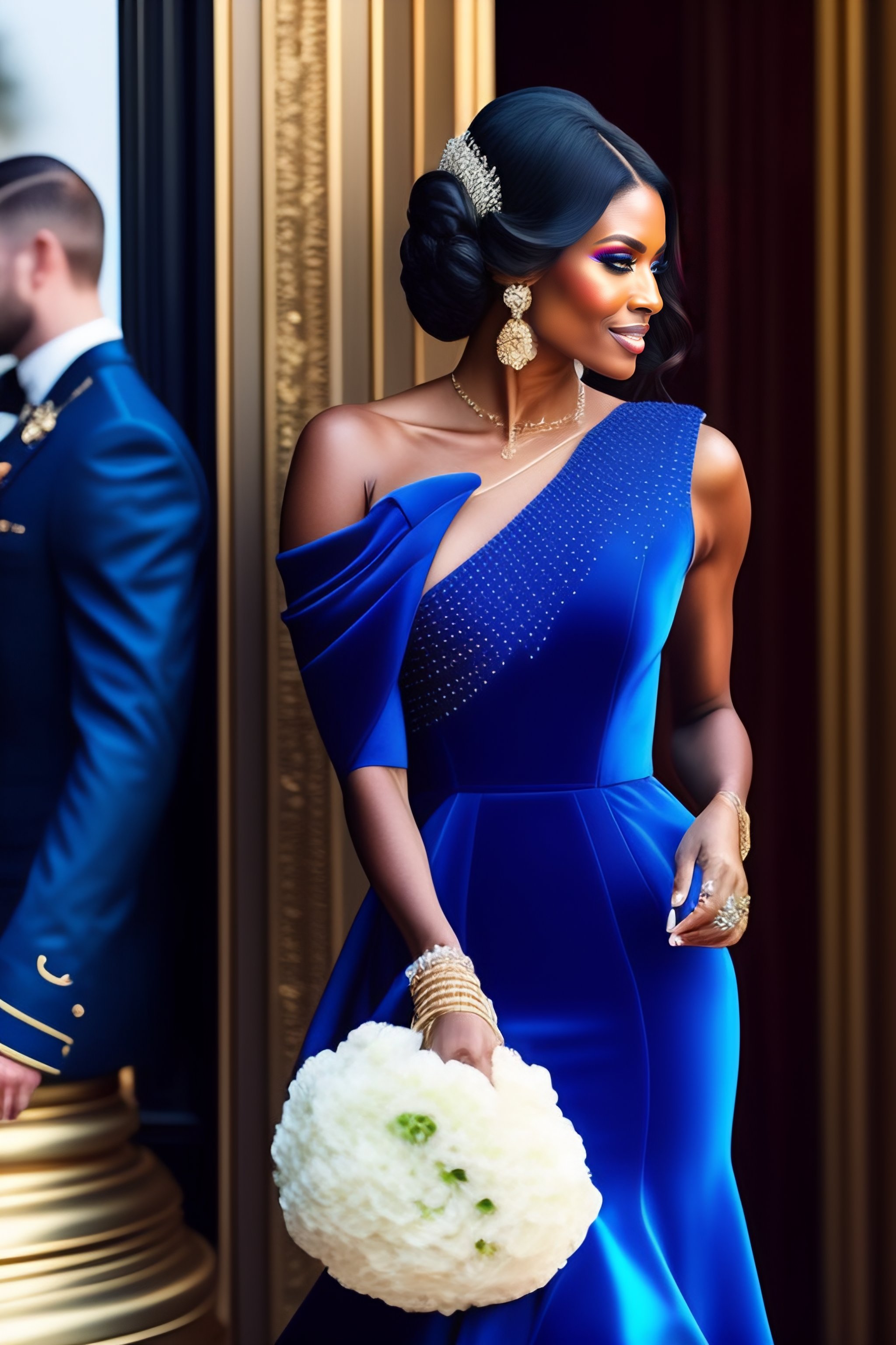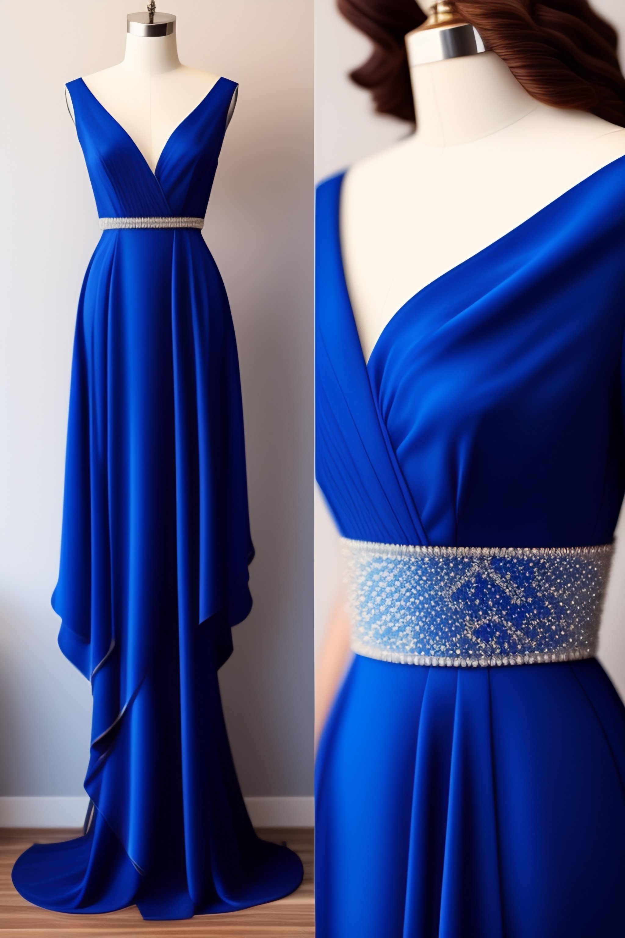Luxurious royal blue dress with pearls