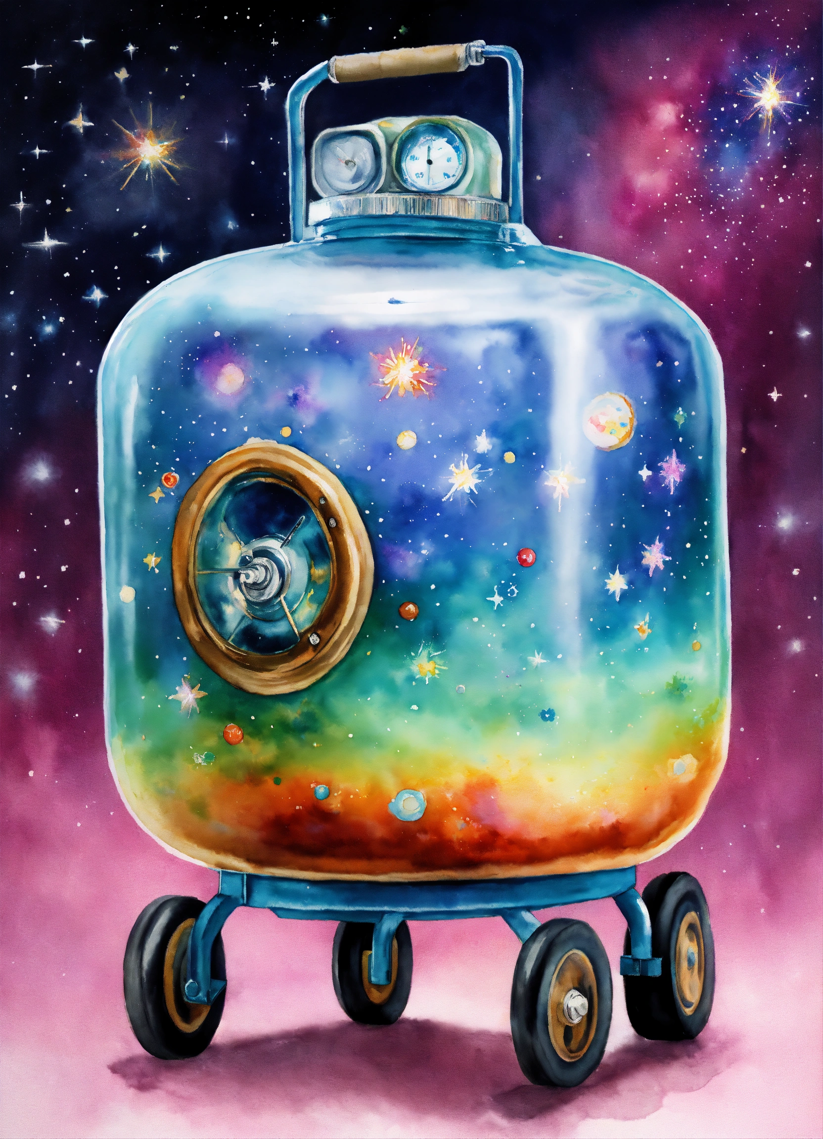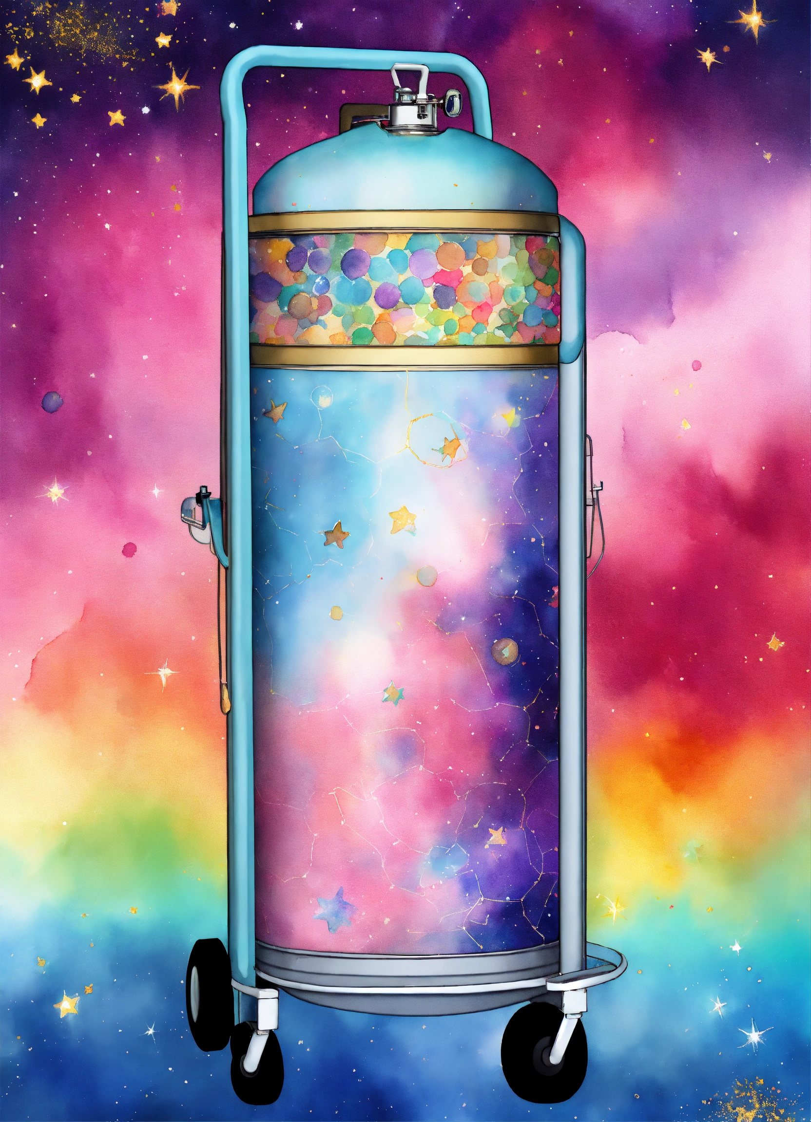 Concept art of oxygen tank and nasogastric tubenose tube, portable, rolling wheels, small, blank background, handprinted painted artsy design, portable oxygen concentrators, sparkle galaxy painted on the tank, medical, realistic, hyper realistic, portable, cute, artsy, decorated, thin tank, colorful girly handprinted designs on the tank, thin small portable tank, personalized decorated painted medical portable oxygen tank, respiratory, thin tank, watercolor paint, whimsical paint, super thin small narrow tank, watercolor abstract paint, clear thin tube attached, watercolor galaxy, boho paint, small wheels, colorful painted sequins glitter watercolor, narrow tank, very narrow thin oxygen tank, glitter, realistic, colorful, feminine blank background, small wheels, glitter paint, glitter, nebula painted, hyper realism, space background, constellation, stars