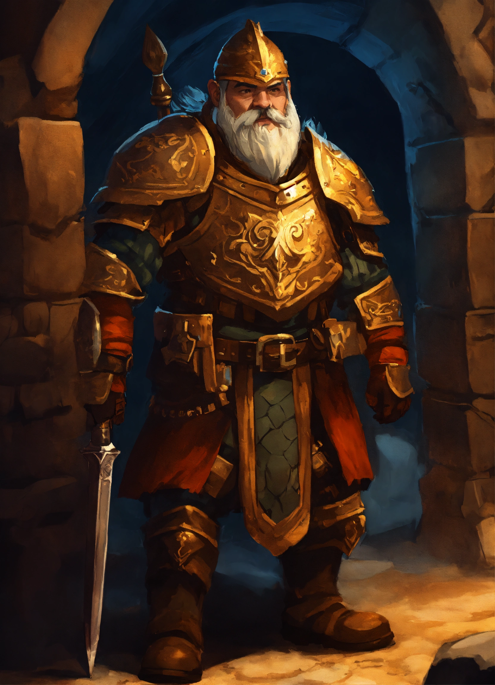 A dwarf soldier with loriga segmentada armour in a underground dwarf castle