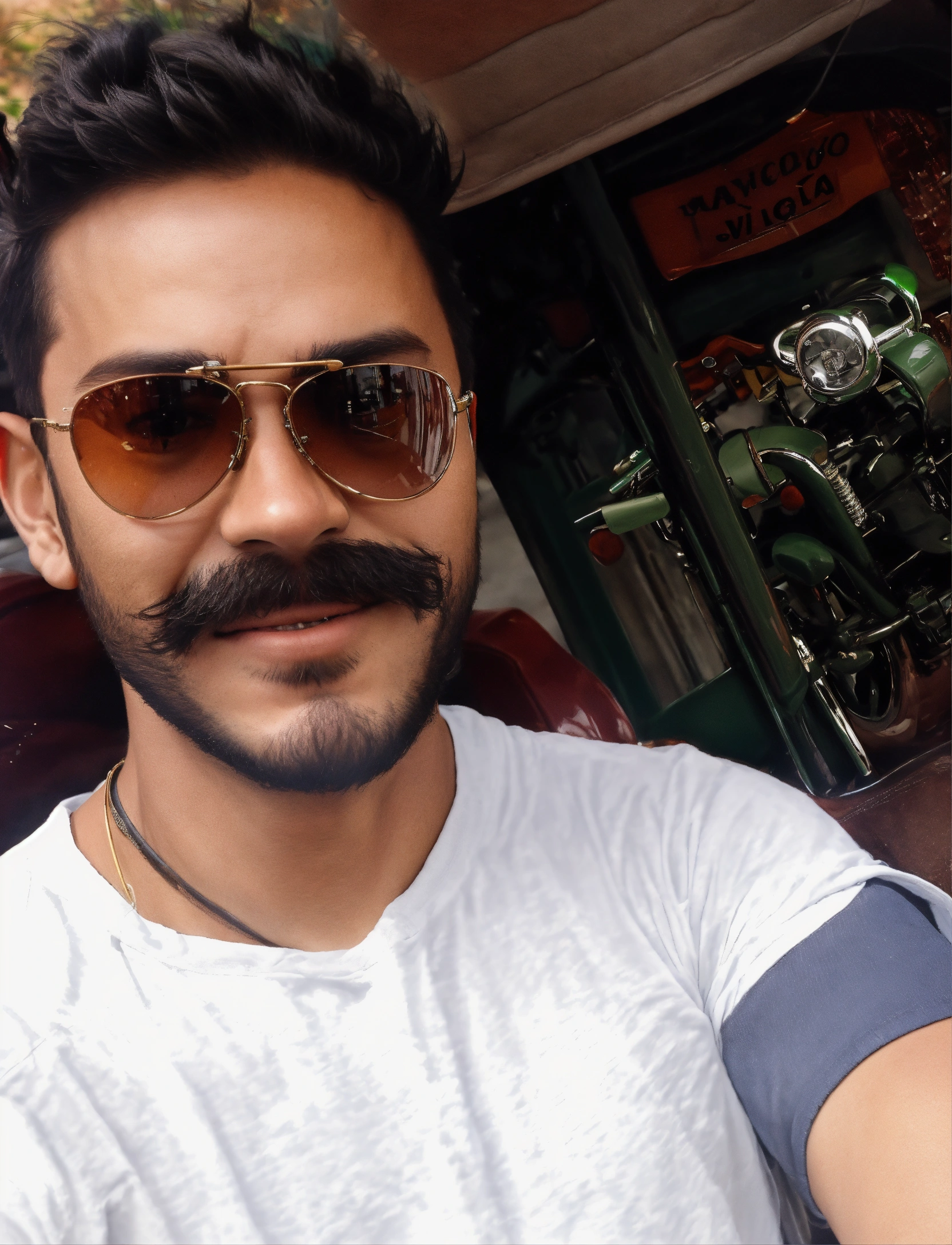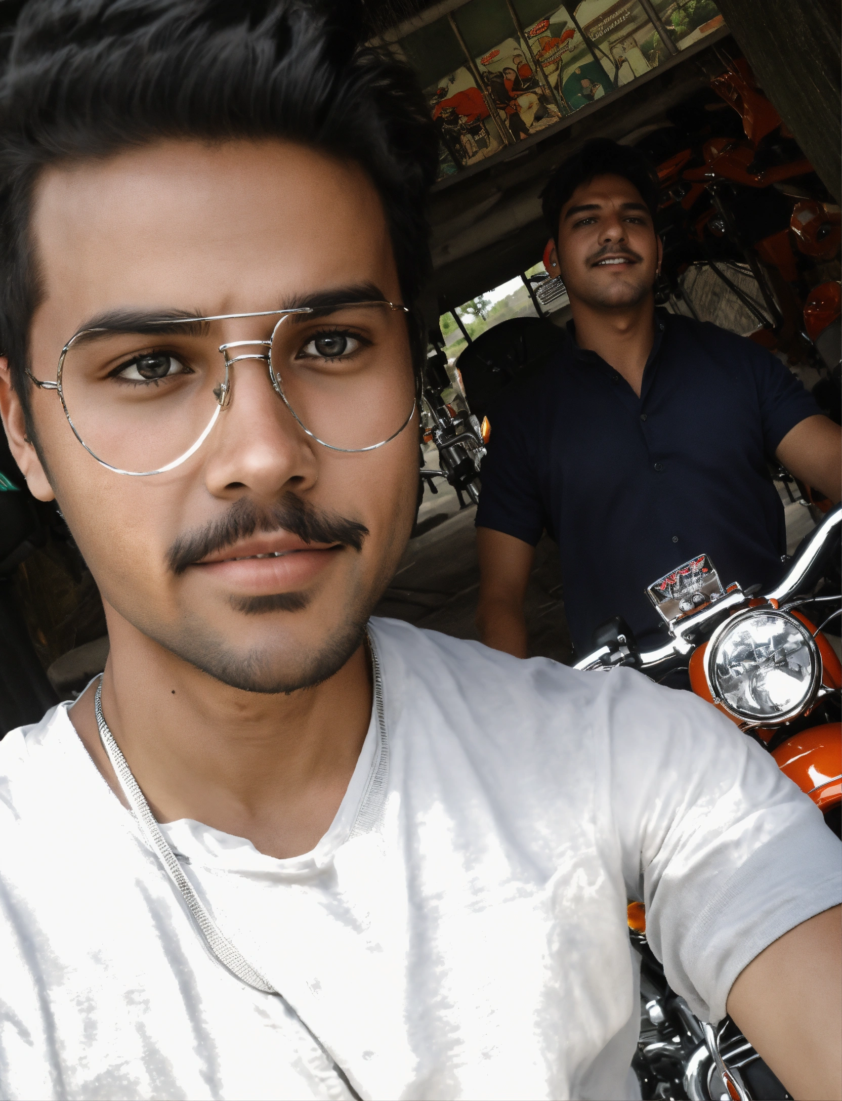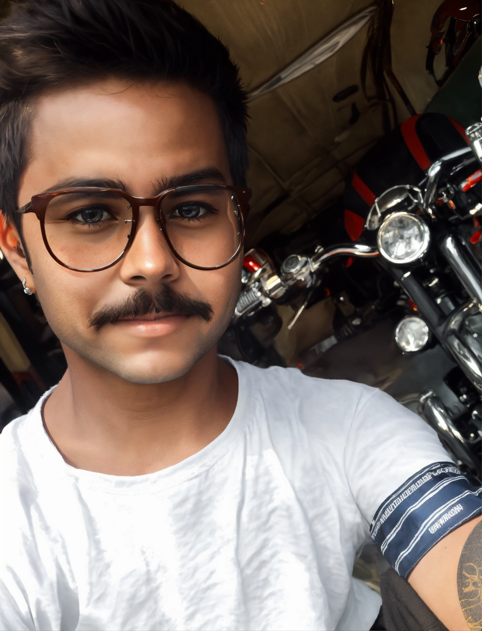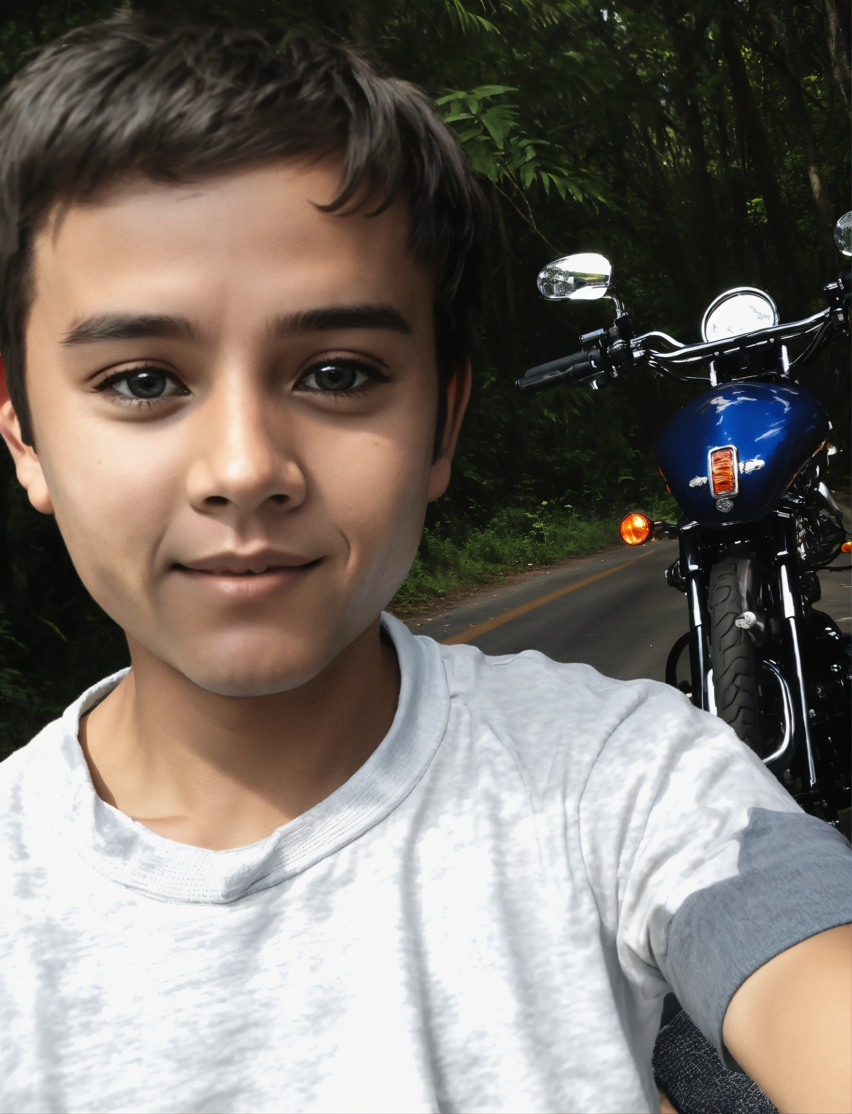 Make this boy in the image riding a harley davidson bike on road and on both sides of road is the jungle