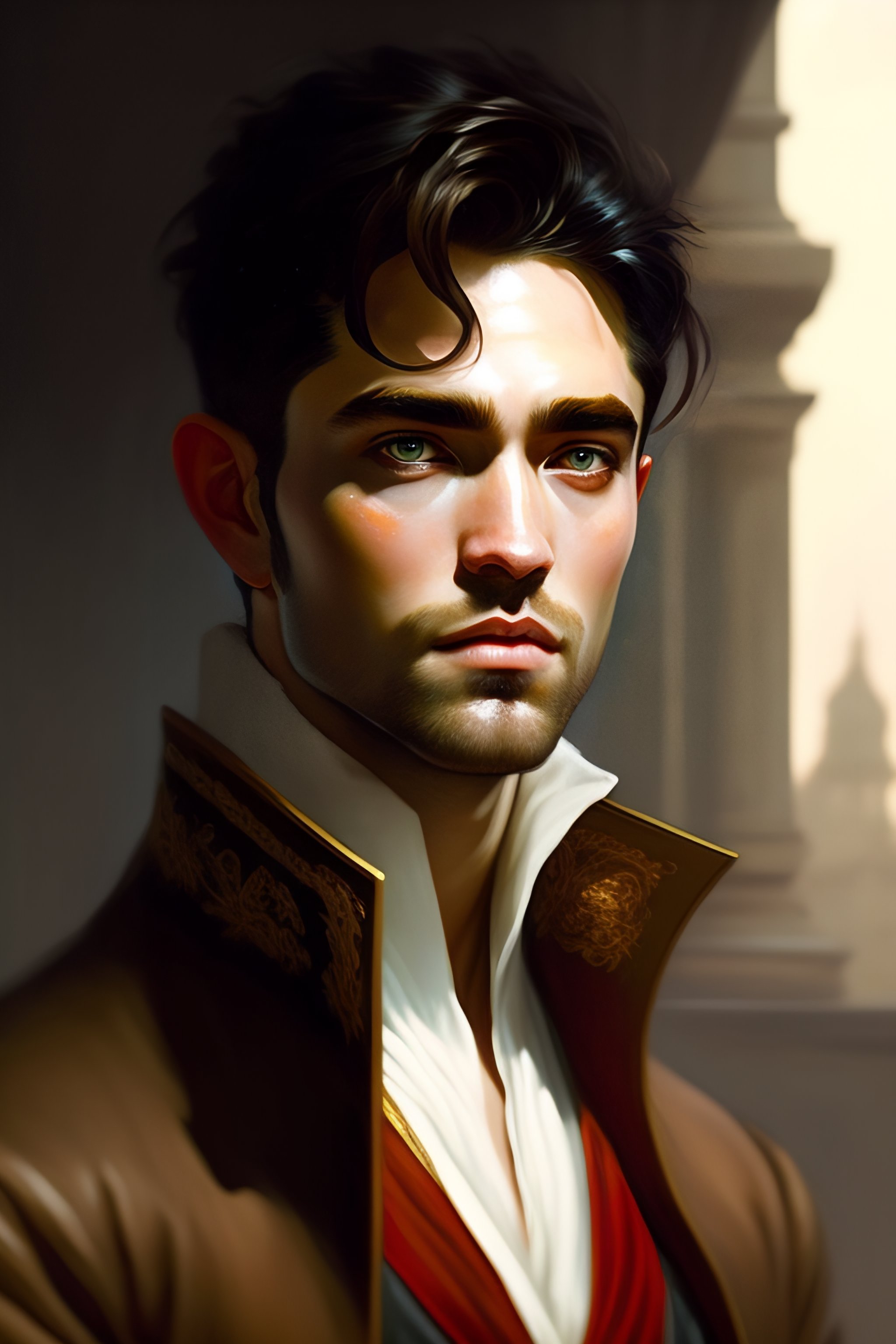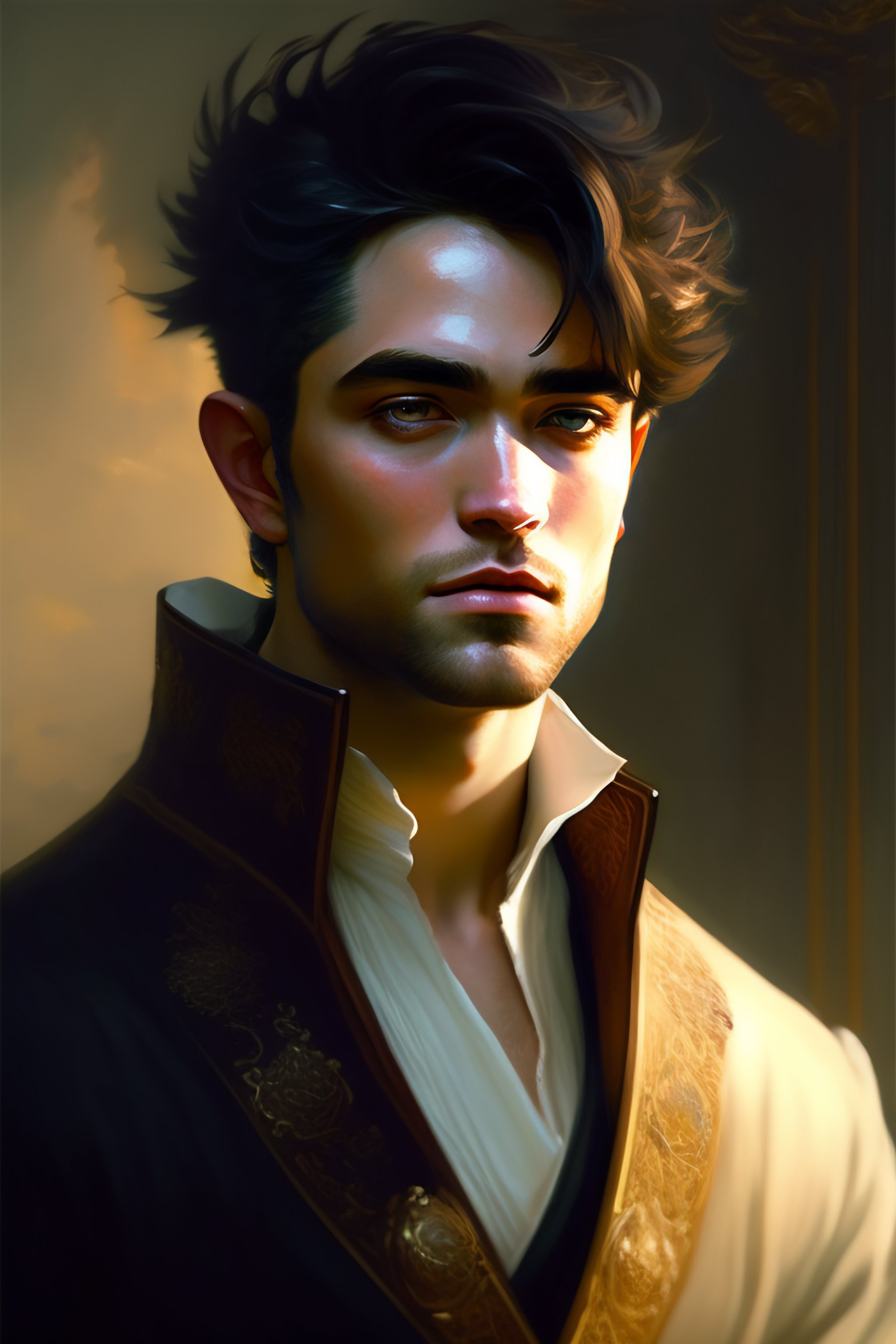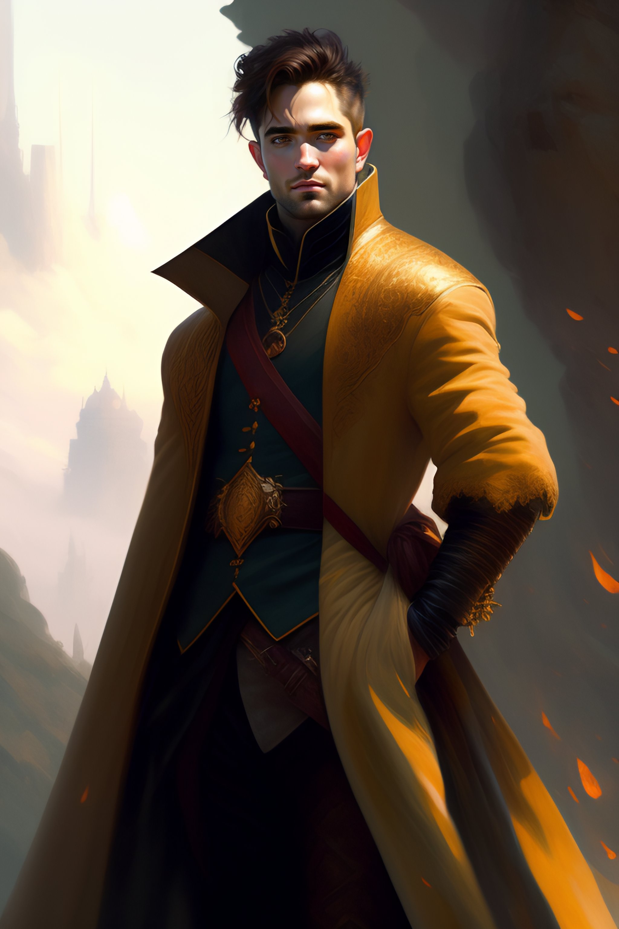 Baroque oil painting visual full body portrait character concept art, robert pattinson with middle hair, brutalist grimdark fantasy, magic, by greg rutkowski wlop makoto shinkai takashi takeuchi studio ghibli jamie wyeth