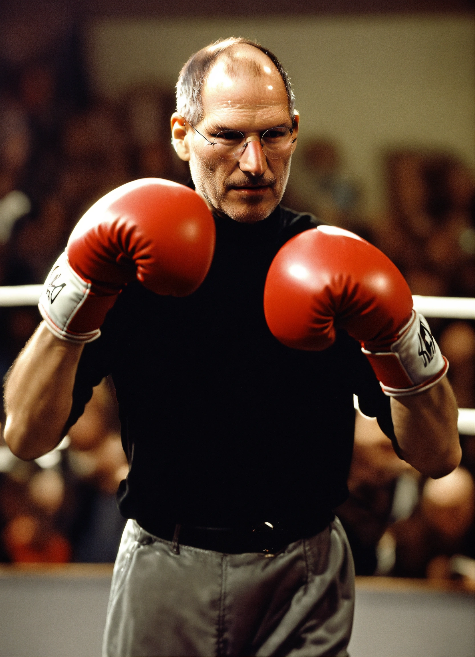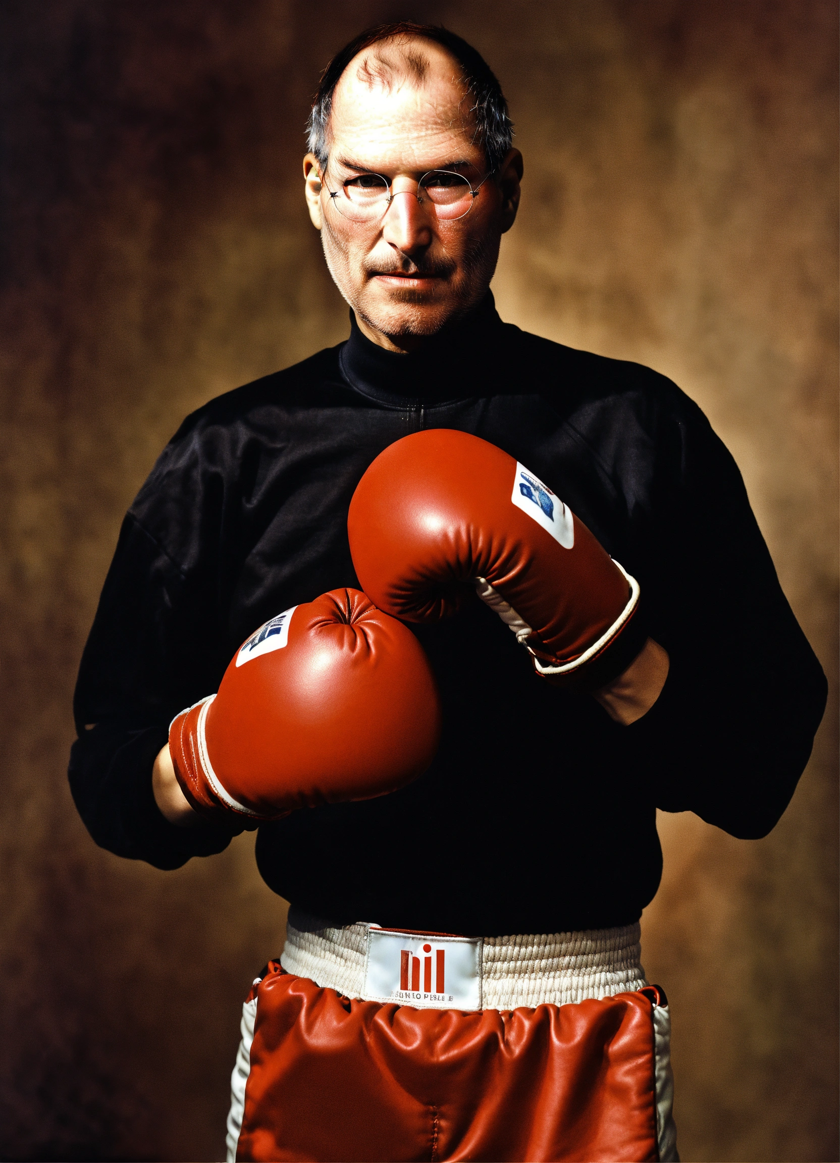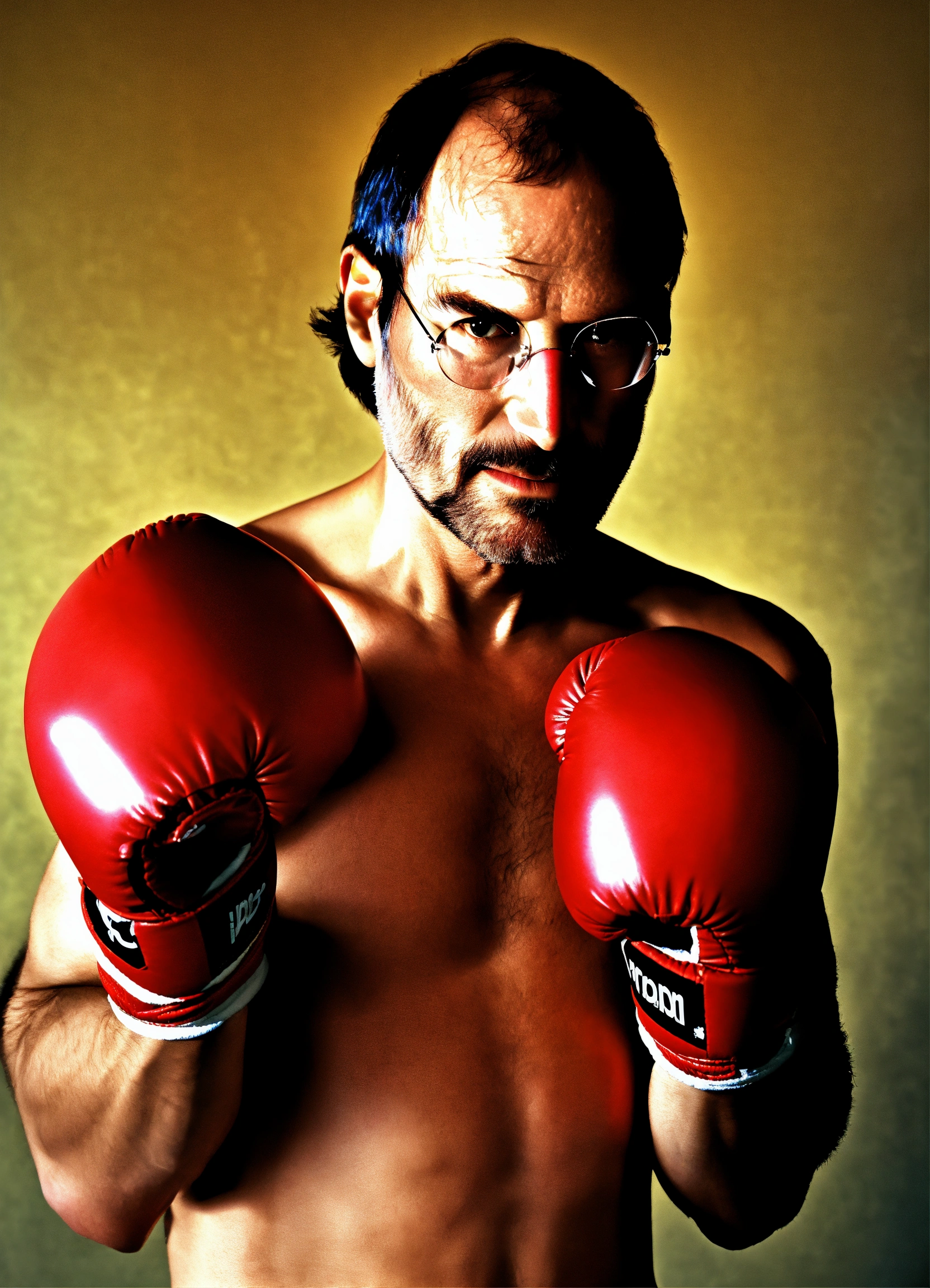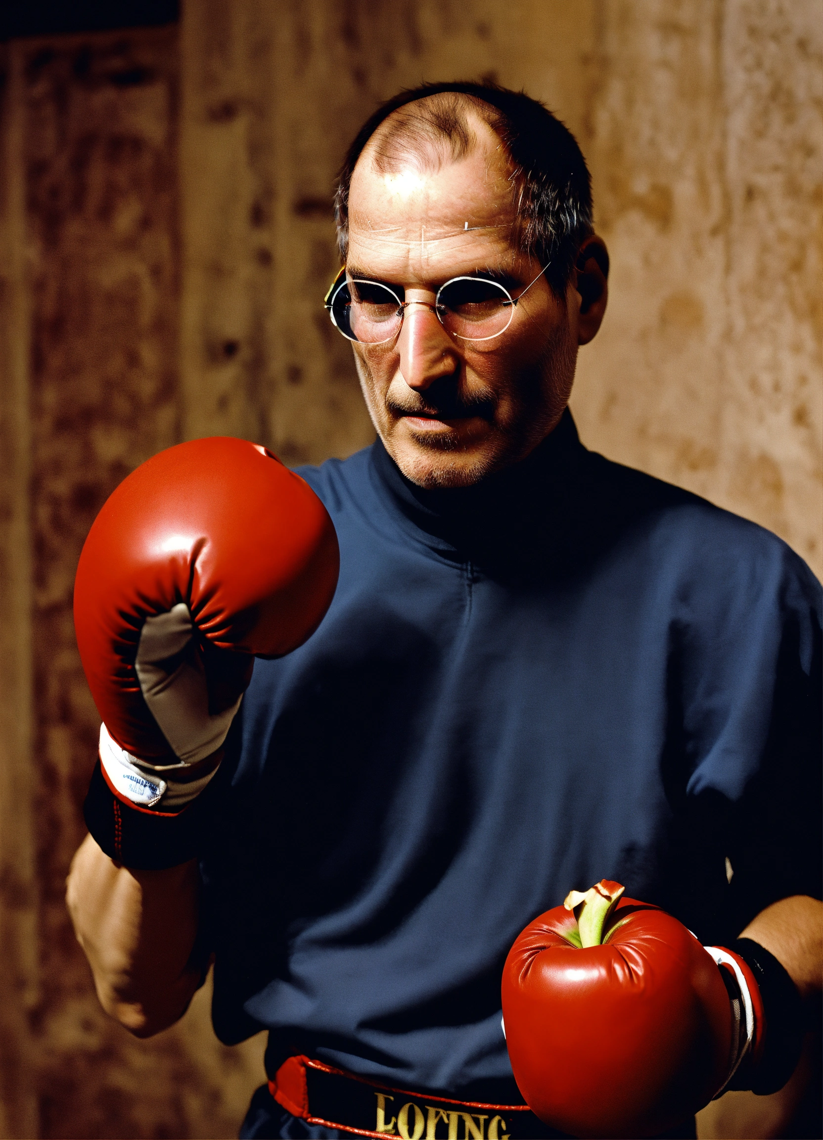 Steve jobs boxing with apple gloves